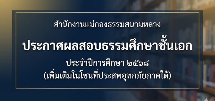 สำนักงานแม่กองธรรมสนามหลวง ได้ประกาศผลการสอบธรรมศึกษา ประจำปีการศึกษา ๒๕๖๘ (เพิ่มเติม) ในโซนภาคใต้ที่ประสพอุทกภัย โดยในขณะนี้กระบวนการตรวจใบตอบและประมวลผลคะแนนในระดับชั้นเอกได้เสร็จสิ้นสมบูรณ์แล้ว ๑. ตรวจสอบรายชื่อผู้สอบผ่าน “ธรรมศึกษาชั้นเอก” สามารถตรวจสอบรายชื่อผู้สอบผ่านได้แล้วที่ ๒. สถานะการประกาศผลธรรมศึกษาชั้นโท และชั้นตรี สำหรับผู้ที่รอประกาศผลในระดับชั้นอื่น ๆ โปรดทราบแนวทางการดำเนินงานเพื่อให้ติดตามข้อมูลได้ถูกต้องตามลำดับสายงาน ดังนี้ ช่องทางติดตาม: เมื่อมีการประกาศผลเพิ่มเติม ท่านสามารถใช้ลิงก์https://dhammastudy.org/passlist/publicในการตรวจสอบได้เช่นเดียวกัน โดยระบบจะอัปเดตข้อมูลตามที่แต่ละหน่วยงานส่งเข้ามา ๓. สรุปการดำเนินงานสอบกรณีพิเศษพื้นที่อุทกภัย ตามที่สถานการณ์อุทกภัยในพื้นที่ภาคใต้ส่งผลให้ต้องมีการเลื่อนการสอบออกไปนั้น บัดนี้การจัดสอบรอบพิเศษ (ครั้งที่ ๒) เมื่อวันศุกร์ที่ ๖ กุมภาพันธ์ ๒๕๖๙ ในเขตจังหวัดนครศรีธรรมราช (ธ),...