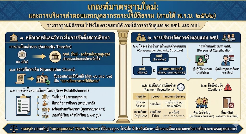 เกณฑ์มาตรฐานใหม่ในการจัดตั้งสถานศึกษาและการบริหารค่าตอบแทนบุคลากรพระปริยัติธรรม ภายใต้ พ.ร.บ. ๒๕๖๒