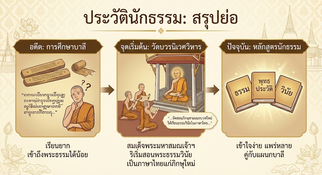 This was the genesis of the modern monastic education system known today as “Nak Tham” (Dhamma Scholar), or officially as “Pariyatti Dhamma, Dhamma Section,” which stands alongside the traditional “Pali Section” that has existed in the Thai Sangha since ancient times.
