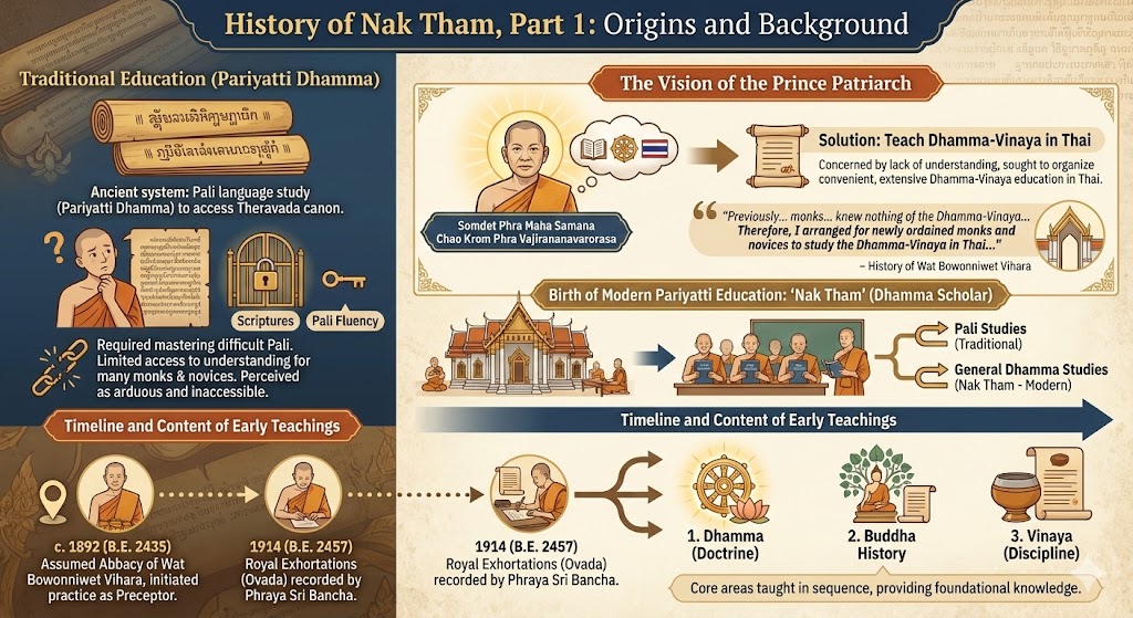 This marked the beginning of a modern form of Pariyatti education, which later became known as “Nak Tham” (Dhamma Scholar). Officially, it is referred to as General Dhamma Studies (Pariyatti Dhamma – Dhamma Division), operating alongside Pali Studies (Pariyatti Dhamma – Pali Division), the traditional curriculum of the Thai Sangha.