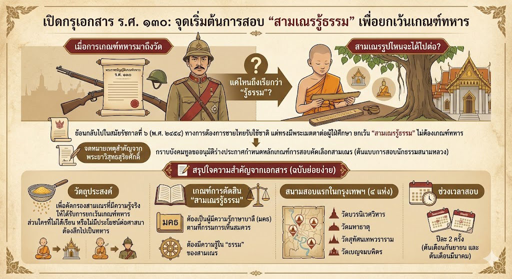 แฟ้มธรรม ตอนที่ ๒ เปิดกรุเอกสาร ร.ศ. ๑๓๐: จุดเริ่มต้นการสอบ “สามเณร” เพื่อยกเว้นเกณฑ์ทหาร