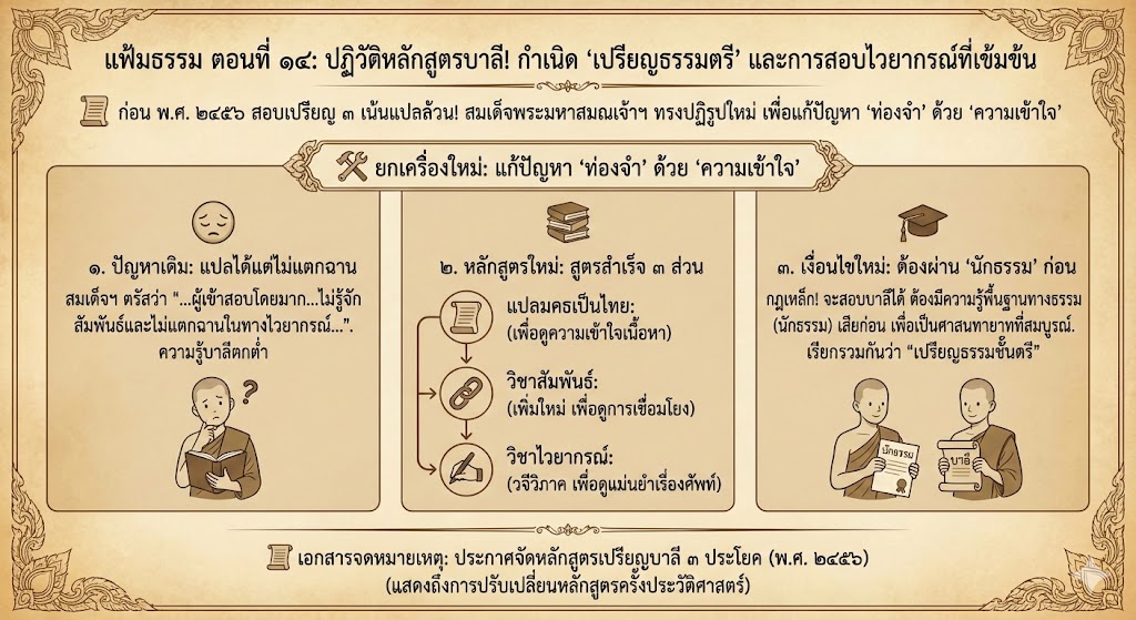 แฟ้มธรรม ตอนที่ ๑๔: ปฏิวัติหลักสูตรบาลี! กำเนิด “เปรียญธรรมตรี” และการสอบไวยากรณ์ที่เข้มข้น