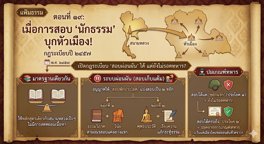 แฟ้มธรรม ตอนที่ ๑๙: เมื่อการสอบ “นักธรรม” บุกหัวเมือง! เปิดกฎระเบียบปี ๒๔๕๗ “สอบผ่อนผัน” ได้ แต่ยังไม่รอดทหาร?