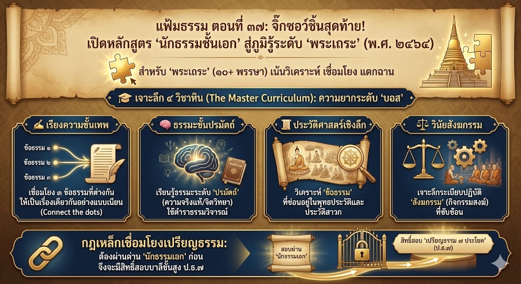 🎓 เจาะลึก 4 วิชาหิน (The Master Curriculum): ความยากระดับ “บอส” ของนักธรรมเอก มีดังนี้: