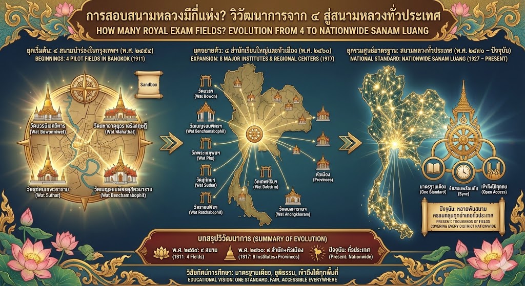 การสอบสนามหลวงมีกี่แห่ง? วิวัฒนาการจาก ๔ สู่สนามหลวงทั่วประเทศ
