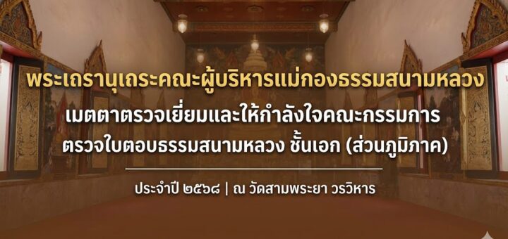 กรุงเทพมหานคร (๒๖ ธันวาคม ๒๕๖๘) – บรรยากาศการตรวจใบตอบข้อสอบธรรมสนามหลวงดำเนินไปอย่างเข้มข้นและเป็นระเบียบเรียบร้อย โดยในวันนี้ถือเป็นวันที่ ๔ ของการตรวจผลสอบนักธรรมและธรรมศึกษาชั้นเอก ประจำปีการศึกษา ๒๕๖๘ สำหรับส่วนภูมิภาค ซึ่งได้รับเมตตาจากคณะพระเถรานุเถระผู้บริหารระดับสูงของสำนักงานแม่กองธรรมสนามหลวง เดินทางมาตรวจเยี่ยมสนามตรวจเพื่อติดตามความเรียบร้อยและประทานกำลังใจแก่คณะกรรมการผู้ปฏิบัติหน้าที่