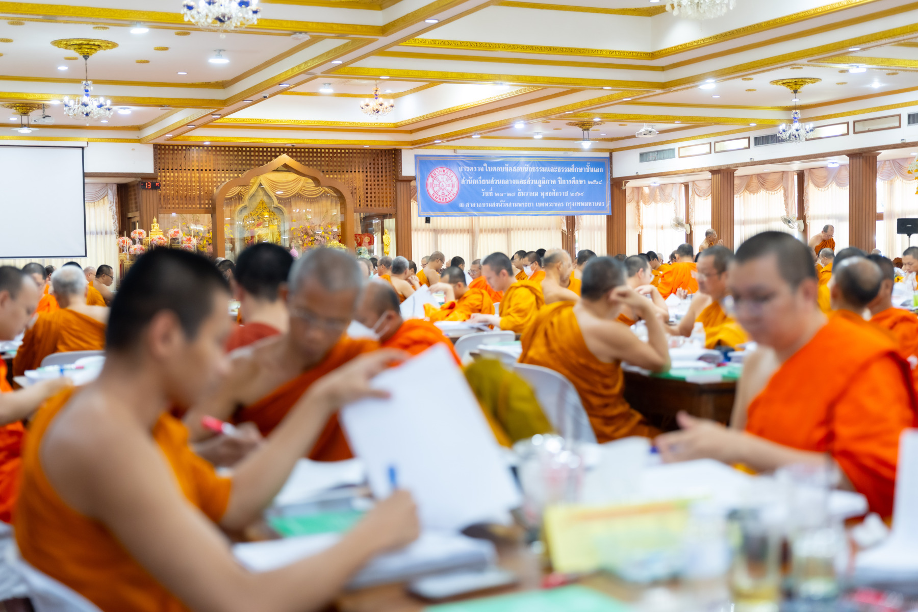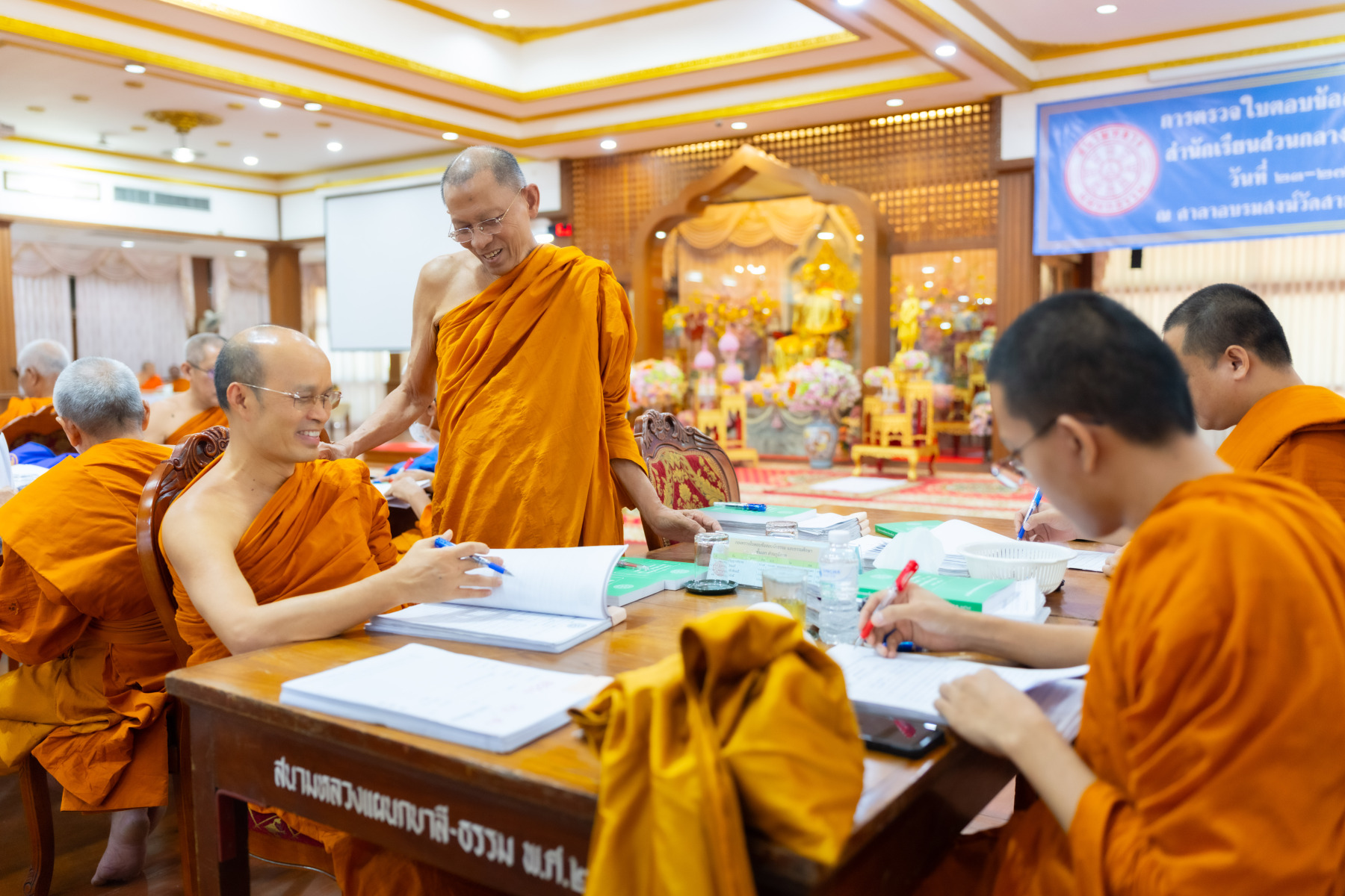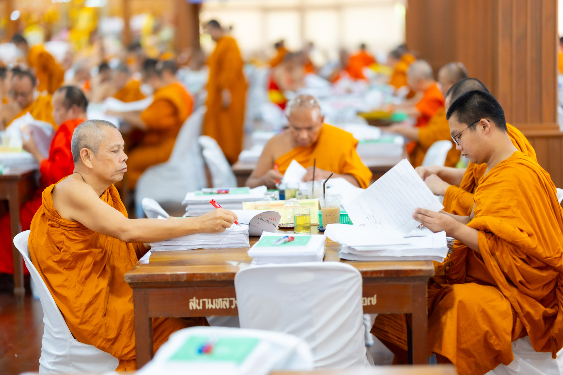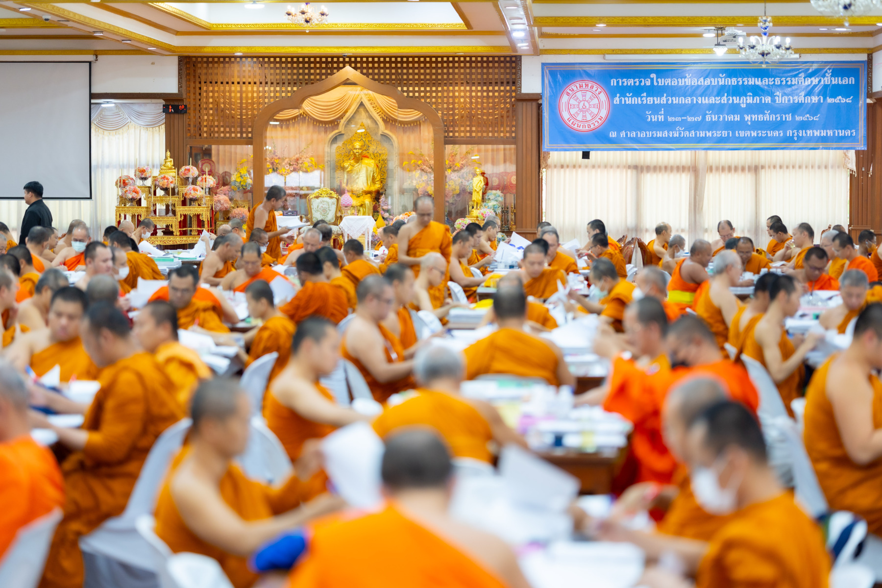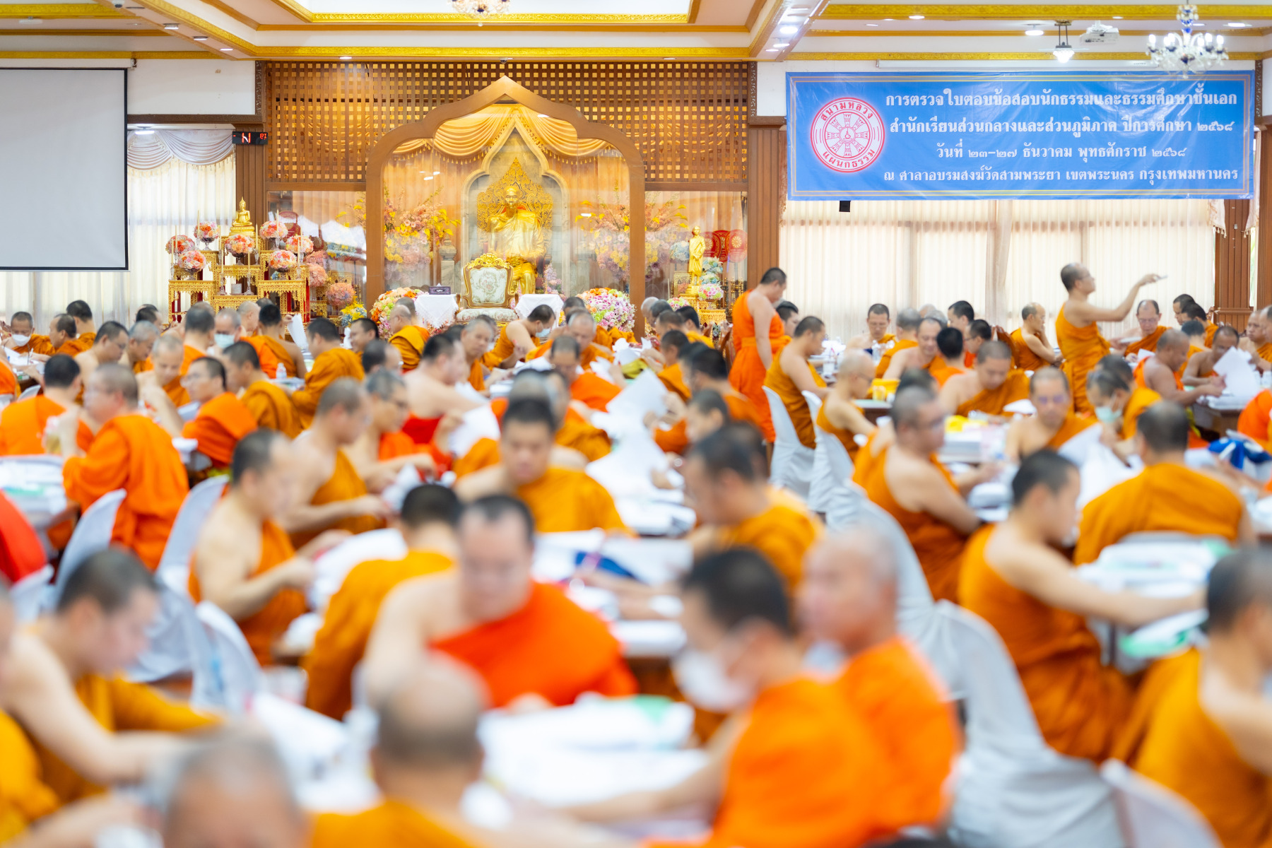 กรุงเทพมหานคร (๒๖ ธันวาคม ๒๕๖๘) – บรรยากาศการตรวจใบตอบข้อสอบธรรมสนามหลวงดำเนินไปอย่างเข้มข้นและเป็นระเบียบเรียบร้อย โดยในวันนี้ถือเป็นวันที่ ๔ ของการตรวจผลสอบนักธรรมและธรรมศึกษาชั้นเอก ประจำปีการศึกษา ๒๕๖๘ สำหรับส่วนภูมิภาค ซึ่งได้รับเมตตาจากคณะพระเถรานุเถระผู้บริหารระดับสูงของสำนักงานแม่กองธรรมสนามหลวง เดินทางมาตรวจเยี่ยมสนามตรวจเพื่อติดตามความเรียบร้อยและประทานกำลังใจแก่คณะกรรมการผู้ปฏิบัติหน้าที่