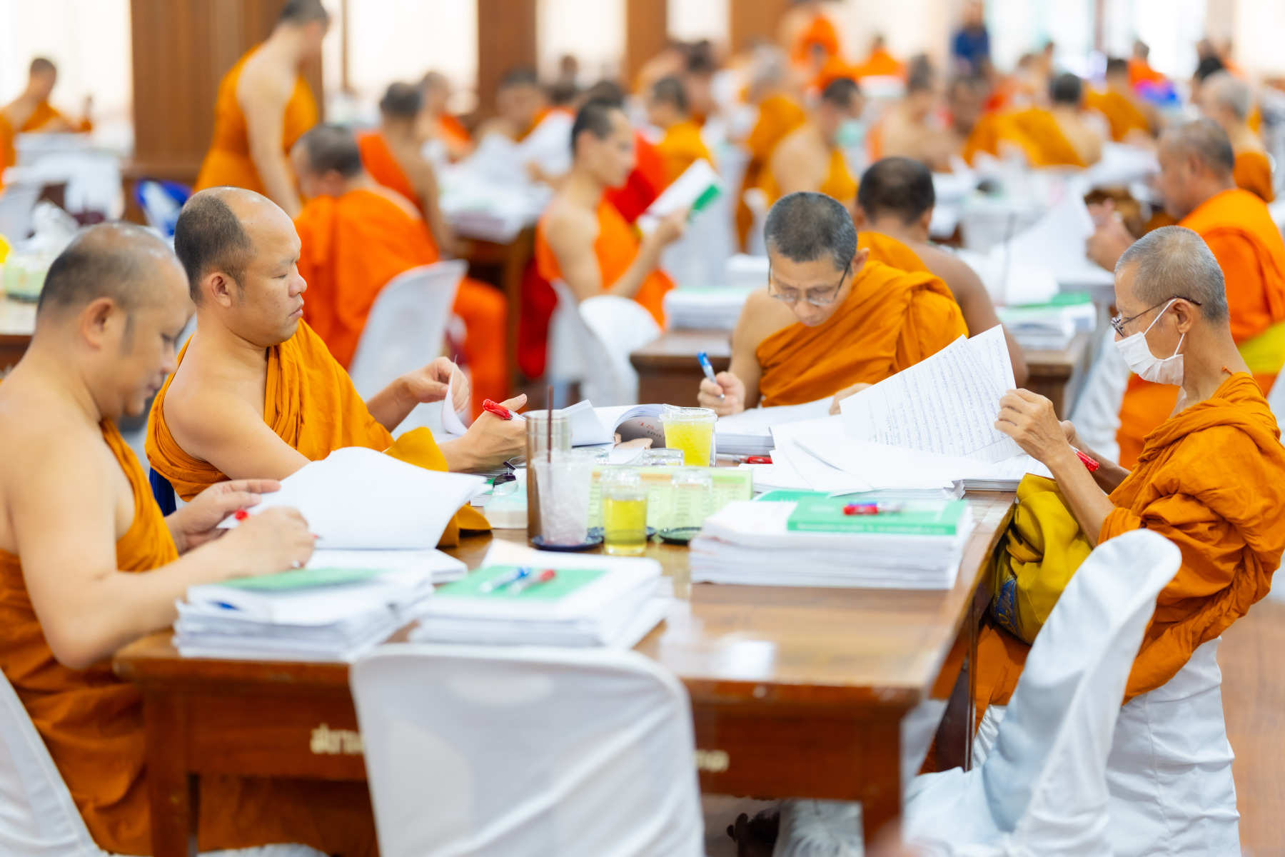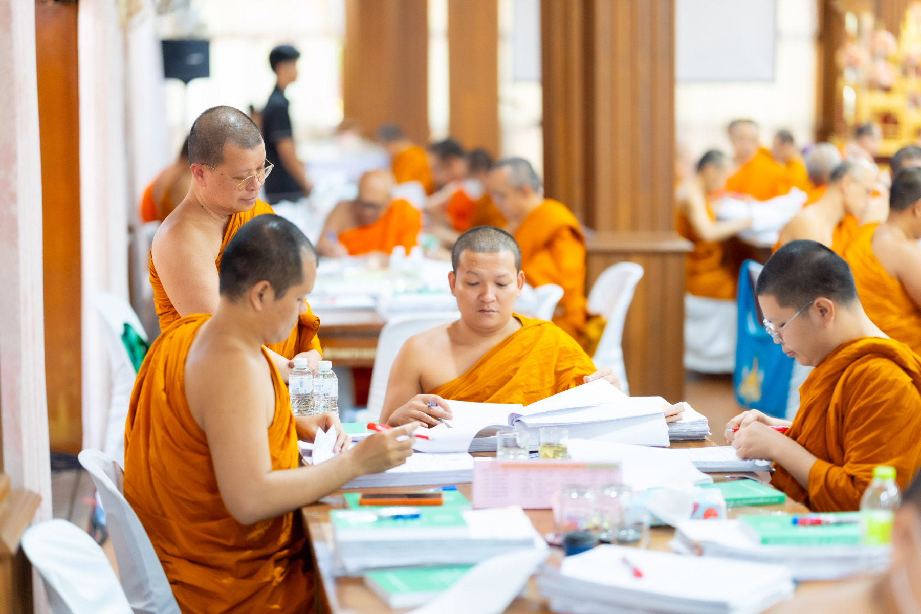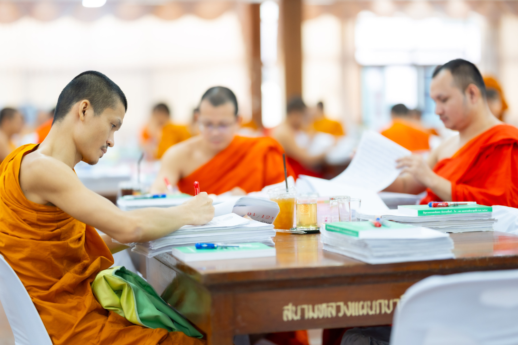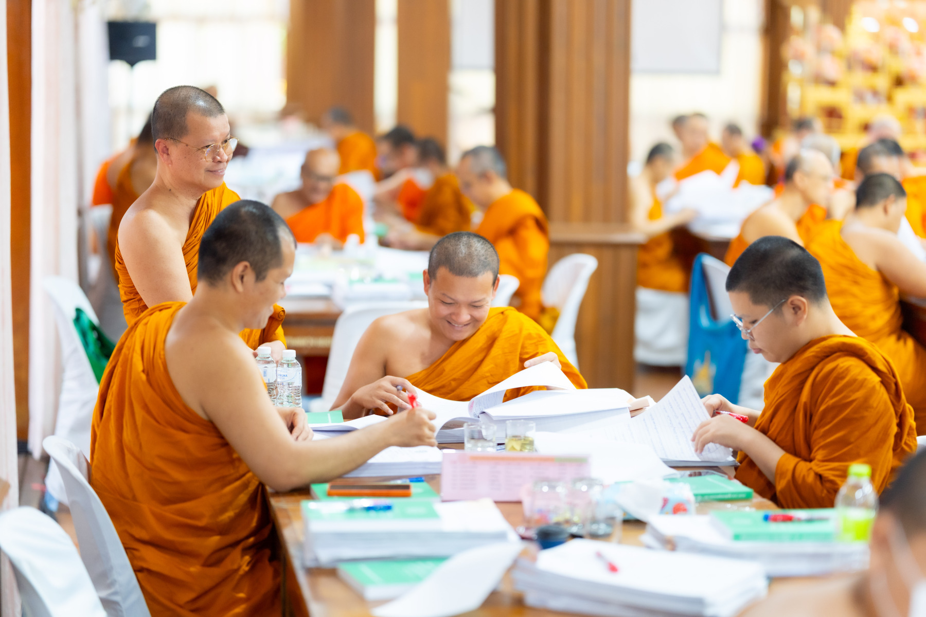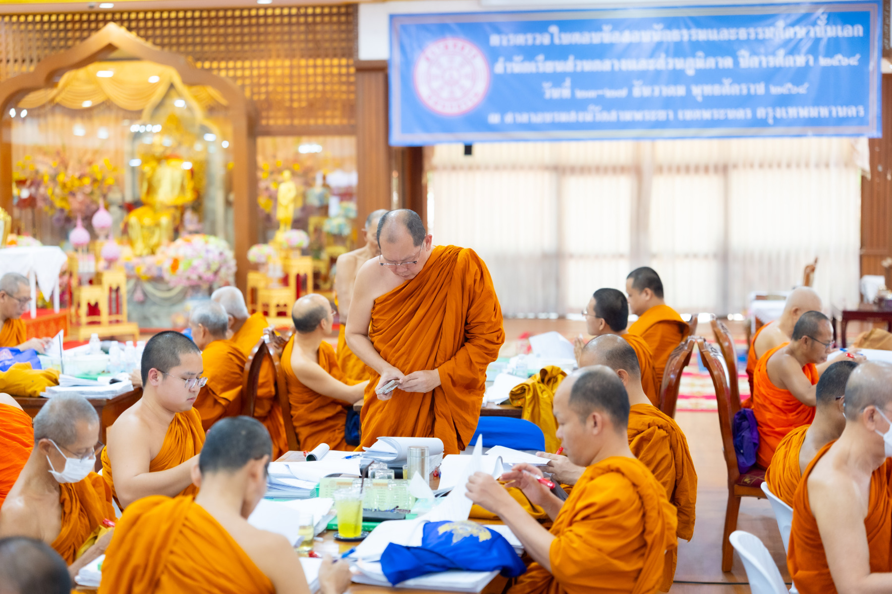 กรุงเทพมหานคร (๒๖ ธันวาคม ๒๕๖๘) – บรรยากาศการตรวจใบตอบข้อสอบธรรมสนามหลวงดำเนินไปอย่างเข้มข้นและเป็นระเบียบเรียบร้อย โดยในวันนี้ถือเป็นวันที่ ๔ ของการตรวจผลสอบนักธรรมและธรรมศึกษาชั้นเอก ประจำปีการศึกษา ๒๕๖๘ สำหรับส่วนภูมิภาค ซึ่งได้รับเมตตาจากคณะพระเถรานุเถระผู้บริหารระดับสูงของสำนักงานแม่กองธรรมสนามหลวง เดินทางมาตรวจเยี่ยมสนามตรวจเพื่อติดตามความเรียบร้อยและประทานกำลังใจแก่คณะกรรมการผู้ปฏิบัติหน้าที่