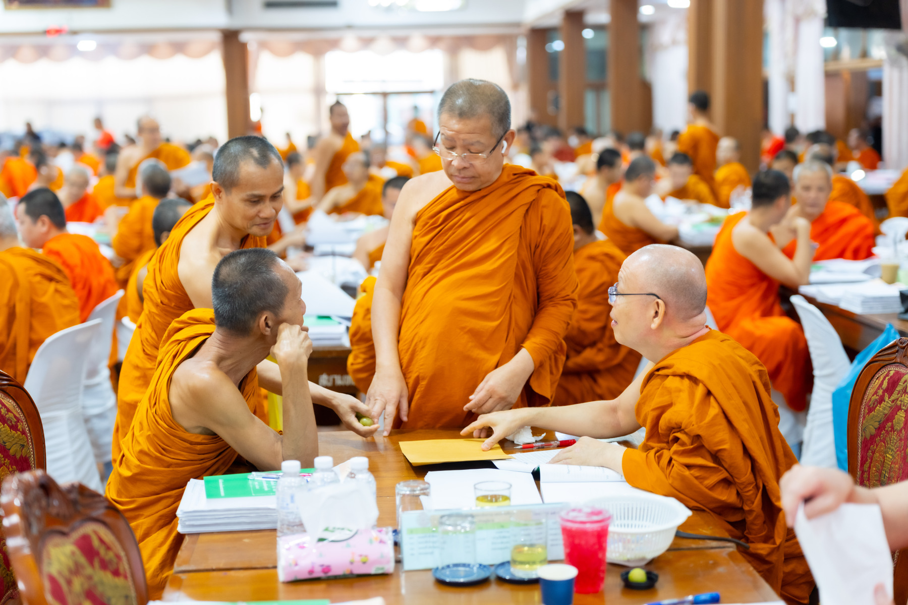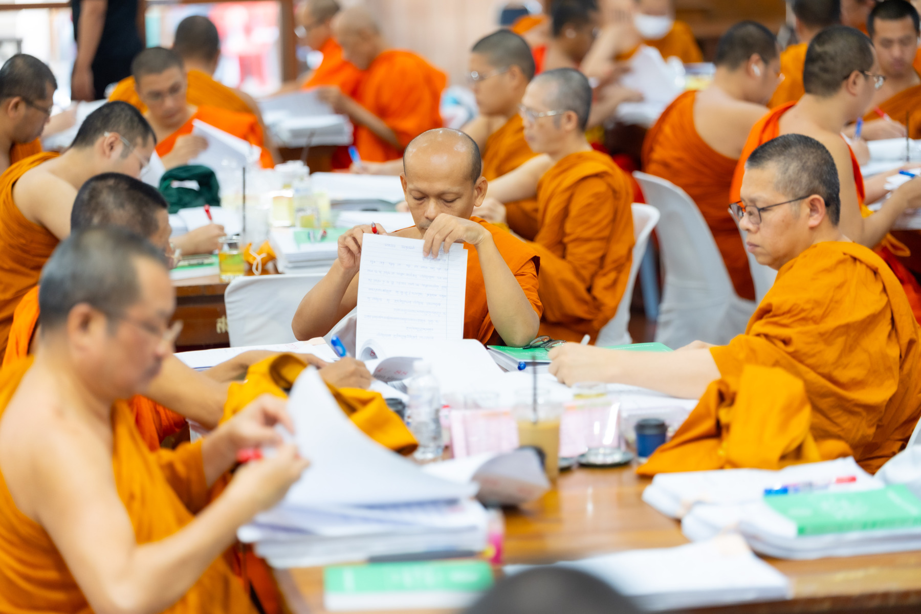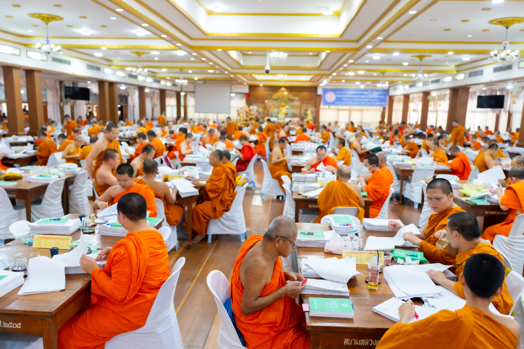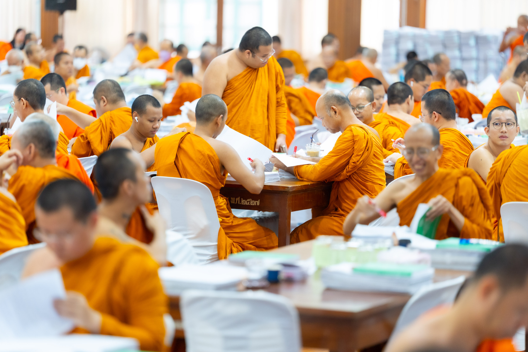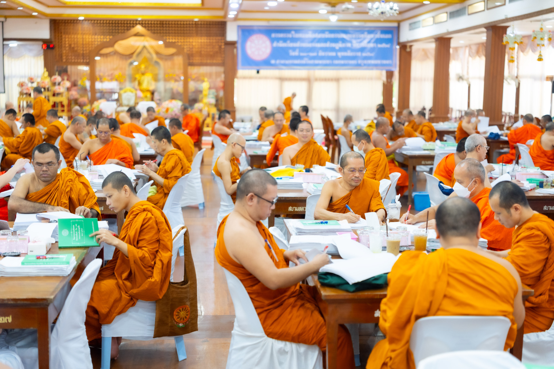 กรุงเทพมหานคร (๒๖ ธันวาคม ๒๕๖๘) – บรรยากาศการตรวจใบตอบข้อสอบธรรมสนามหลวงดำเนินไปอย่างเข้มข้นและเป็นระเบียบเรียบร้อย โดยในวันนี้ถือเป็นวันที่ ๔ ของการตรวจผลสอบนักธรรมและธรรมศึกษาชั้นเอก ประจำปีการศึกษา ๒๕๖๘ สำหรับส่วนภูมิภาค ซึ่งได้รับเมตตาจากคณะพระเถรานุเถระผู้บริหารระดับสูงของสำนักงานแม่กองธรรมสนามหลวง เดินทางมาตรวจเยี่ยมสนามตรวจเพื่อติดตามความเรียบร้อยและประทานกำลังใจแก่คณะกรรมการผู้ปฏิบัติหน้าที่