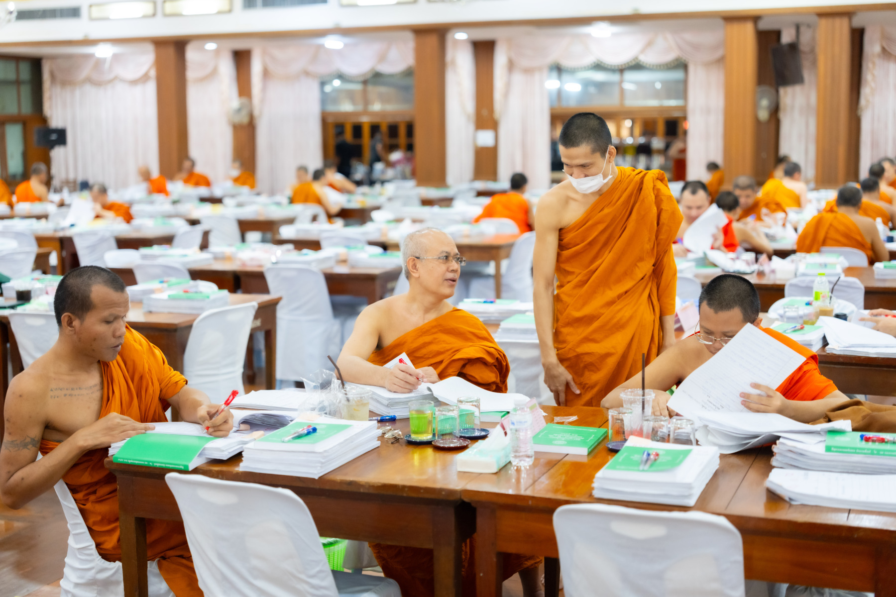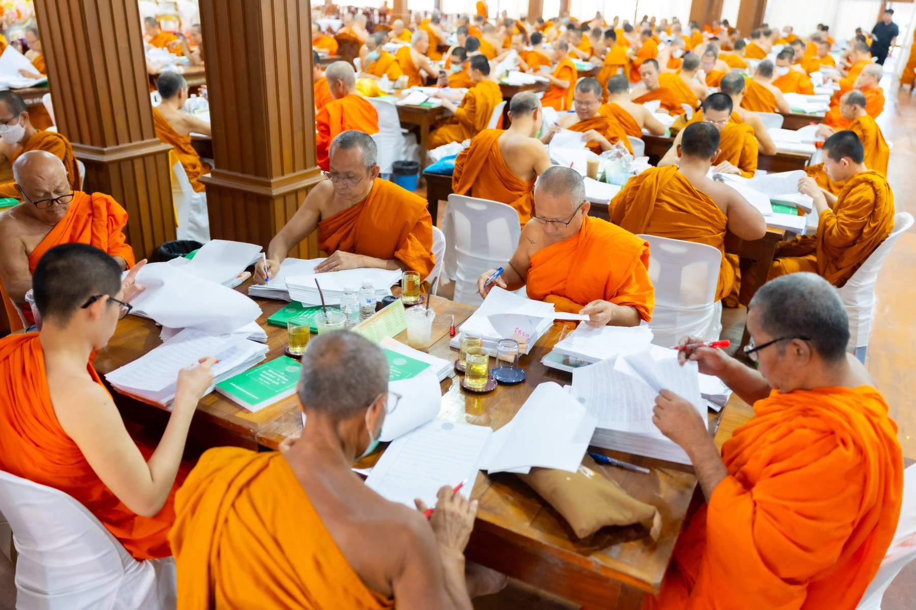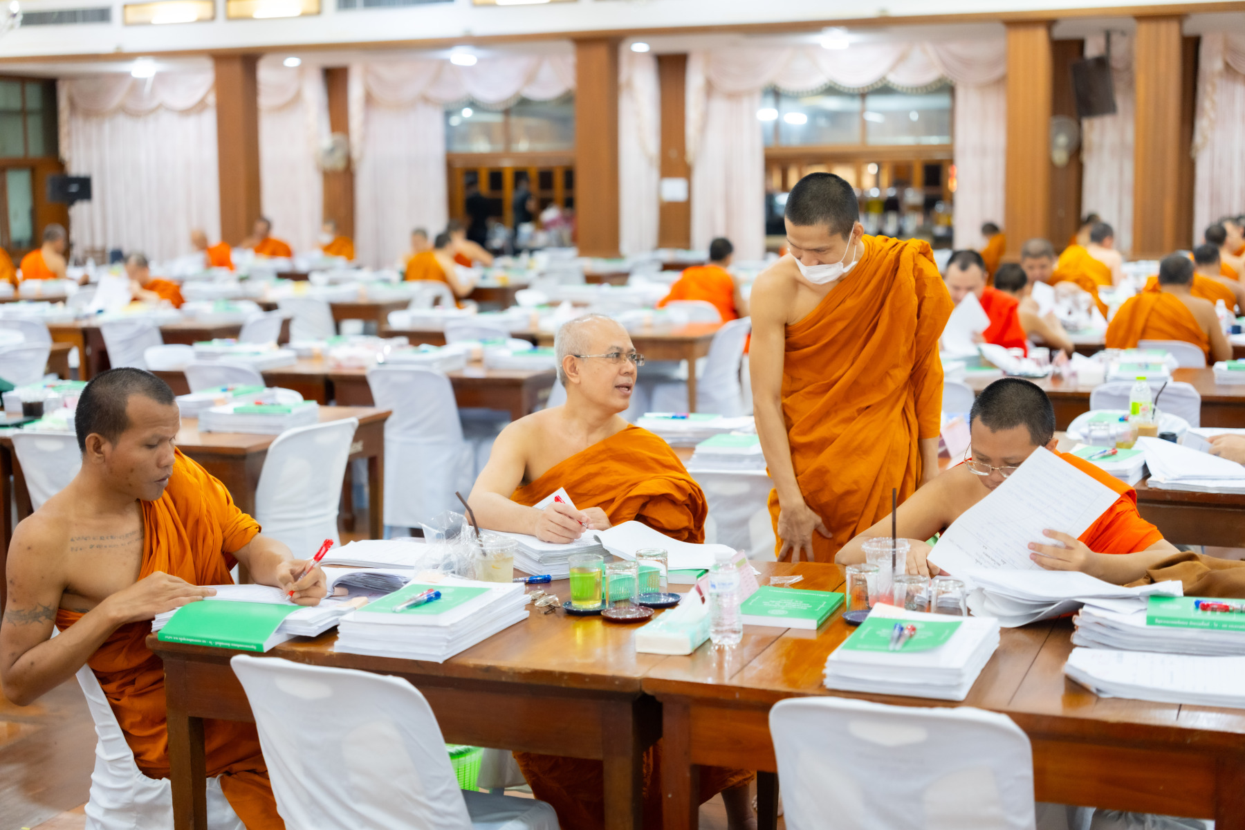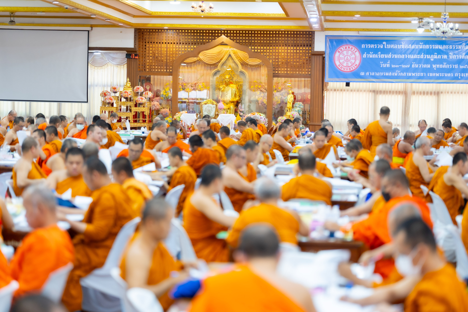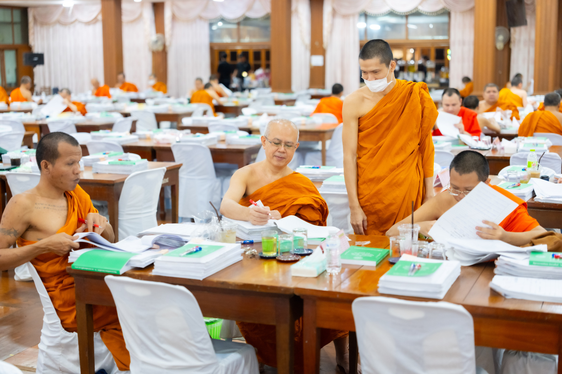 กรุงเทพมหานคร (๒๖ ธันวาคม ๒๕๖๘) – บรรยากาศการตรวจใบตอบข้อสอบธรรมสนามหลวงดำเนินไปอย่างเข้มข้นและเป็นระเบียบเรียบร้อย โดยในวันนี้ถือเป็นวันที่ ๔ ของการตรวจผลสอบนักธรรมและธรรมศึกษาชั้นเอก ประจำปีการศึกษา ๒๕๖๘ สำหรับส่วนภูมิภาค ซึ่งได้รับเมตตาจากคณะพระเถรานุเถระผู้บริหารระดับสูงของสำนักงานแม่กองธรรมสนามหลวง เดินทางมาตรวจเยี่ยมสนามตรวจเพื่อติดตามความเรียบร้อยและประทานกำลังใจแก่คณะกรรมการผู้ปฏิบัติหน้าที่