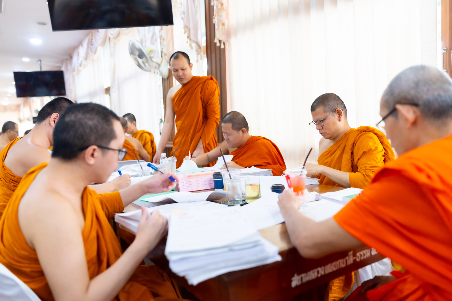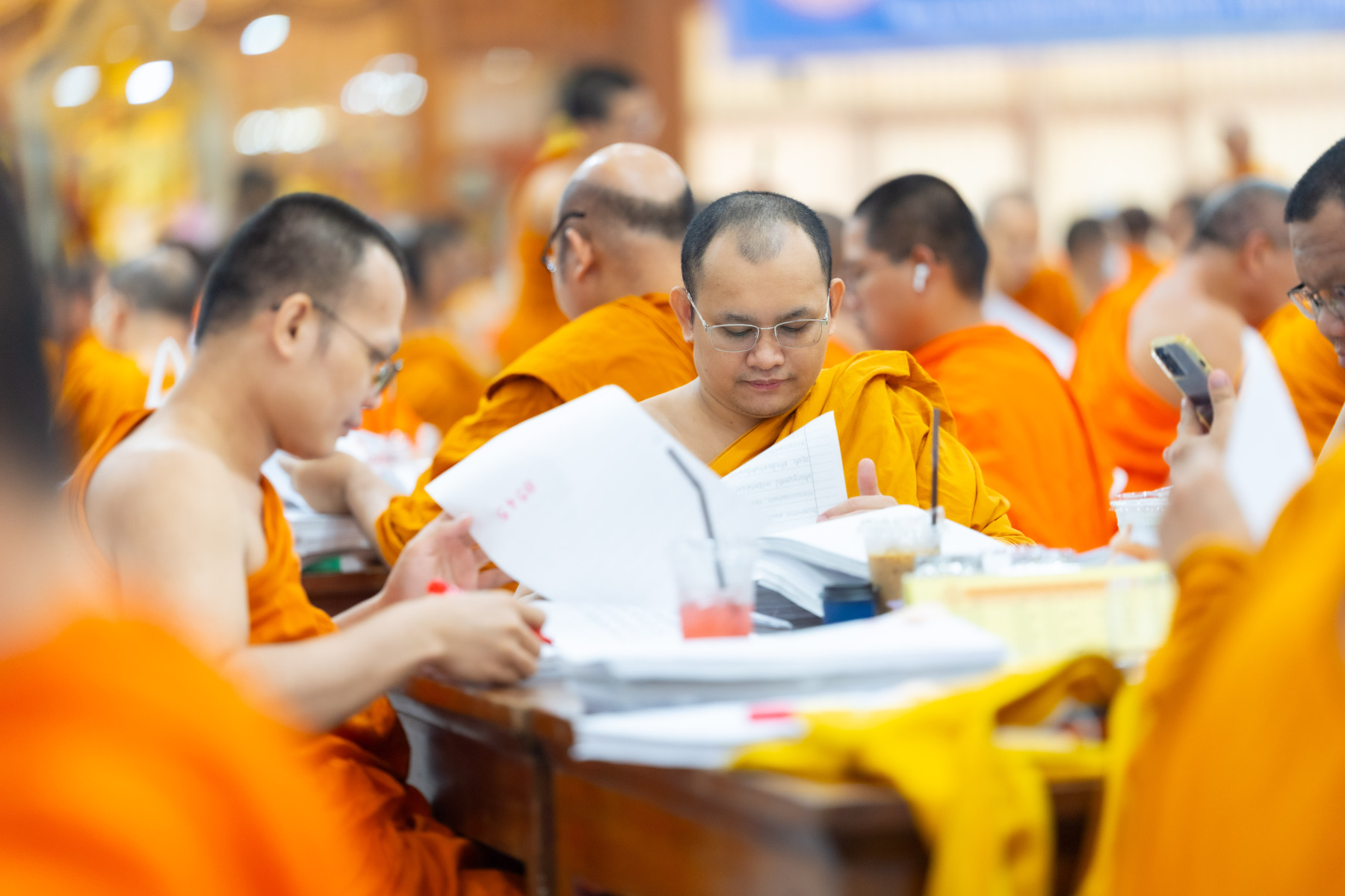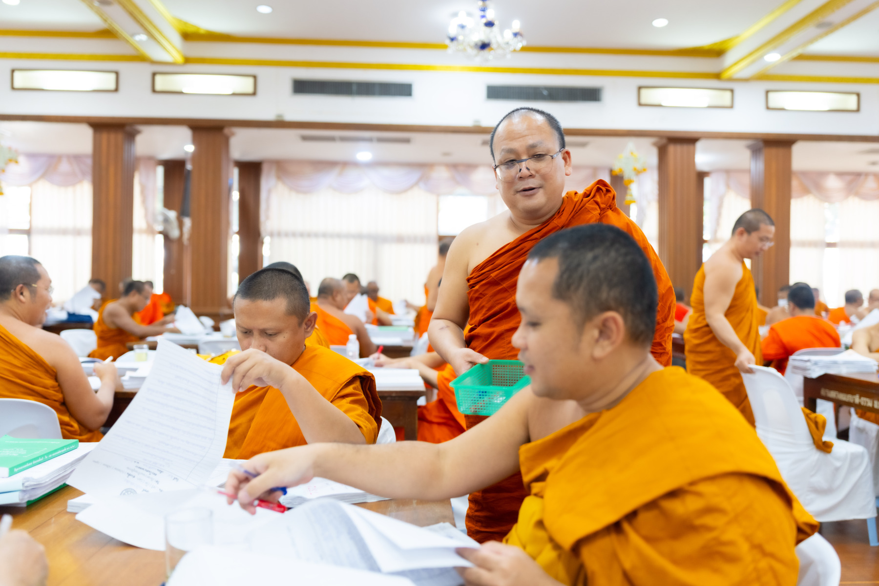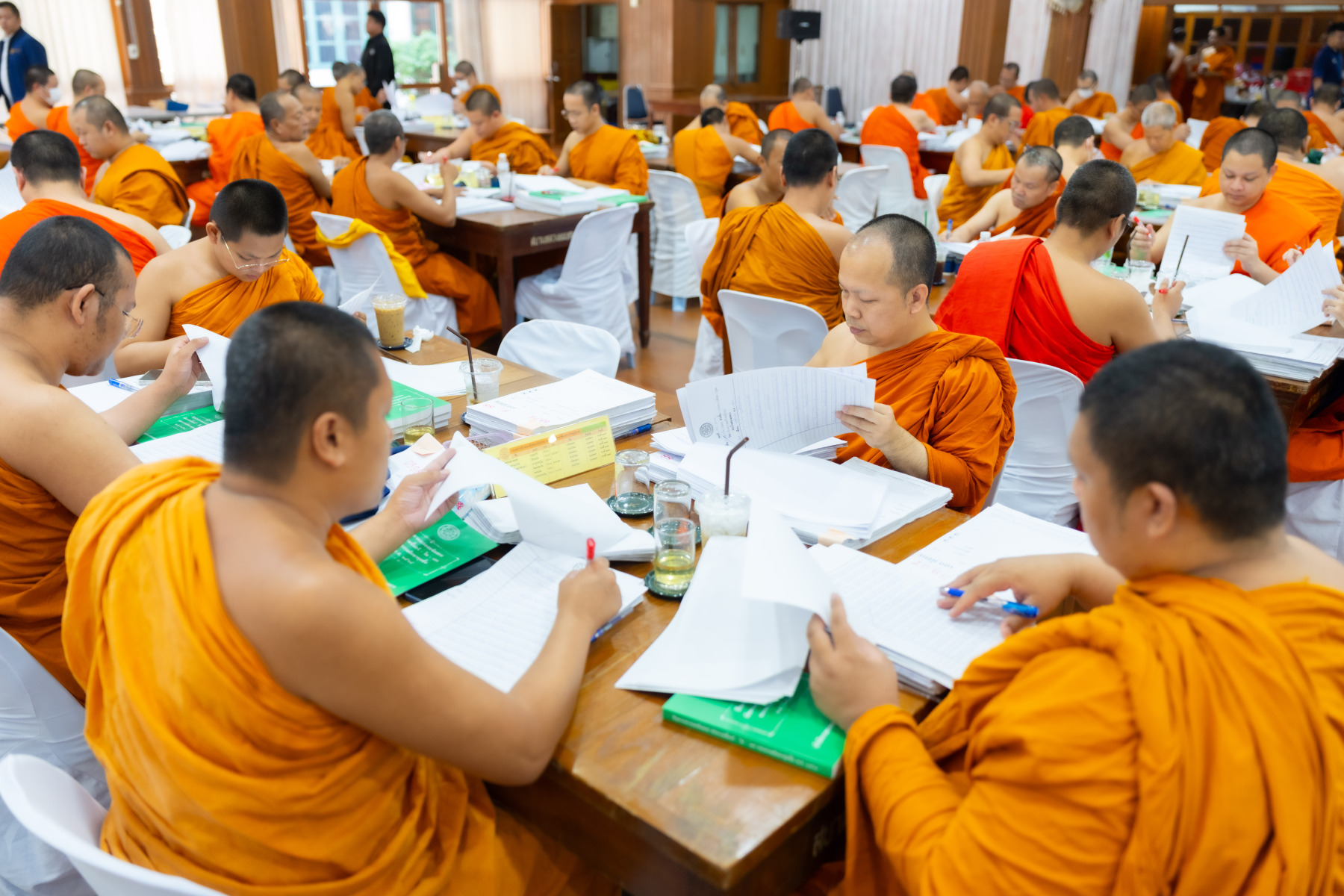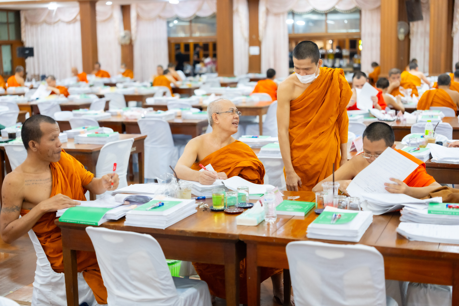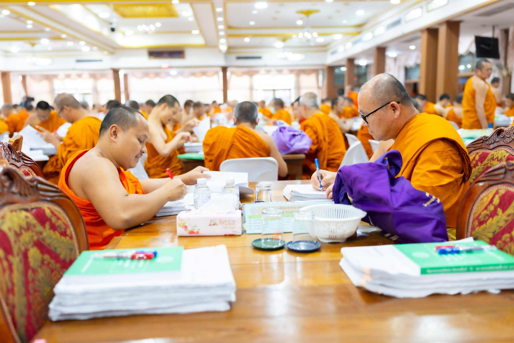 กรุงเทพมหานคร (๒๖ ธันวาคม ๒๕๖๘) – บรรยากาศการตรวจใบตอบข้อสอบธรรมสนามหลวงดำเนินไปอย่างเข้มข้นและเป็นระเบียบเรียบร้อย โดยในวันนี้ถือเป็นวันที่ ๔ ของการตรวจผลสอบนักธรรมและธรรมศึกษาชั้นเอก ประจำปีการศึกษา ๒๕๖๘ สำหรับส่วนภูมิภาค ซึ่งได้รับเมตตาจากคณะพระเถรานุเถระผู้บริหารระดับสูงของสำนักงานแม่กองธรรมสนามหลวง เดินทางมาตรวจเยี่ยมสนามตรวจเพื่อติดตามความเรียบร้อยและประทานกำลังใจแก่คณะกรรมการผู้ปฏิบัติหน้าที่