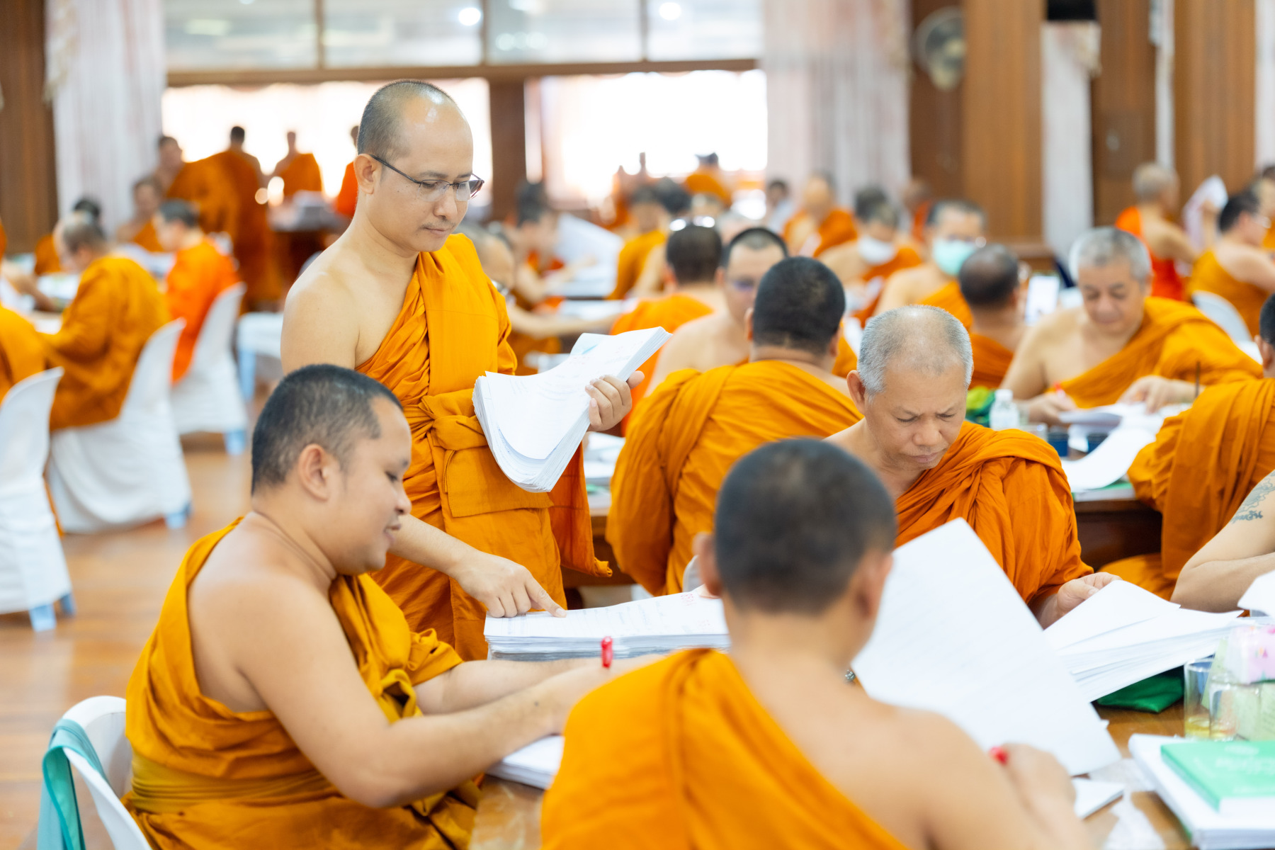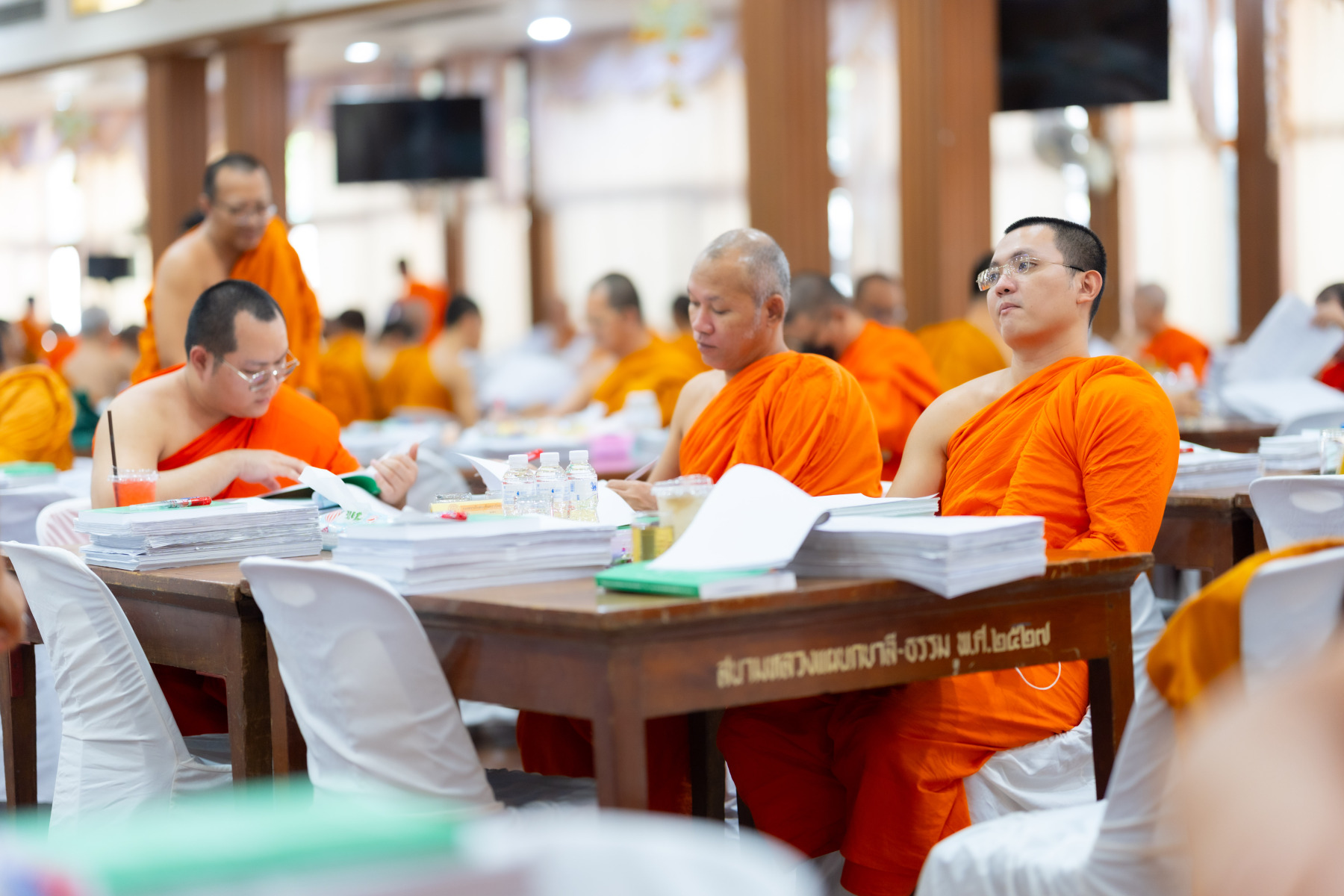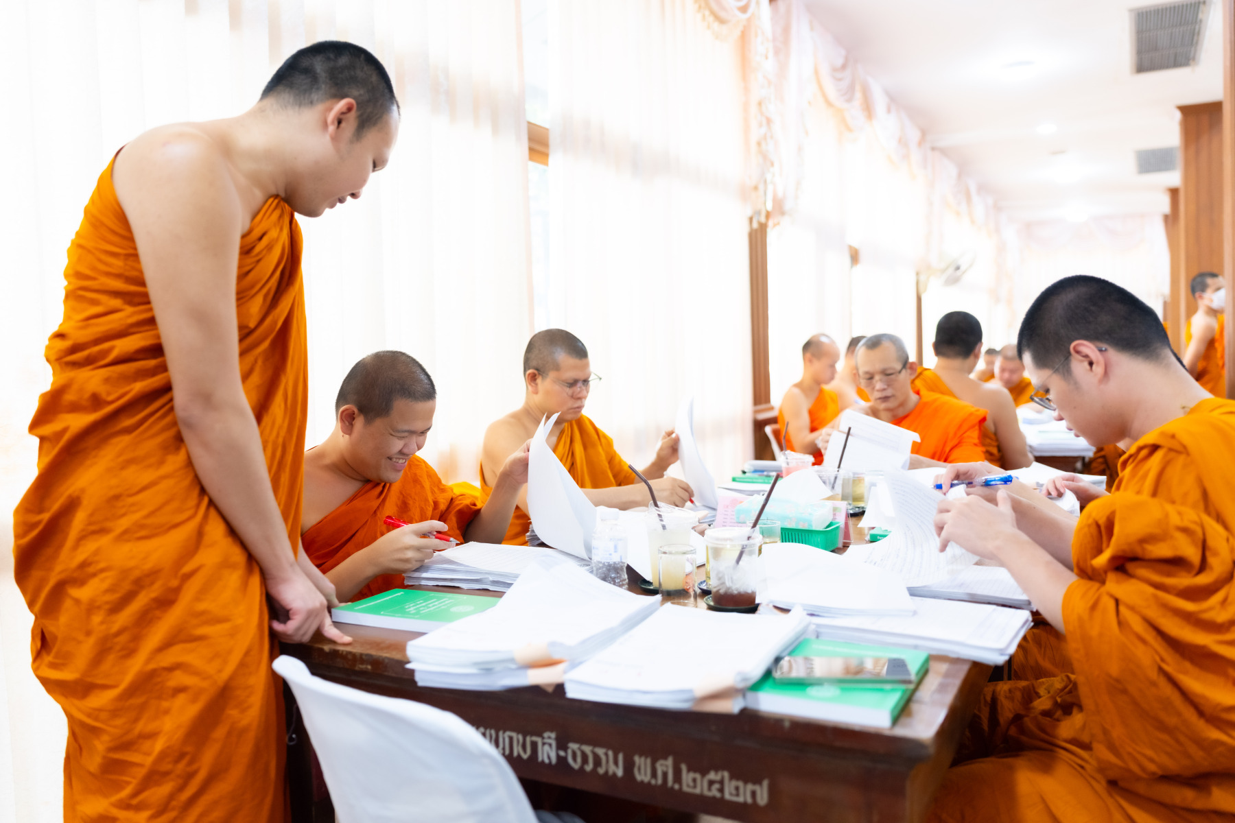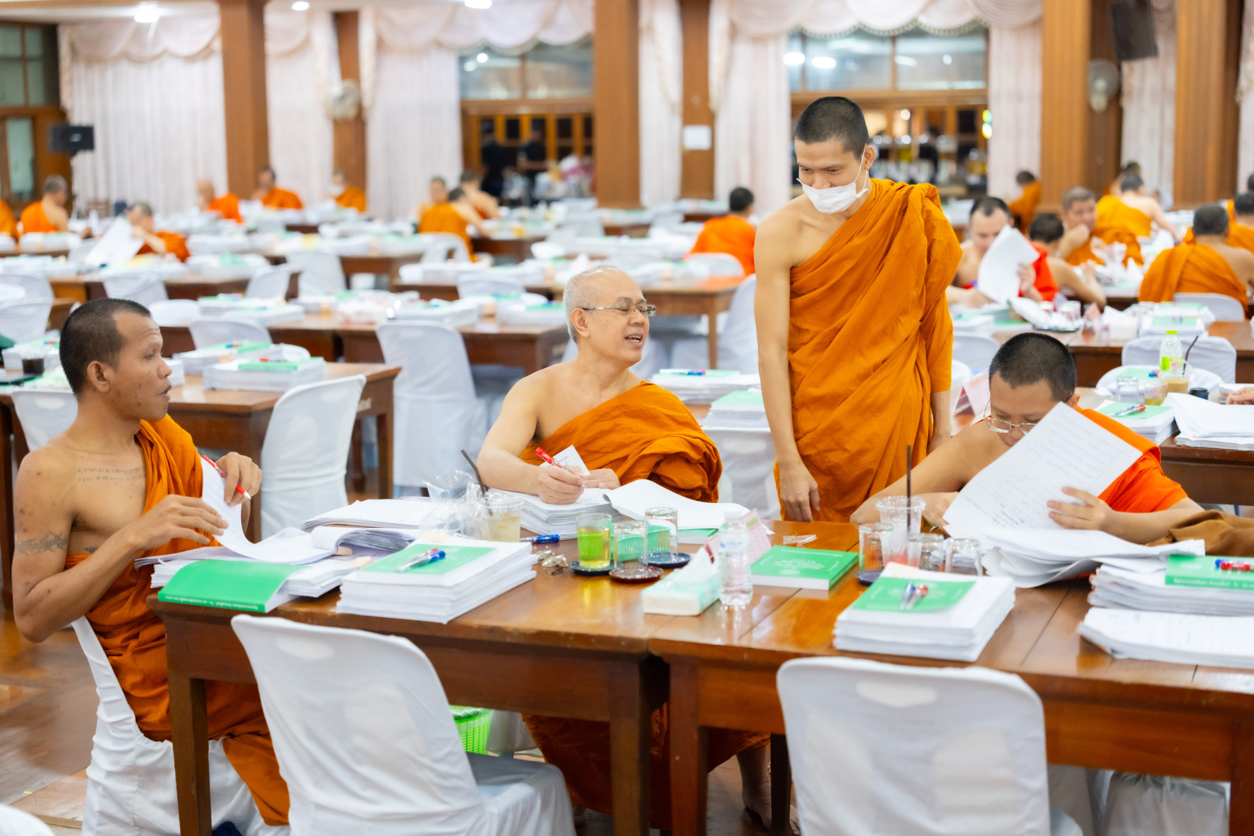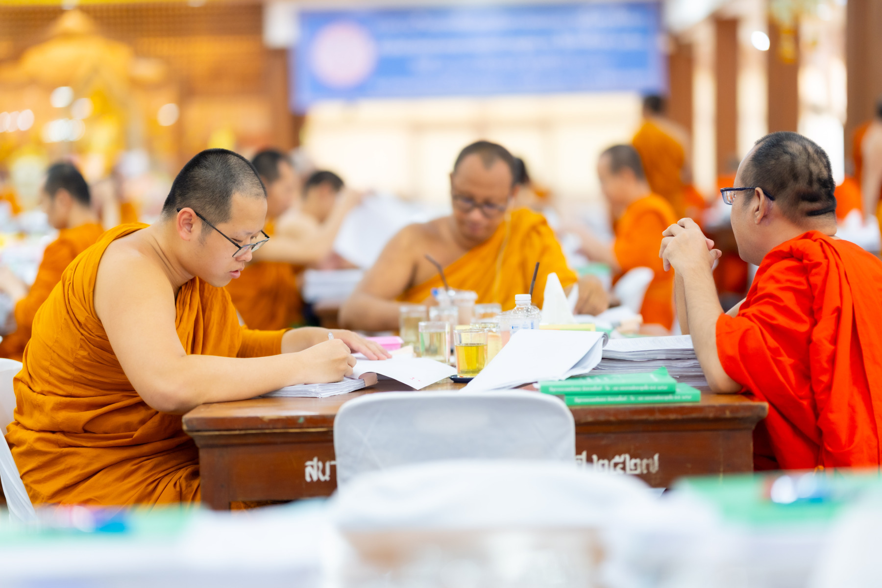กรุงเทพมหานคร (๒๖ ธันวาคม ๒๕๖๘) – บรรยากาศการตรวจใบตอบข้อสอบธรรมสนามหลวงดำเนินไปอย่างเข้มข้นและเป็นระเบียบเรียบร้อย โดยในวันนี้ถือเป็นวันที่ ๔ ของการตรวจผลสอบนักธรรมและธรรมศึกษาชั้นเอก ประจำปีการศึกษา ๒๕๖๘ สำหรับส่วนภูมิภาค ซึ่งได้รับเมตตาจากคณะพระเถรานุเถระผู้บริหารระดับสูงของสำนักงานแม่กองธรรมสนามหลวง เดินทางมาตรวจเยี่ยมสนามตรวจเพื่อติดตามความเรียบร้อยและประทานกำลังใจแก่คณะกรรมการผู้ปฏิบัติหน้าที่