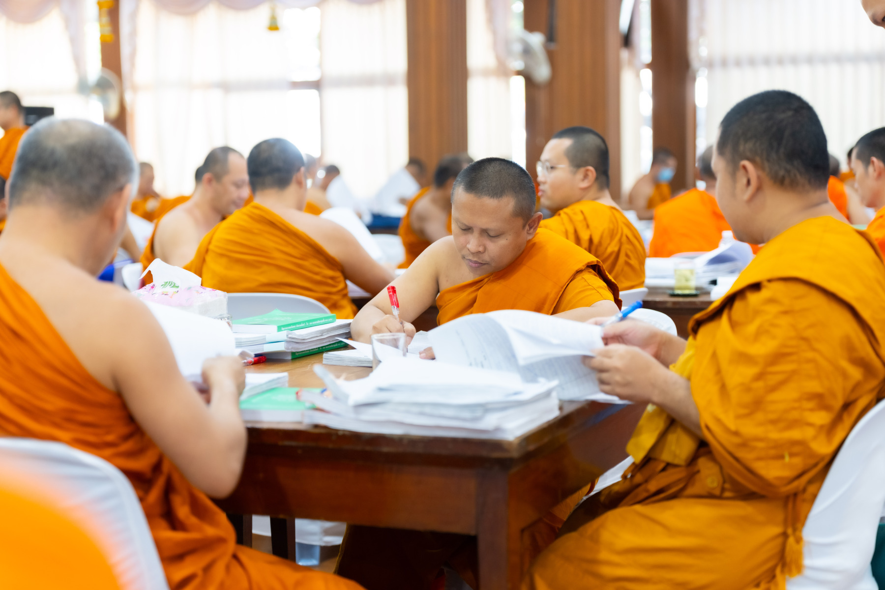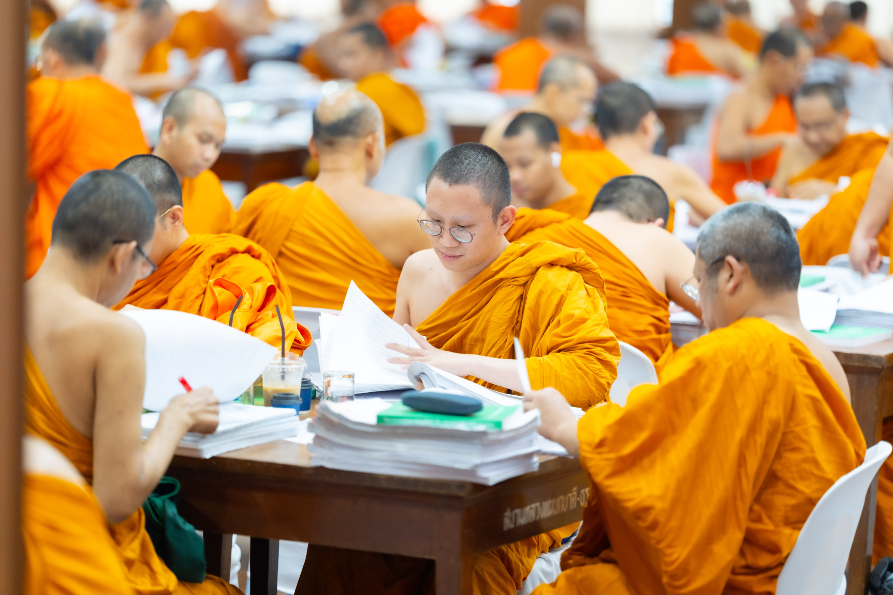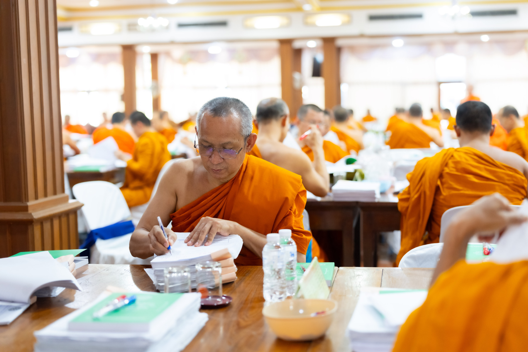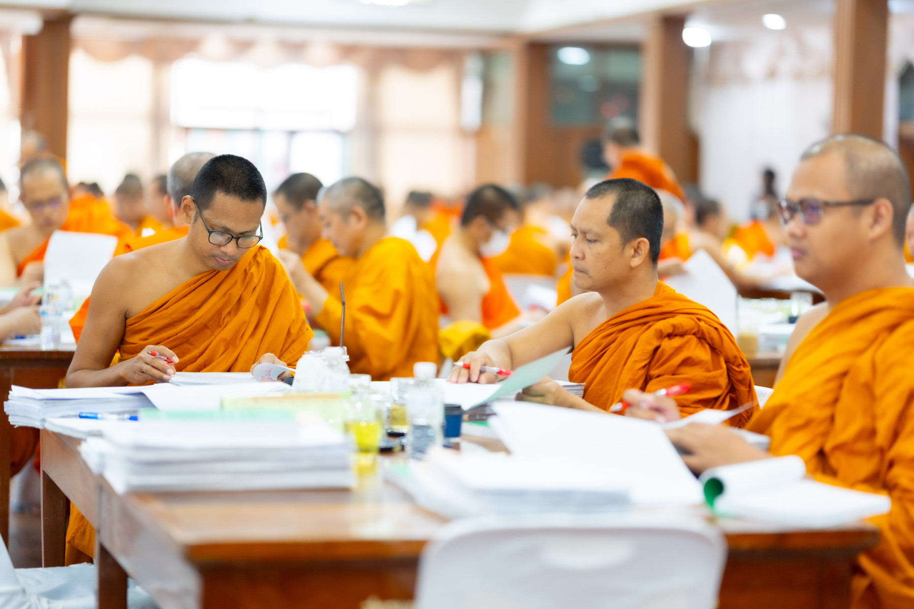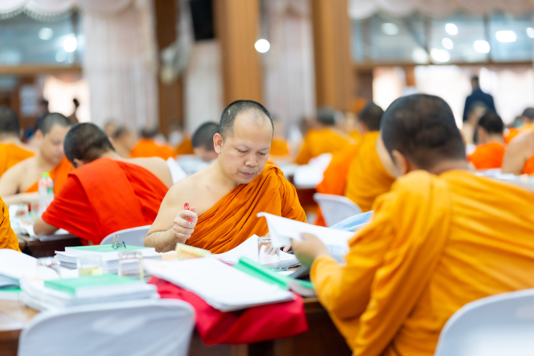 กรุงเทพมหานคร (๒๖ ธันวาคม ๒๕๖๘) – บรรยากาศการตรวจใบตอบข้อสอบธรรมสนามหลวงดำเนินไปอย่างเข้มข้นและเป็นระเบียบเรียบร้อย โดยในวันนี้ถือเป็นวันที่ ๔ ของการตรวจผลสอบนักธรรมและธรรมศึกษาชั้นเอก ประจำปีการศึกษา ๒๕๖๘ สำหรับส่วนภูมิภาค ซึ่งได้รับเมตตาจากคณะพระเถรานุเถระผู้บริหารระดับสูงของสำนักงานแม่กองธรรมสนามหลวง เดินทางมาตรวจเยี่ยมสนามตรวจเพื่อติดตามความเรียบร้อยและประทานกำลังใจแก่คณะกรรมการผู้ปฏิบัติหน้าที่