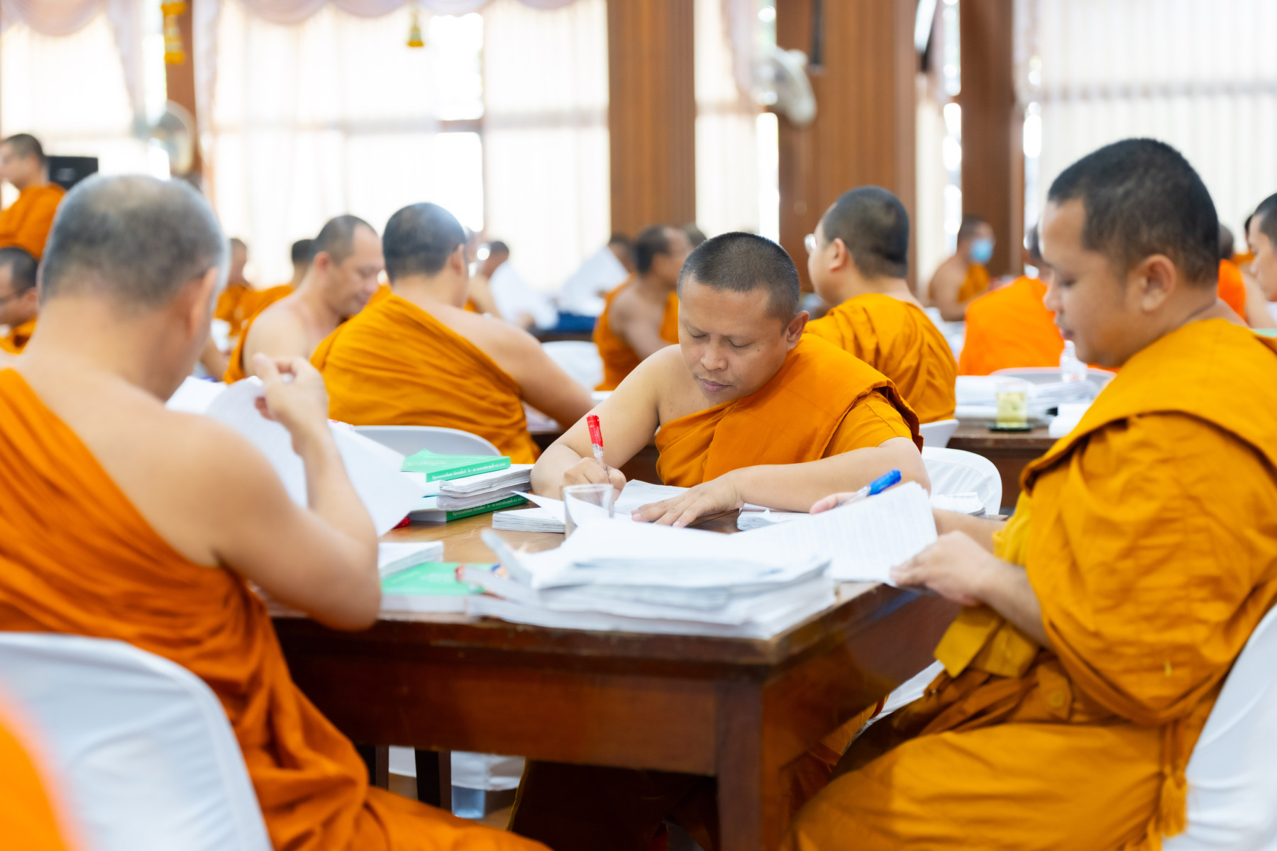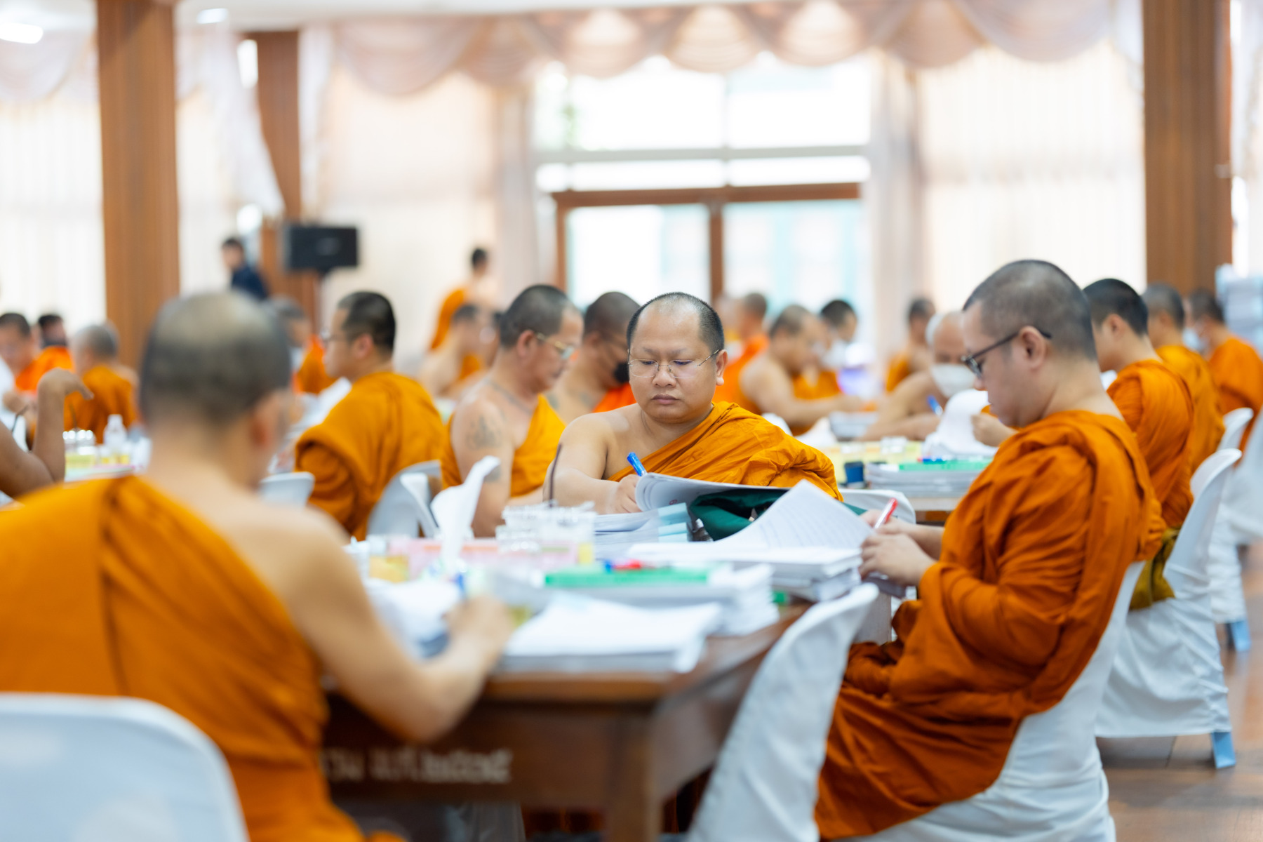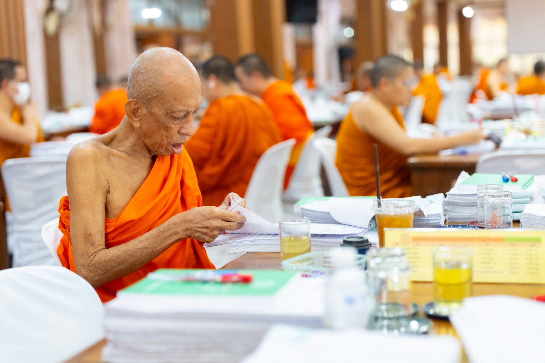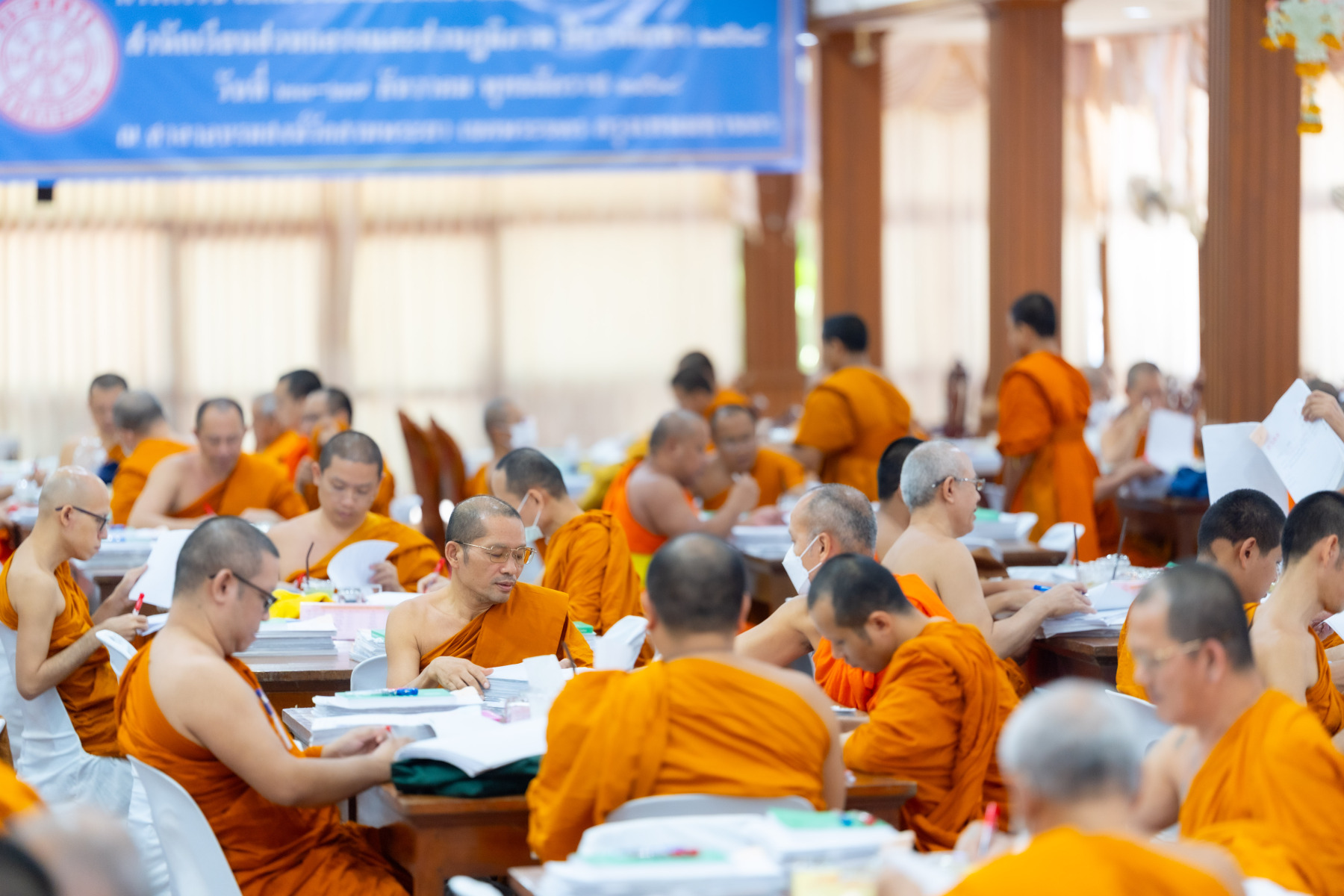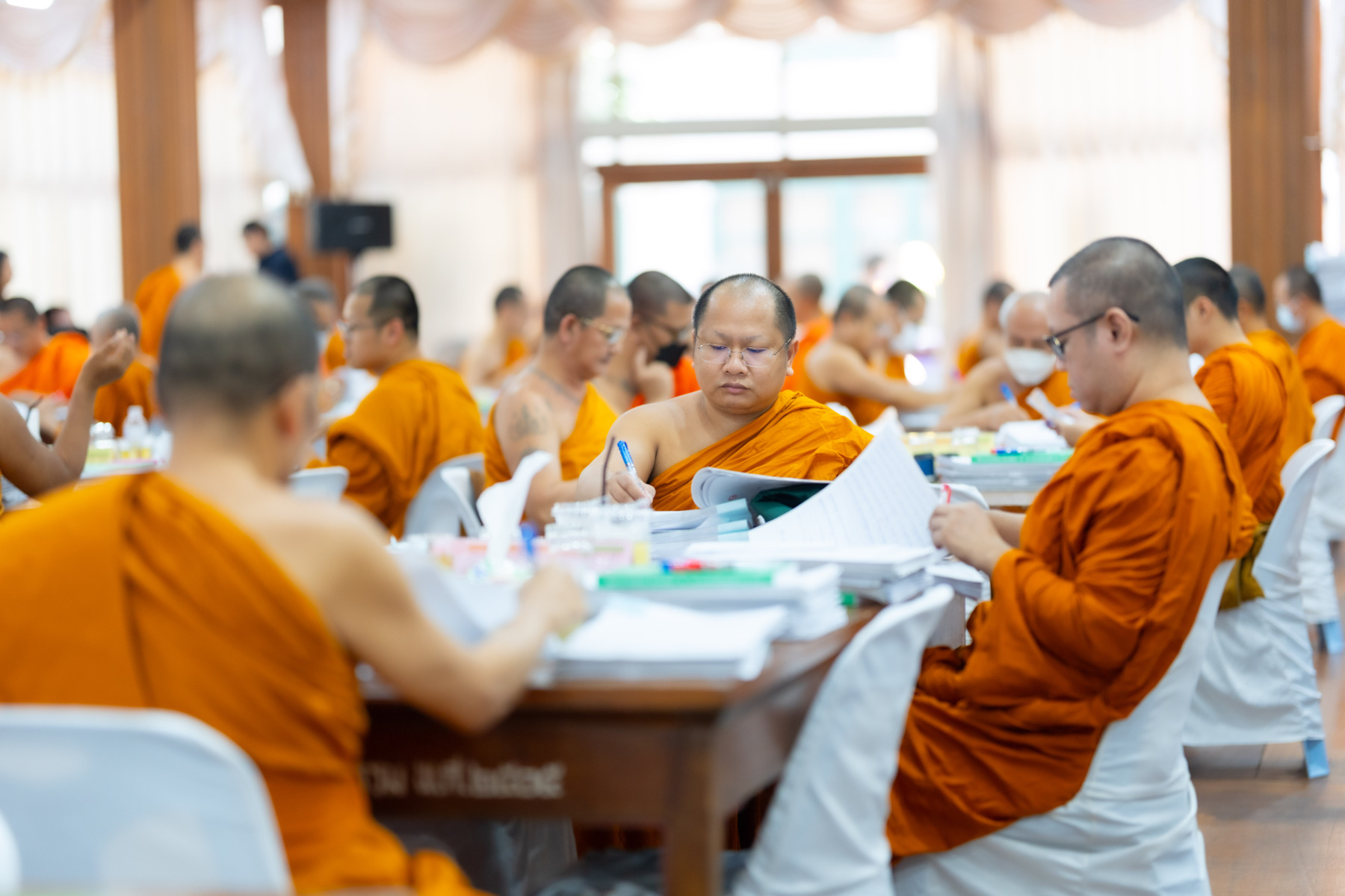 กรุงเทพมหานคร (๒๖ ธันวาคม ๒๕๖๘) – บรรยากาศการตรวจใบตอบข้อสอบธรรมสนามหลวงดำเนินไปอย่างเข้มข้นและเป็นระเบียบเรียบร้อย โดยในวันนี้ถือเป็นวันที่ ๔ ของการตรวจผลสอบนักธรรมและธรรมศึกษาชั้นเอก ประจำปีการศึกษา ๒๕๖๘ สำหรับส่วนภูมิภาค ซึ่งได้รับเมตตาจากคณะพระเถรานุเถระผู้บริหารระดับสูงของสำนักงานแม่กองธรรมสนามหลวง เดินทางมาตรวจเยี่ยมสนามตรวจเพื่อติดตามความเรียบร้อยและประทานกำลังใจแก่คณะกรรมการผู้ปฏิบัติหน้าที่