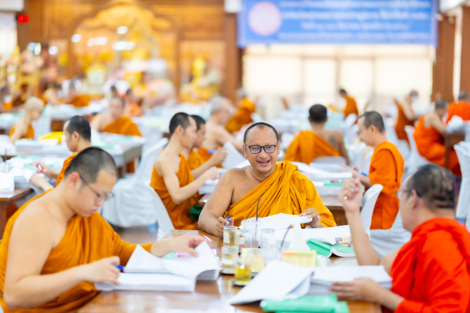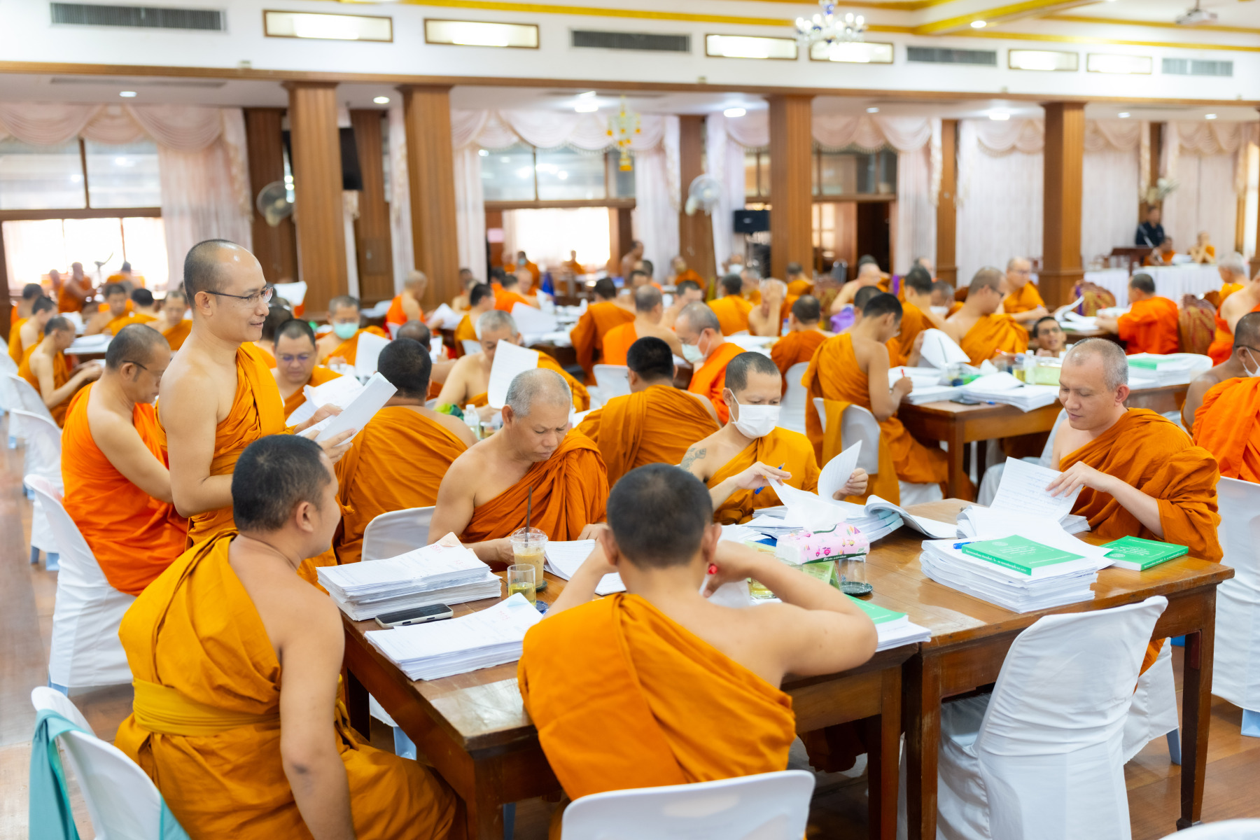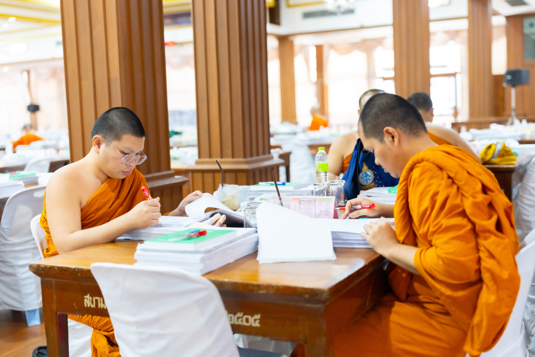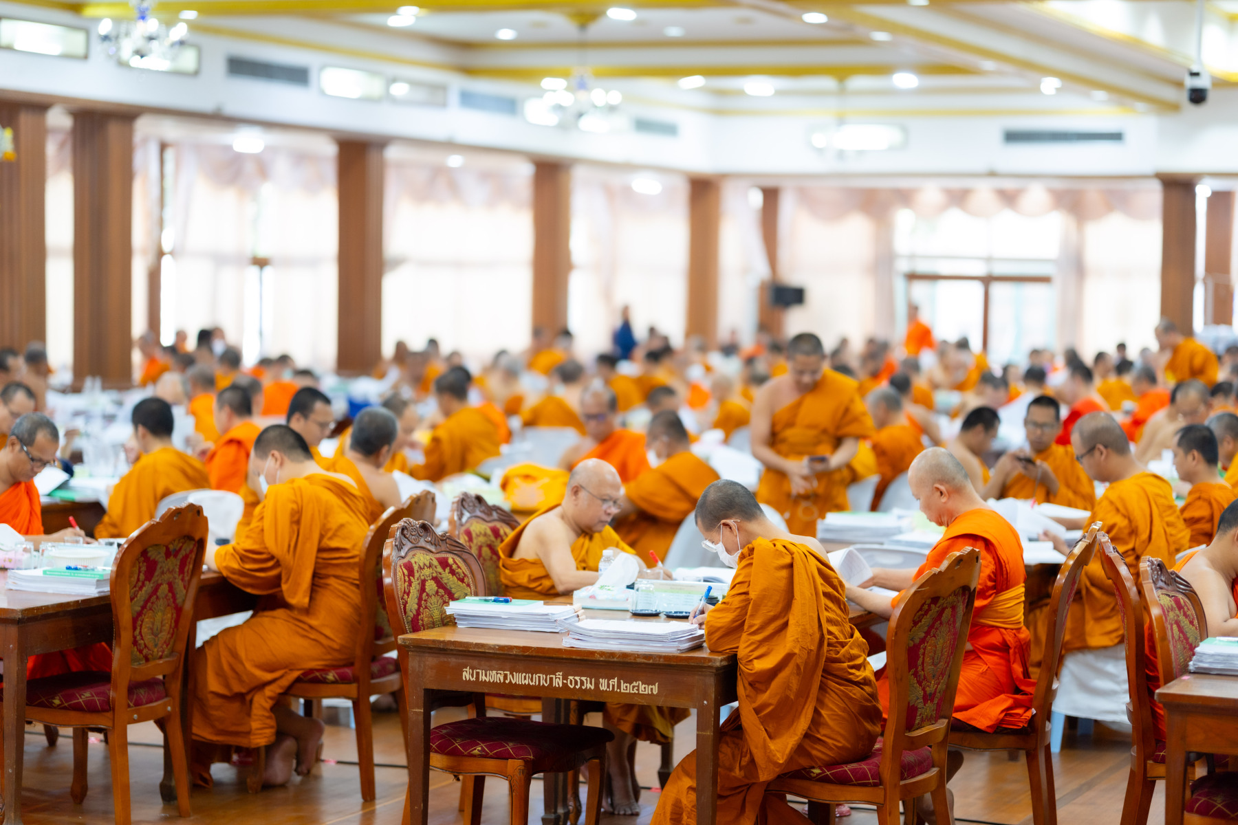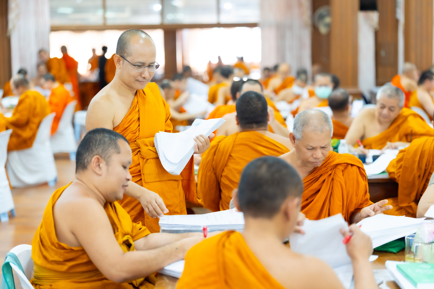 กรุงเทพมหานคร (๒๖ ธันวาคม ๒๕๖๘) – บรรยากาศการตรวจใบตอบข้อสอบธรรมสนามหลวงดำเนินไปอย่างเข้มข้นและเป็นระเบียบเรียบร้อย โดยในวันนี้ถือเป็นวันที่ ๔ ของการตรวจผลสอบนักธรรมและธรรมศึกษาชั้นเอก ประจำปีการศึกษา ๒๕๖๘ สำหรับส่วนภูมิภาค ซึ่งได้รับเมตตาจากคณะพระเถรานุเถระผู้บริหารระดับสูงของสำนักงานแม่กองธรรมสนามหลวง เดินทางมาตรวจเยี่ยมสนามตรวจเพื่อติดตามความเรียบร้อยและประทานกำลังใจแก่คณะกรรมการผู้ปฏิบัติหน้าที่