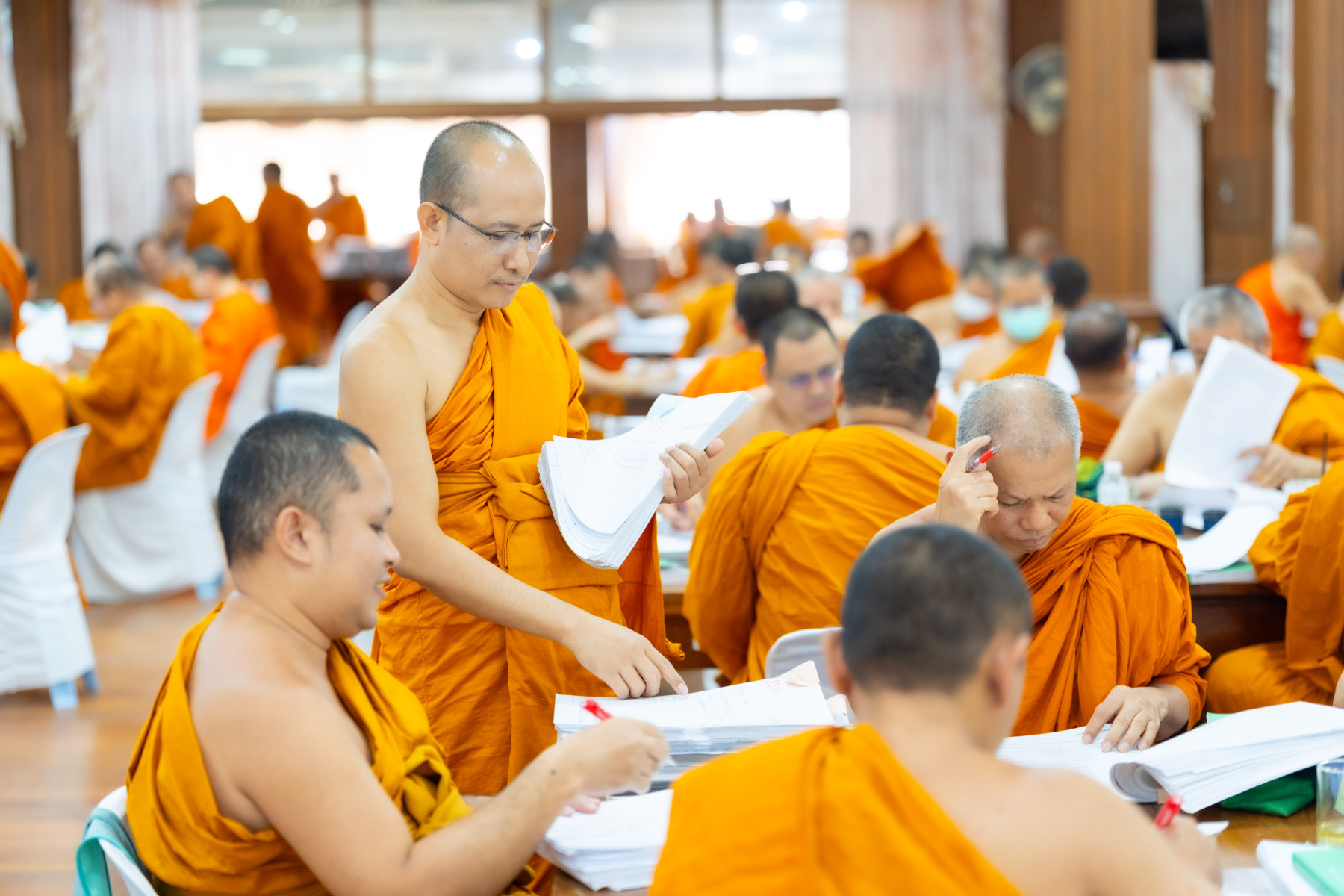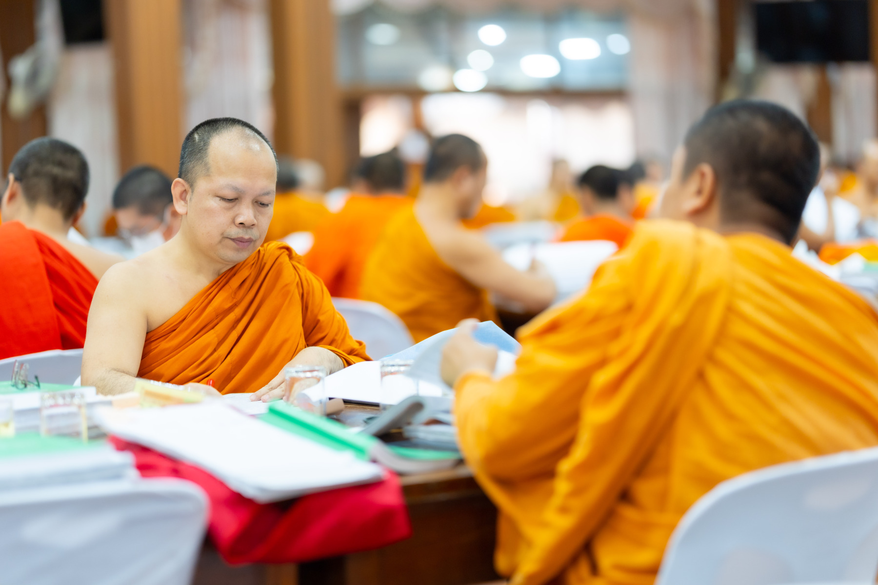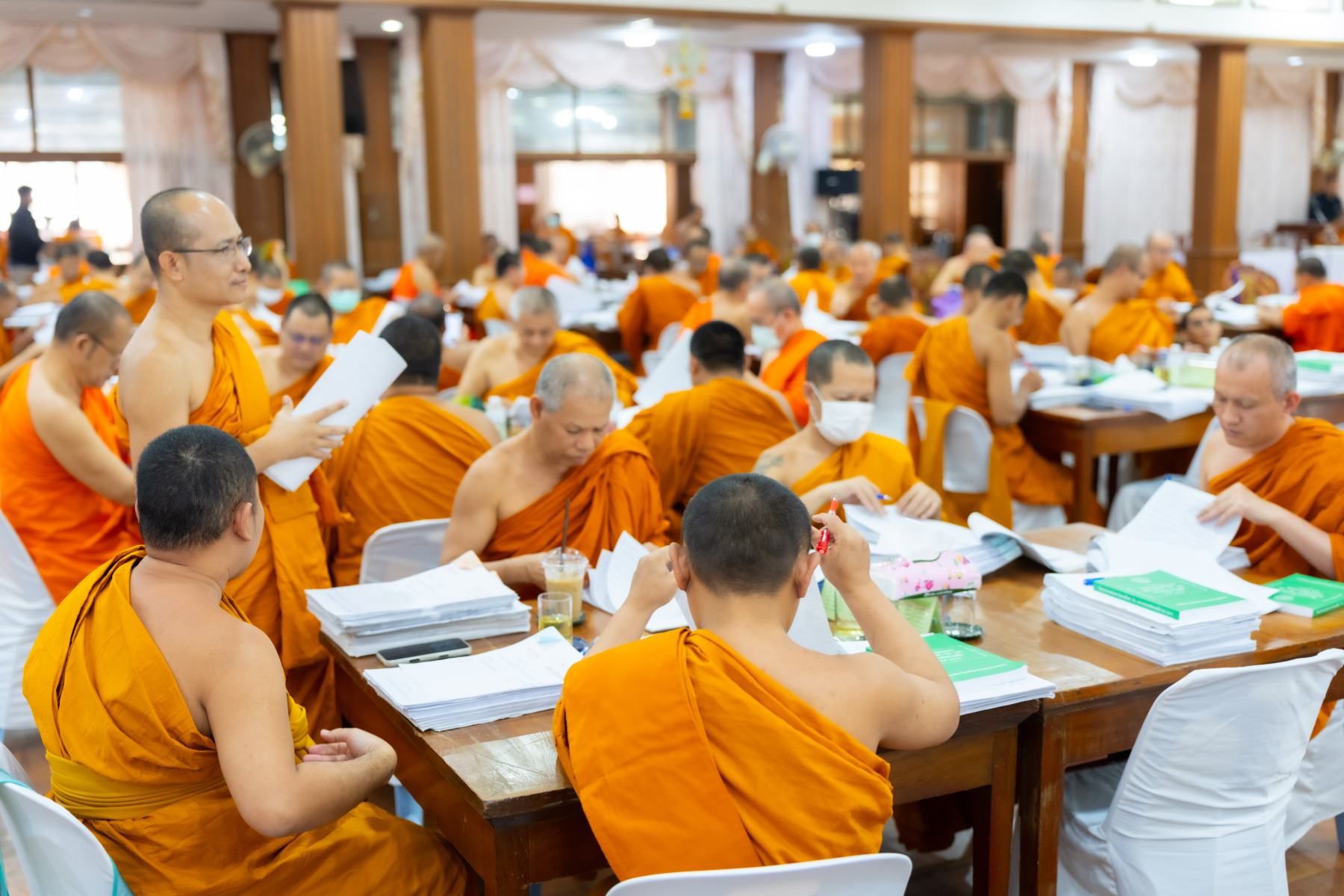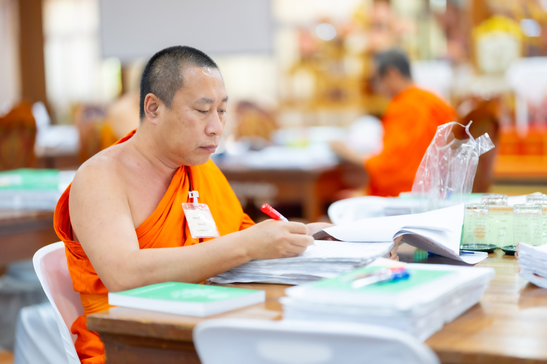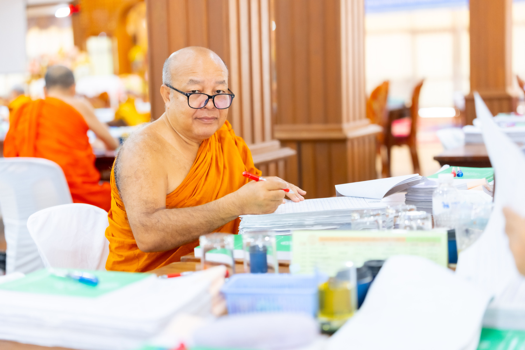 กรุงเทพมหานคร (๒๖ ธันวาคม ๒๕๖๘) – บรรยากาศการตรวจใบตอบข้อสอบธรรมสนามหลวงดำเนินไปอย่างเข้มข้นและเป็นระเบียบเรียบร้อย โดยในวันนี้ถือเป็นวันที่ ๔ ของการตรวจผลสอบนักธรรมและธรรมศึกษาชั้นเอก ประจำปีการศึกษา ๒๕๖๘ สำหรับส่วนภูมิภาค ซึ่งได้รับเมตตาจากคณะพระเถรานุเถระผู้บริหารระดับสูงของสำนักงานแม่กองธรรมสนามหลวง เดินทางมาตรวจเยี่ยมสนามตรวจเพื่อติดตามความเรียบร้อยและประทานกำลังใจแก่คณะกรรมการผู้ปฏิบัติหน้าที่