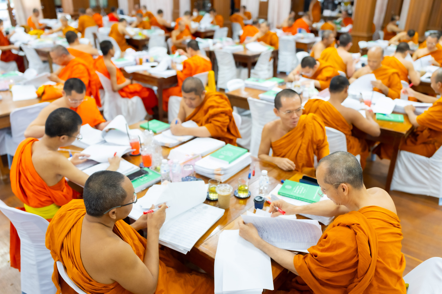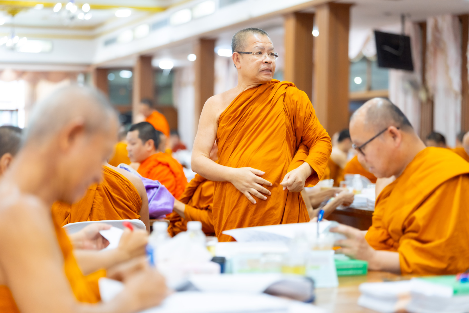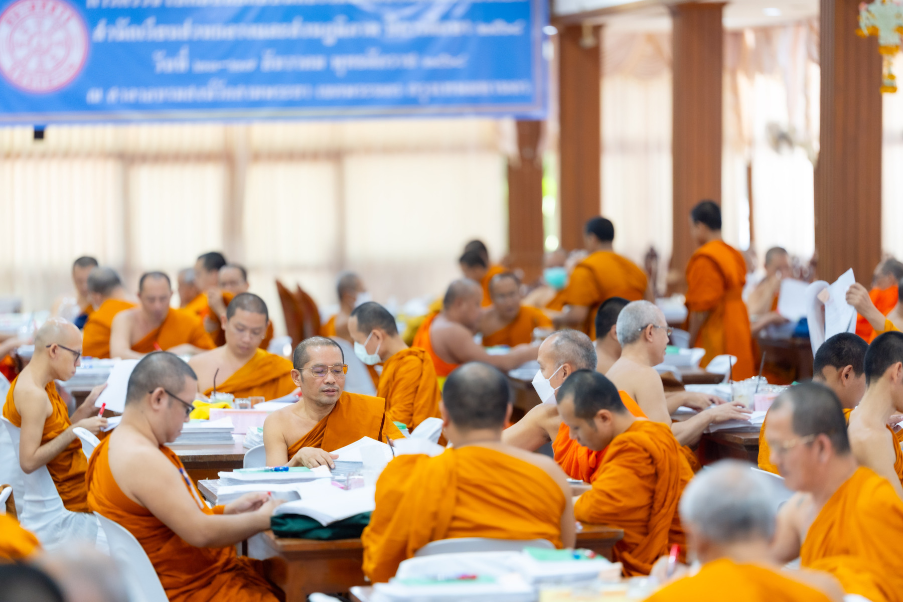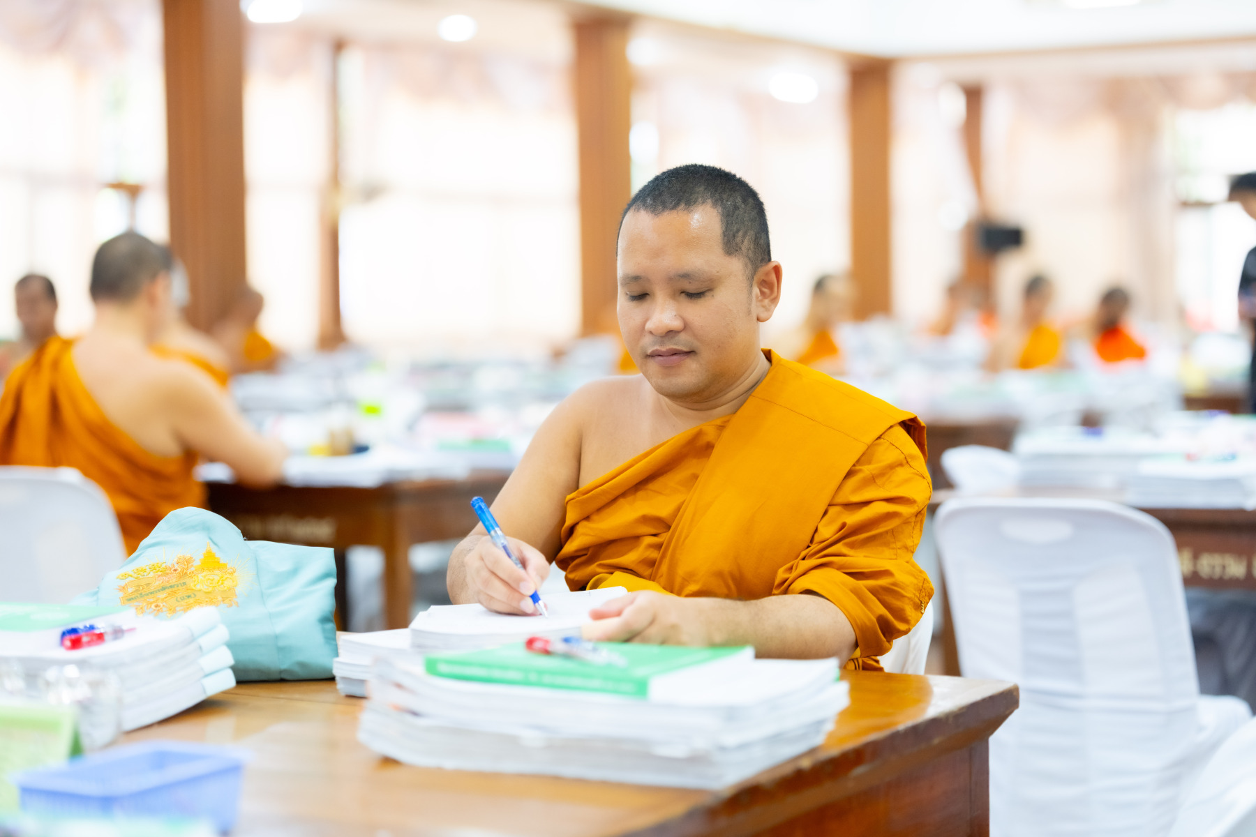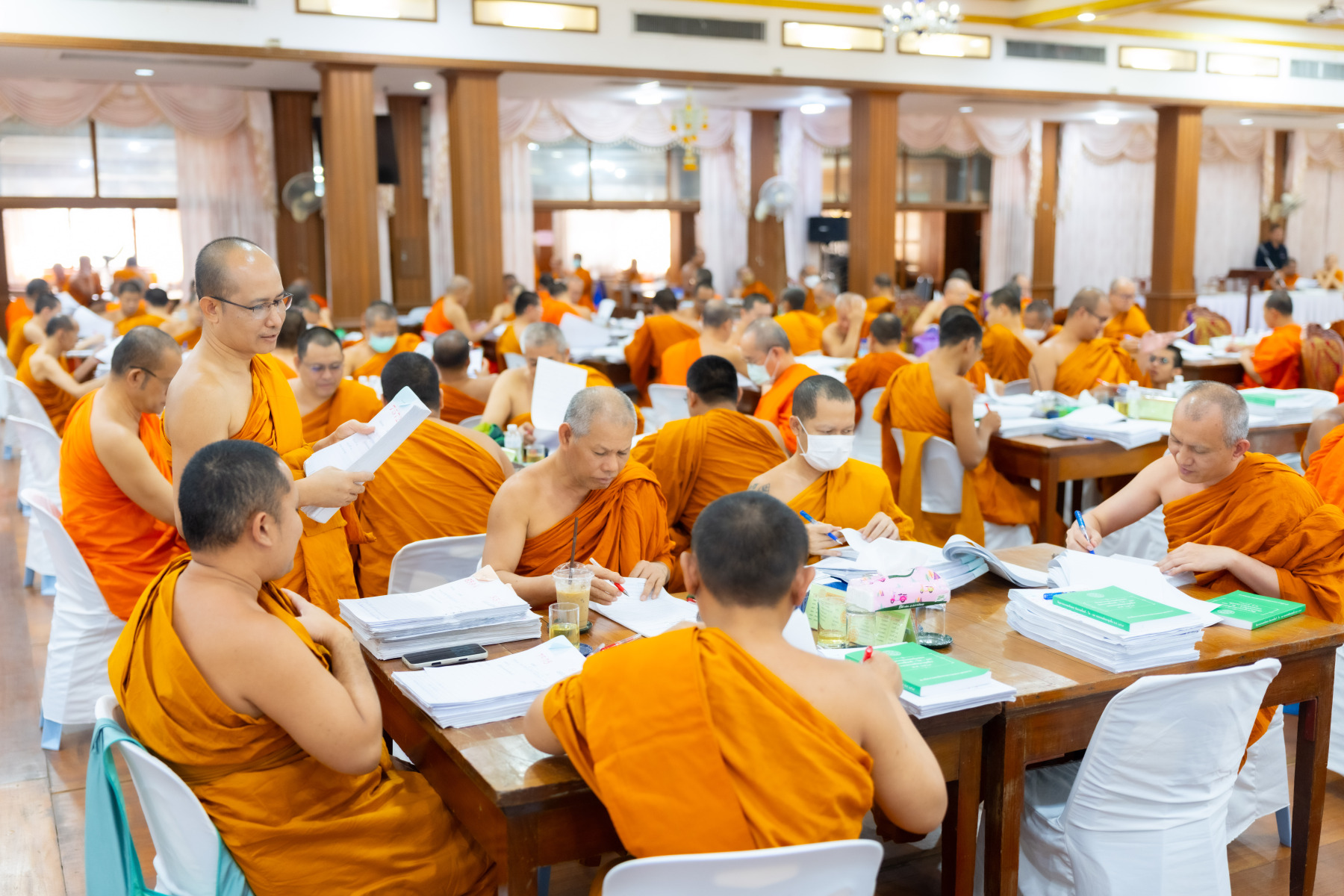 กรุงเทพมหานคร (๒๖ ธันวาคม ๒๕๖๘) – บรรยากาศการตรวจใบตอบข้อสอบธรรมสนามหลวงดำเนินไปอย่างเข้มข้นและเป็นระเบียบเรียบร้อย โดยในวันนี้ถือเป็นวันที่ ๔ ของการตรวจผลสอบนักธรรมและธรรมศึกษาชั้นเอก ประจำปีการศึกษา ๒๕๖๘ สำหรับส่วนภูมิภาค ซึ่งได้รับเมตตาจากคณะพระเถรานุเถระผู้บริหารระดับสูงของสำนักงานแม่กองธรรมสนามหลวง เดินทางมาตรวจเยี่ยมสนามตรวจเพื่อติดตามความเรียบร้อยและประทานกำลังใจแก่คณะกรรมการผู้ปฏิบัติหน้าที่