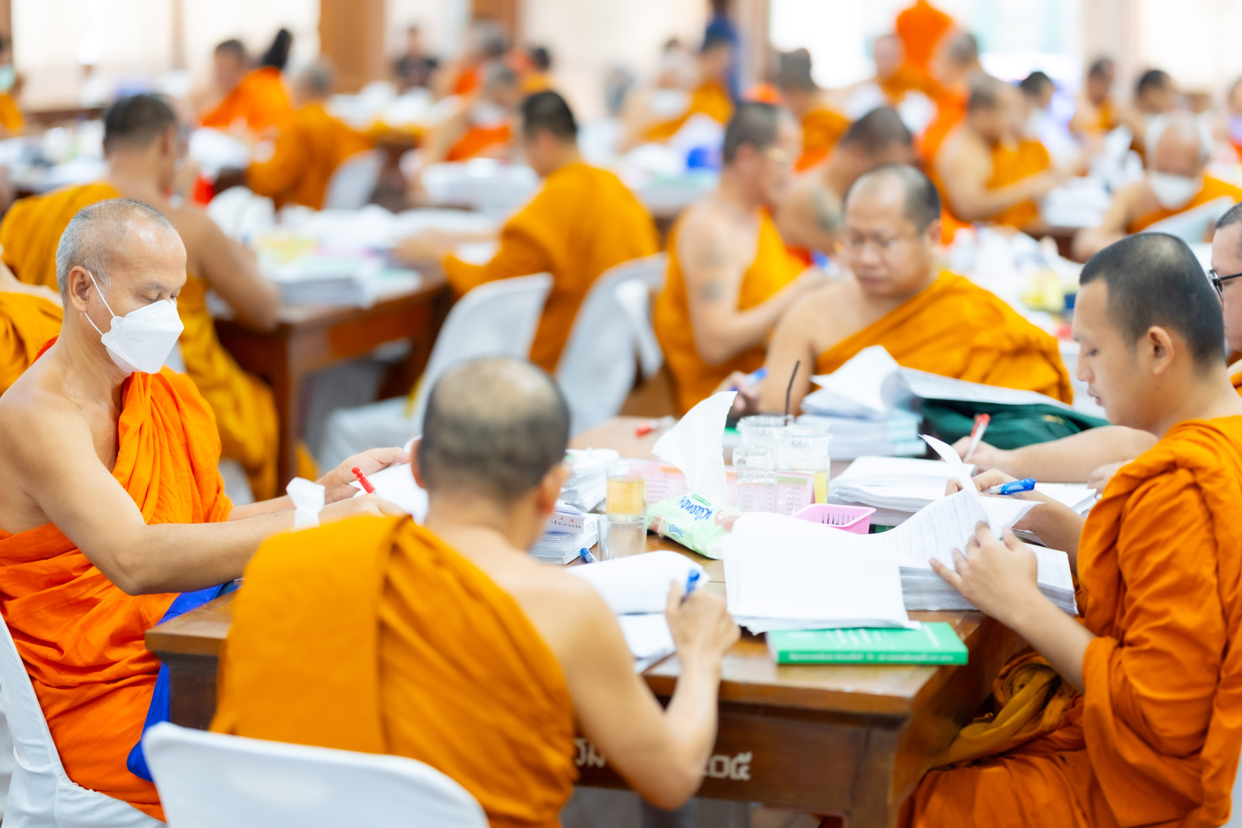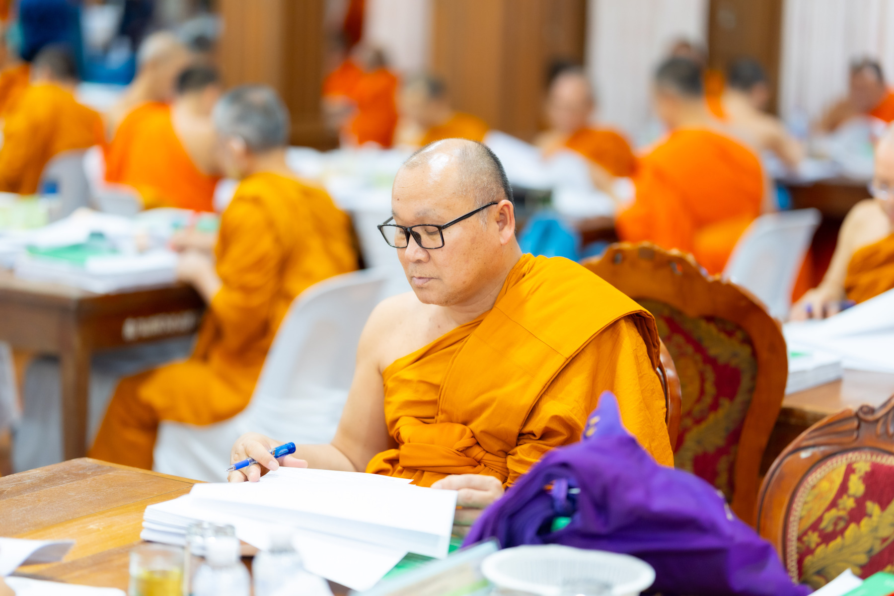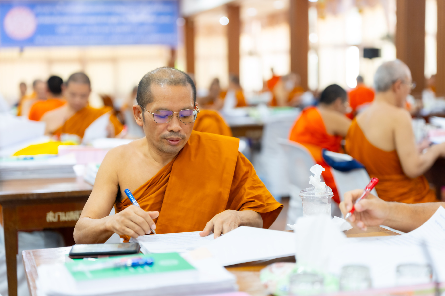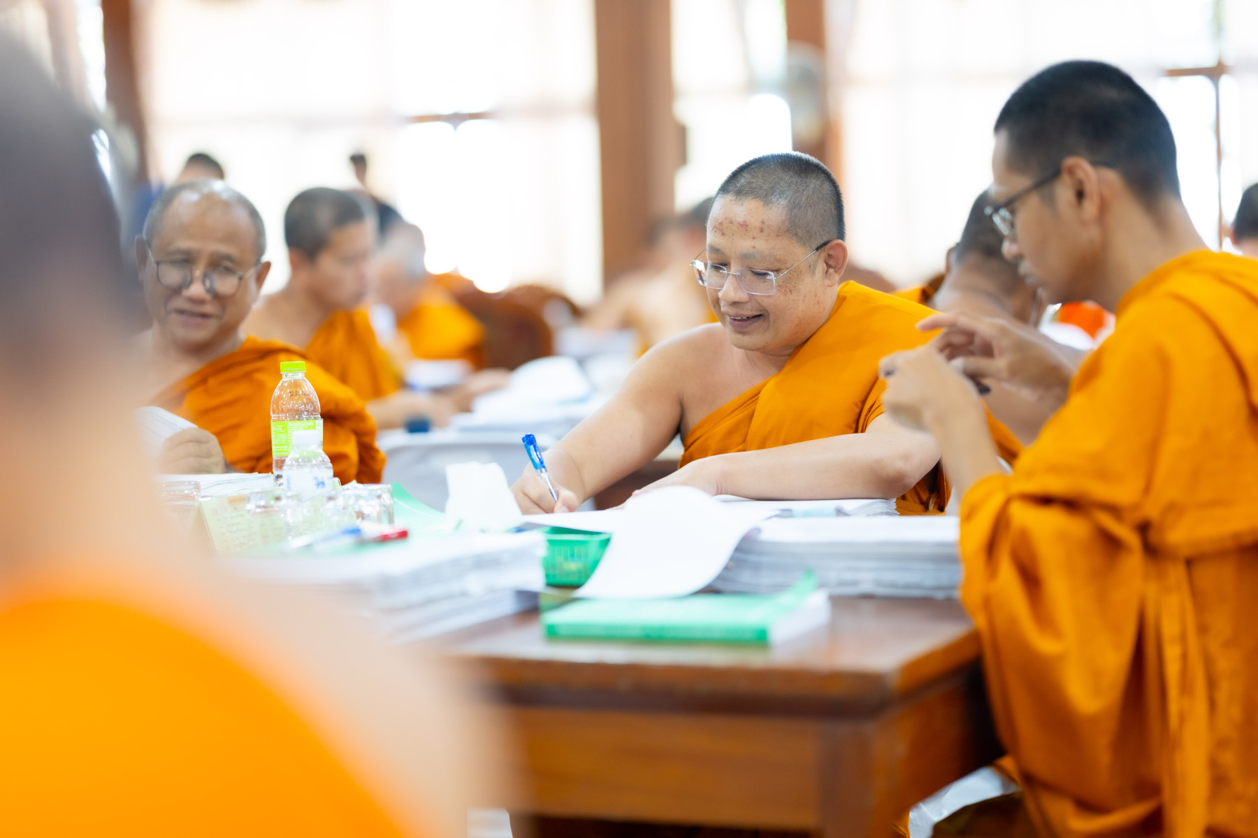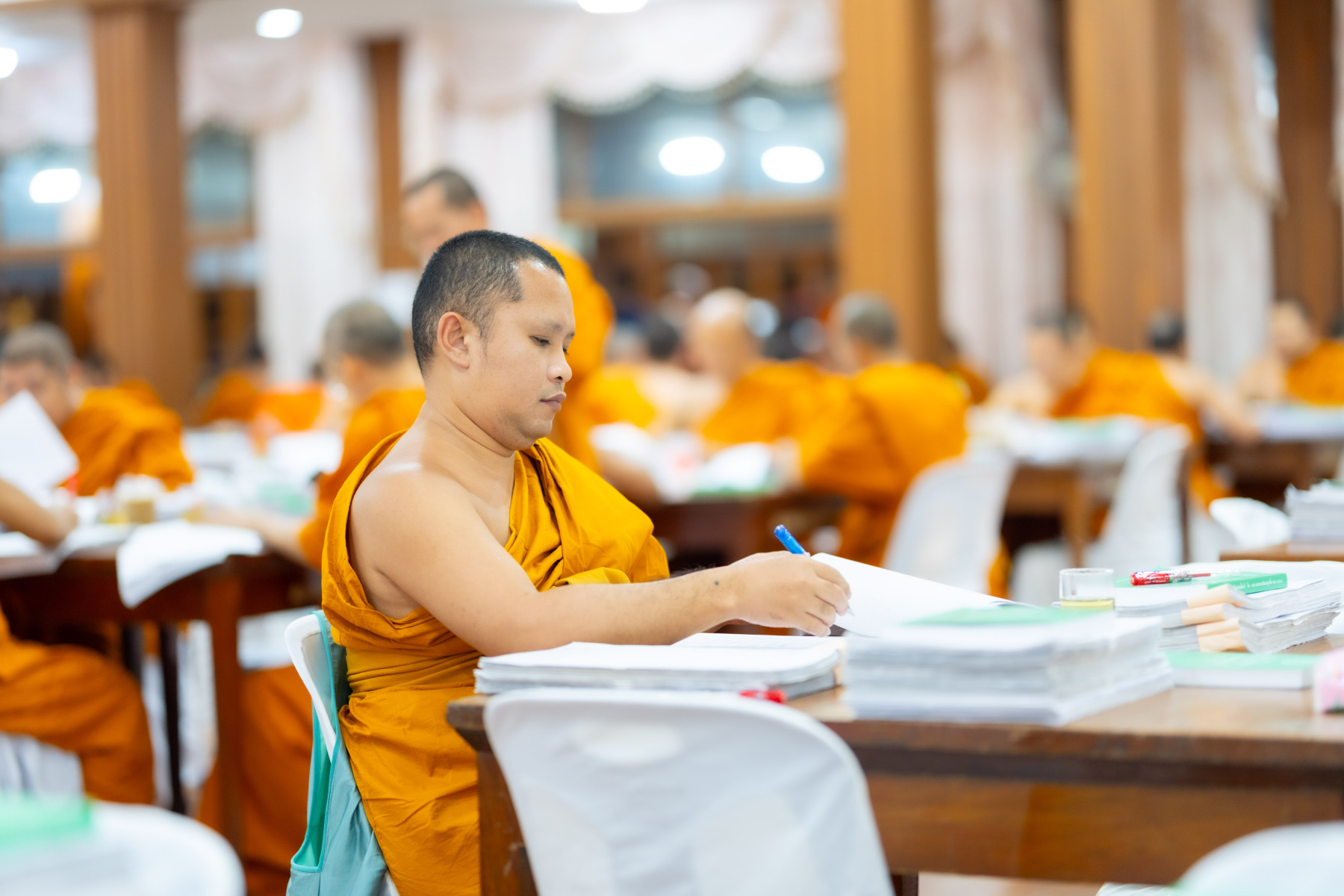 กรุงเทพมหานคร (๒๖ ธันวาคม ๒๕๖๘) – บรรยากาศการตรวจใบตอบข้อสอบธรรมสนามหลวงดำเนินไปอย่างเข้มข้นและเป็นระเบียบเรียบร้อย โดยในวันนี้ถือเป็นวันที่ ๔ ของการตรวจผลสอบนักธรรมและธรรมศึกษาชั้นเอก ประจำปีการศึกษา ๒๕๖๘ สำหรับส่วนภูมิภาค ซึ่งได้รับเมตตาจากคณะพระเถรานุเถระผู้บริหารระดับสูงของสำนักงานแม่กองธรรมสนามหลวง เดินทางมาตรวจเยี่ยมสนามตรวจเพื่อติดตามความเรียบร้อยและประทานกำลังใจแก่คณะกรรมการผู้ปฏิบัติหน้าที่