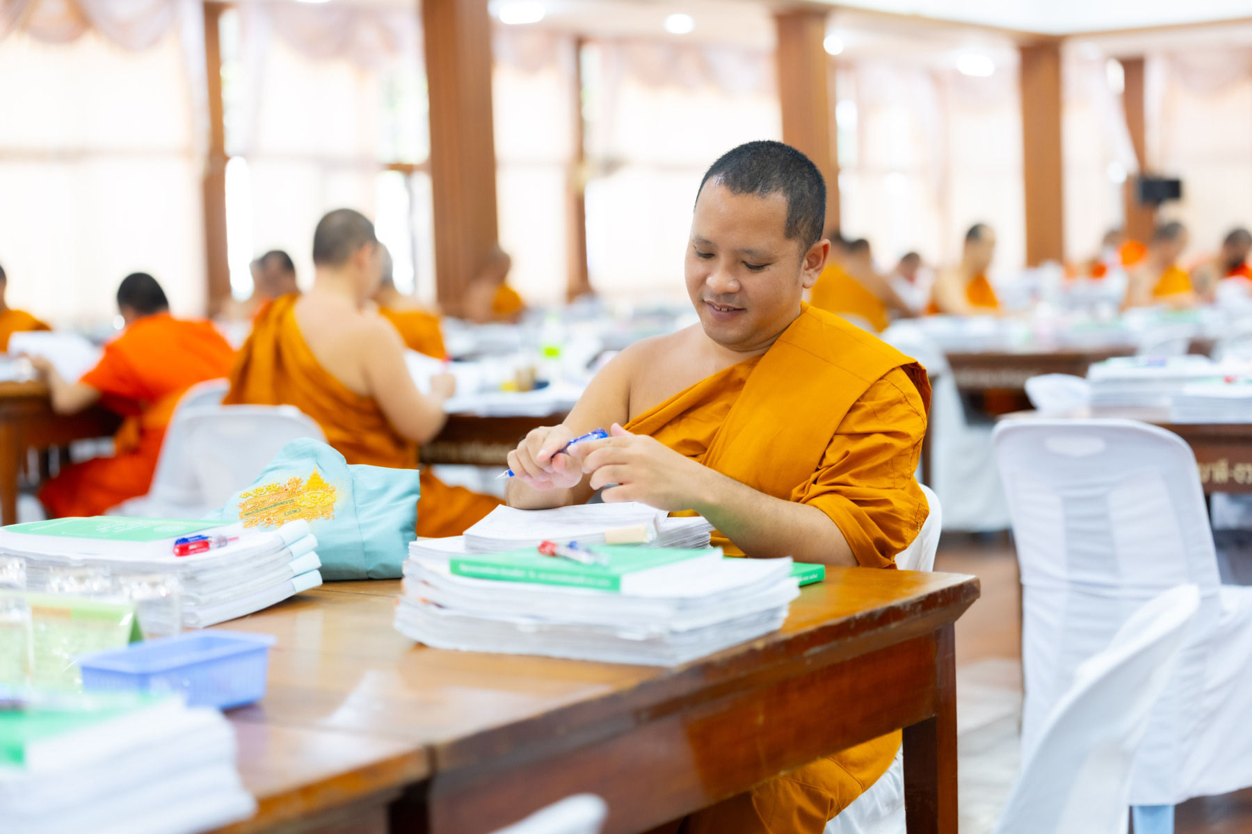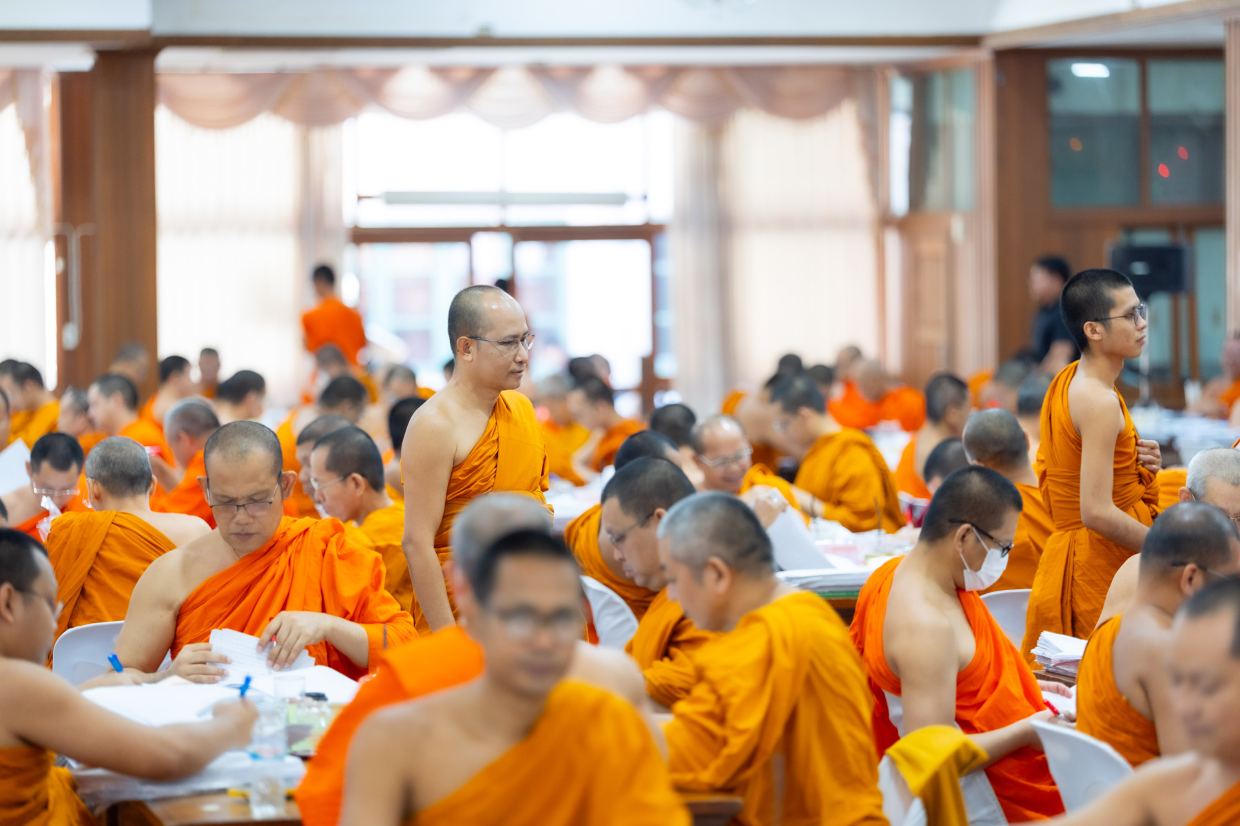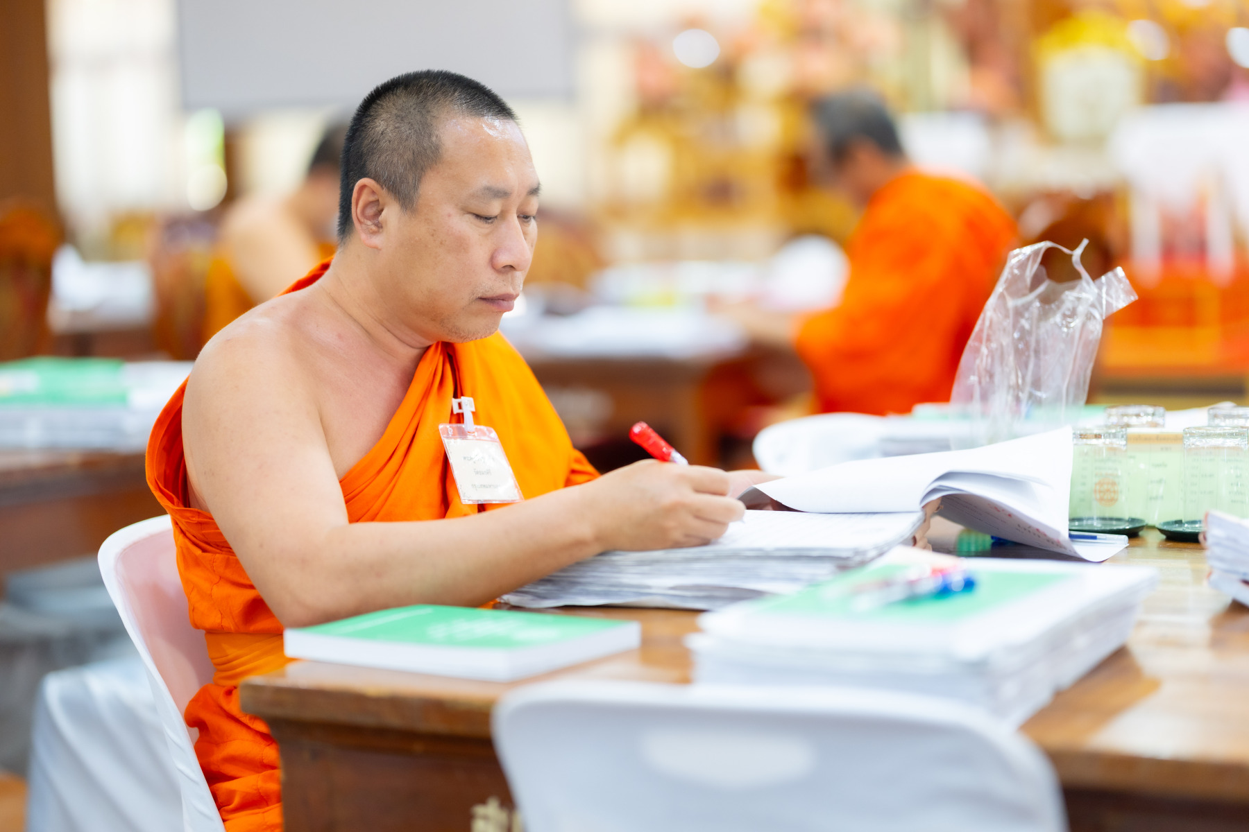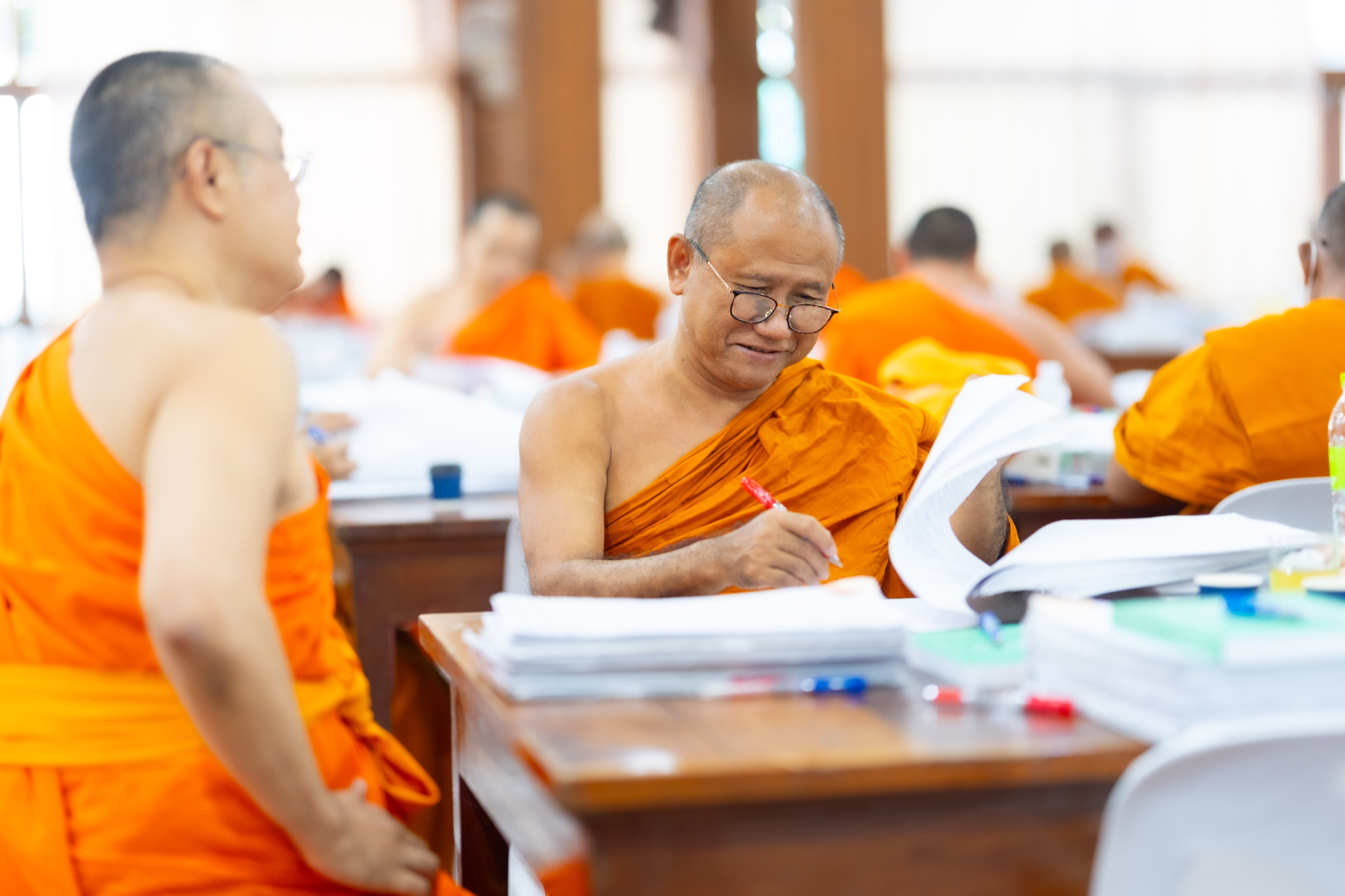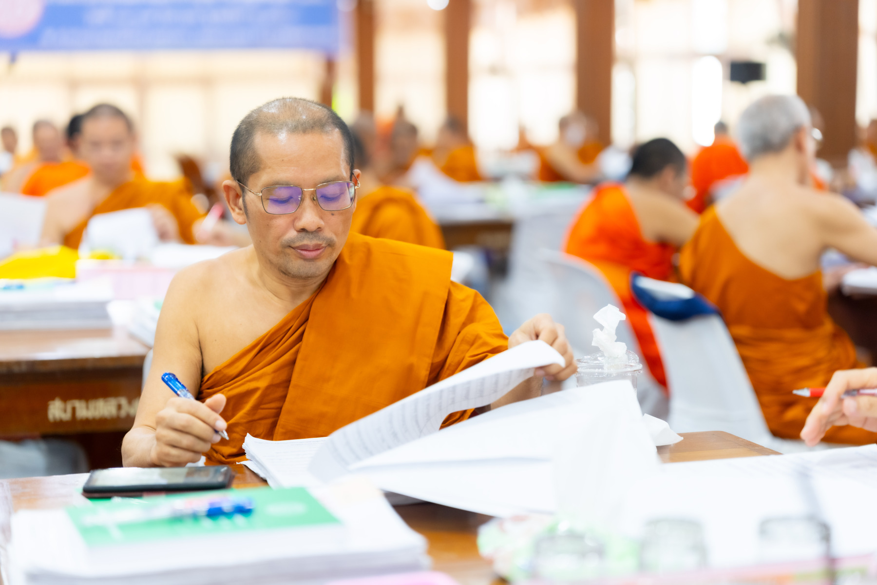 กรุงเทพมหานคร (๒๖ ธันวาคม ๒๕๖๘) – บรรยากาศการตรวจใบตอบข้อสอบธรรมสนามหลวงดำเนินไปอย่างเข้มข้นและเป็นระเบียบเรียบร้อย โดยในวันนี้ถือเป็นวันที่ ๔ ของการตรวจผลสอบนักธรรมและธรรมศึกษาชั้นเอก ประจำปีการศึกษา ๒๕๖๘ สำหรับส่วนภูมิภาค ซึ่งได้รับเมตตาจากคณะพระเถรานุเถระผู้บริหารระดับสูงของสำนักงานแม่กองธรรมสนามหลวง เดินทางมาตรวจเยี่ยมสนามตรวจเพื่อติดตามความเรียบร้อยและประทานกำลังใจแก่คณะกรรมการผู้ปฏิบัติหน้าที่