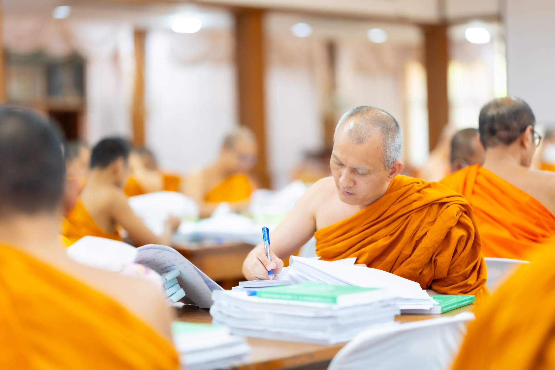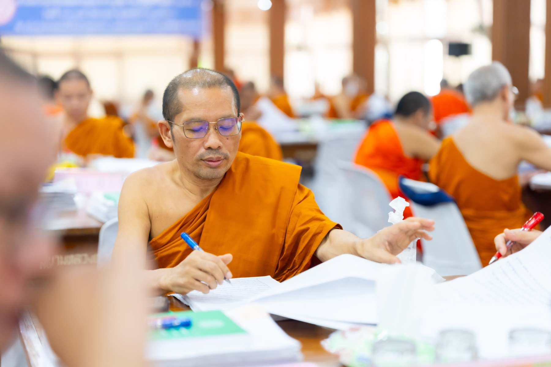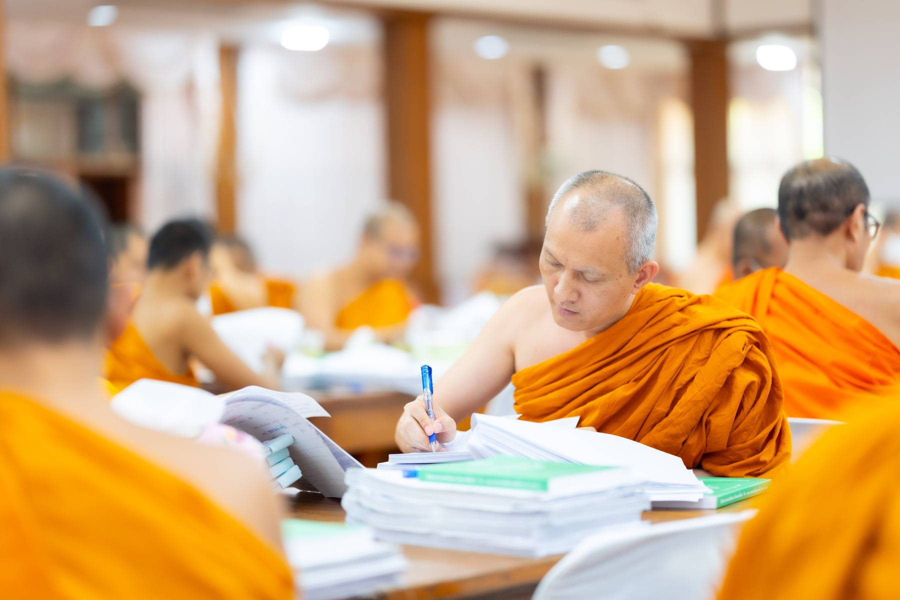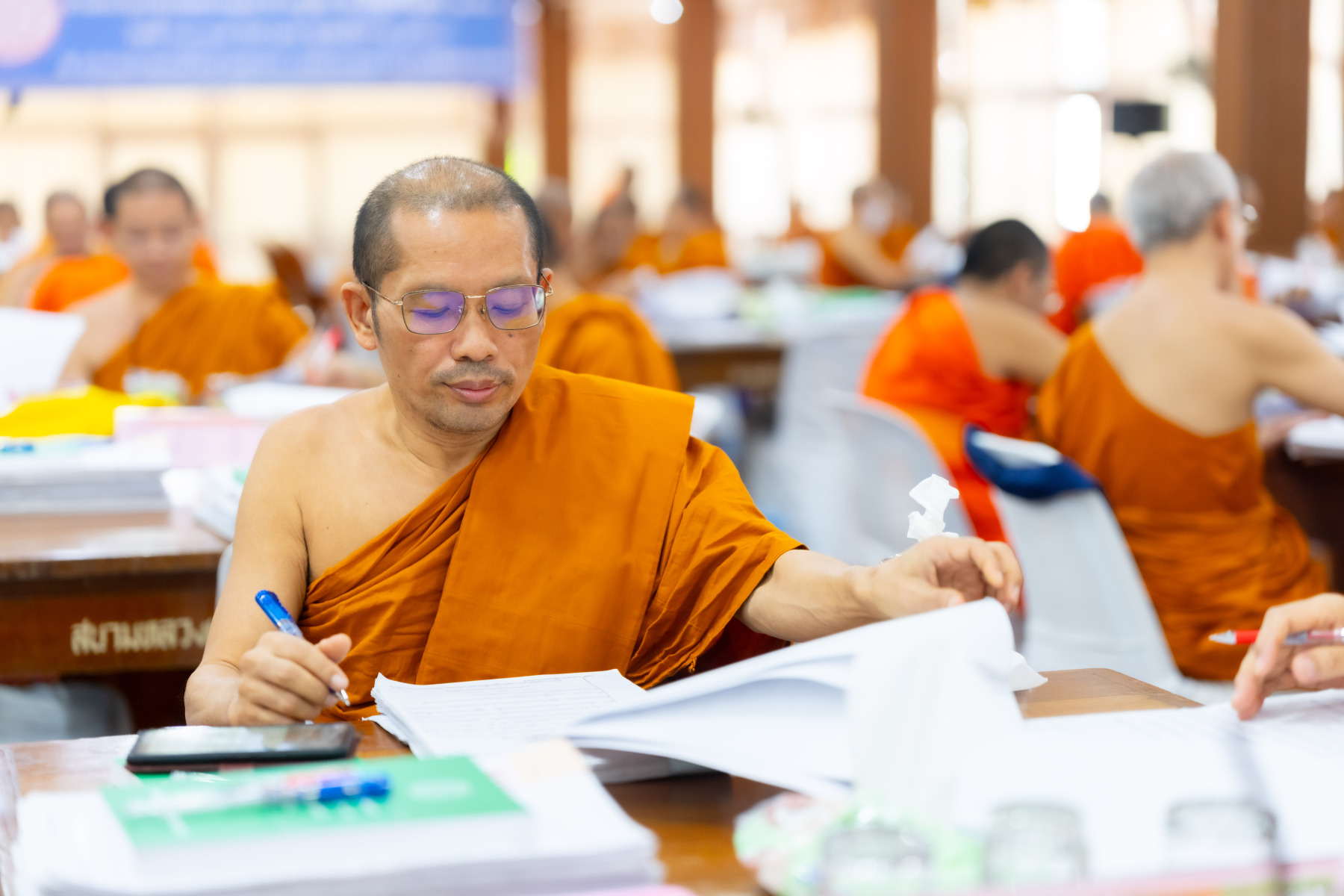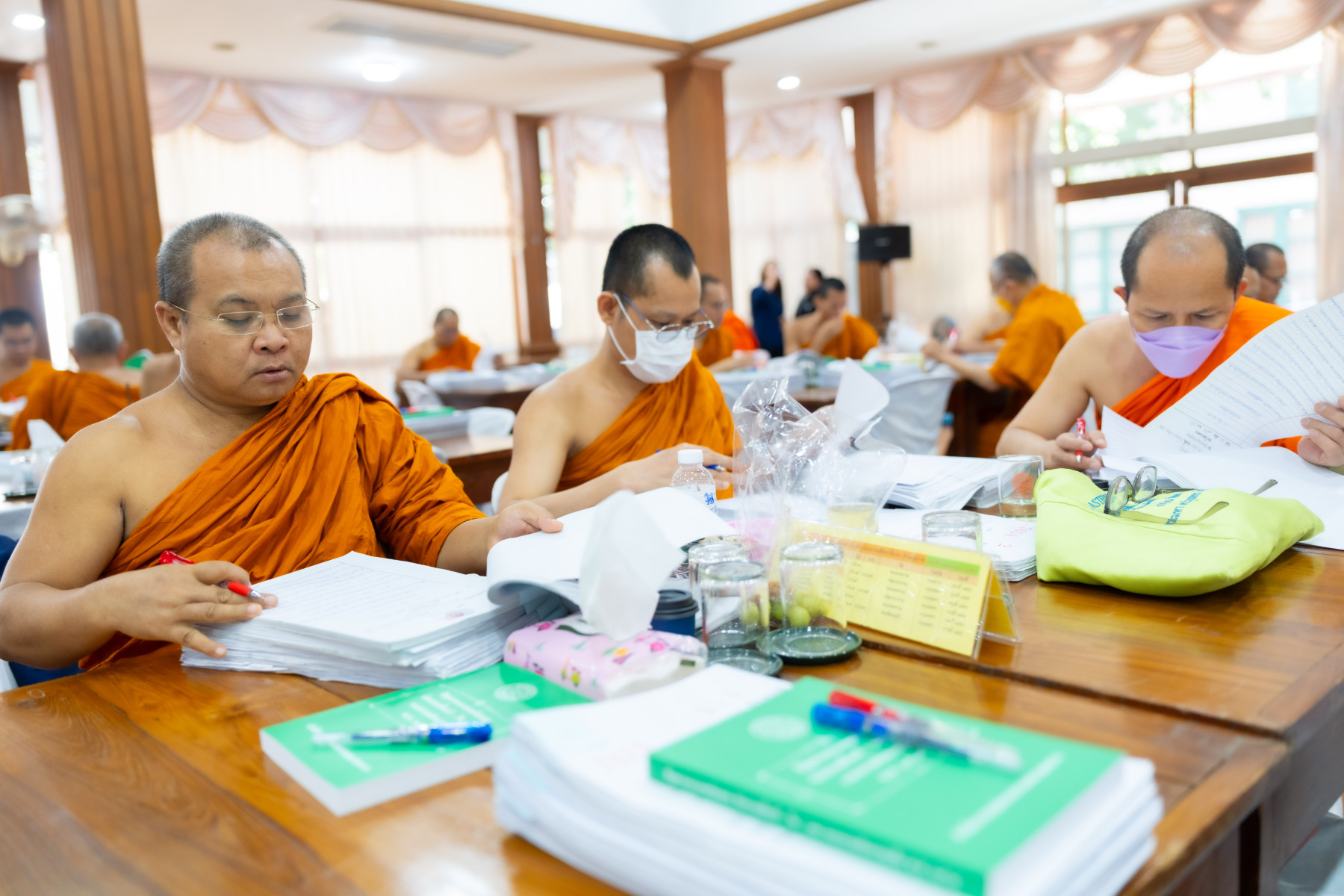 กรุงเทพมหานคร (๒๖ ธันวาคม ๒๕๖๘) – บรรยากาศการตรวจใบตอบข้อสอบธรรมสนามหลวงดำเนินไปอย่างเข้มข้นและเป็นระเบียบเรียบร้อย โดยในวันนี้ถือเป็นวันที่ ๔ ของการตรวจผลสอบนักธรรมและธรรมศึกษาชั้นเอก ประจำปีการศึกษา ๒๕๖๘ สำหรับส่วนภูมิภาค ซึ่งได้รับเมตตาจากคณะพระเถรานุเถระผู้บริหารระดับสูงของสำนักงานแม่กองธรรมสนามหลวง เดินทางมาตรวจเยี่ยมสนามตรวจเพื่อติดตามความเรียบร้อยและประทานกำลังใจแก่คณะกรรมการผู้ปฏิบัติหน้าที่