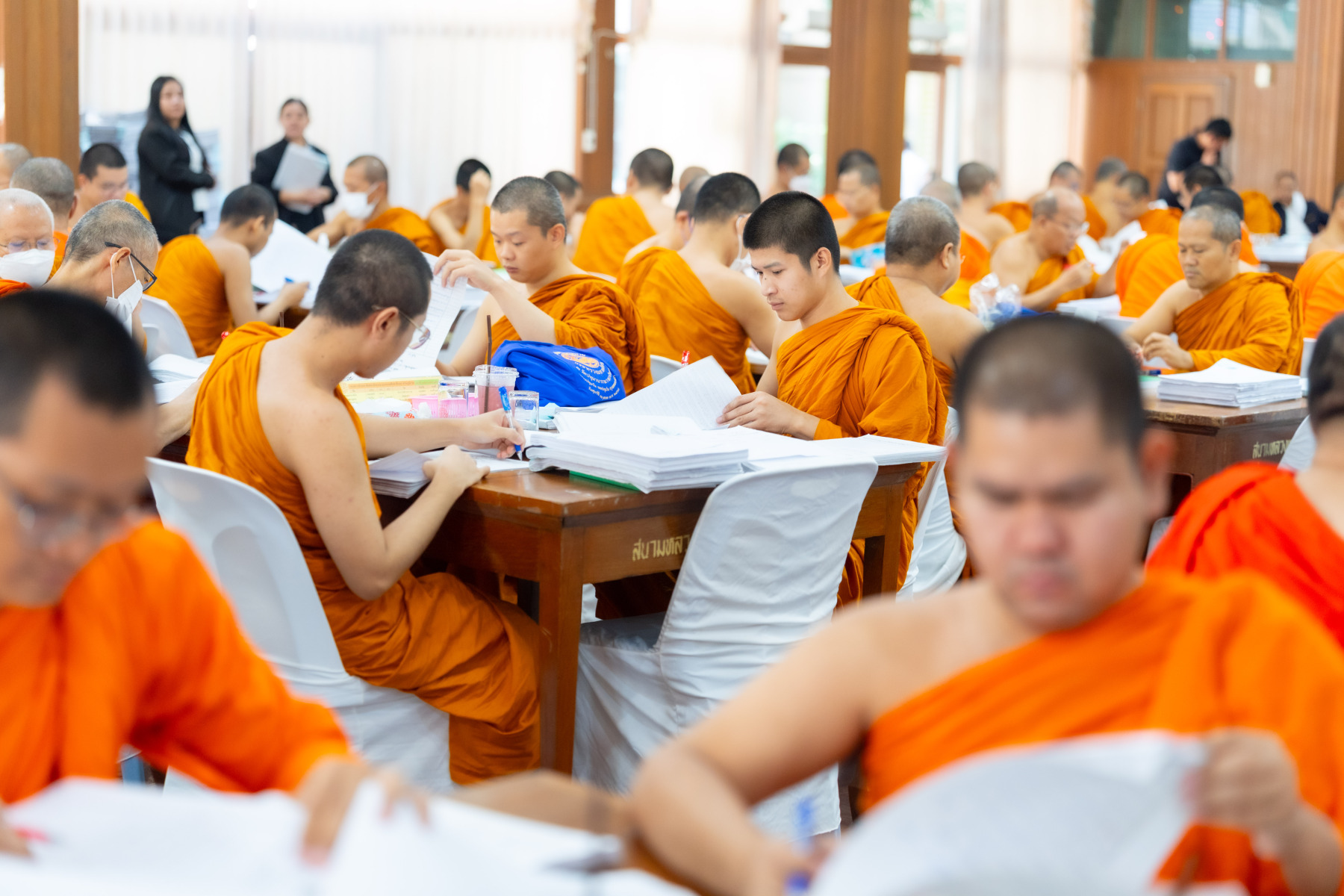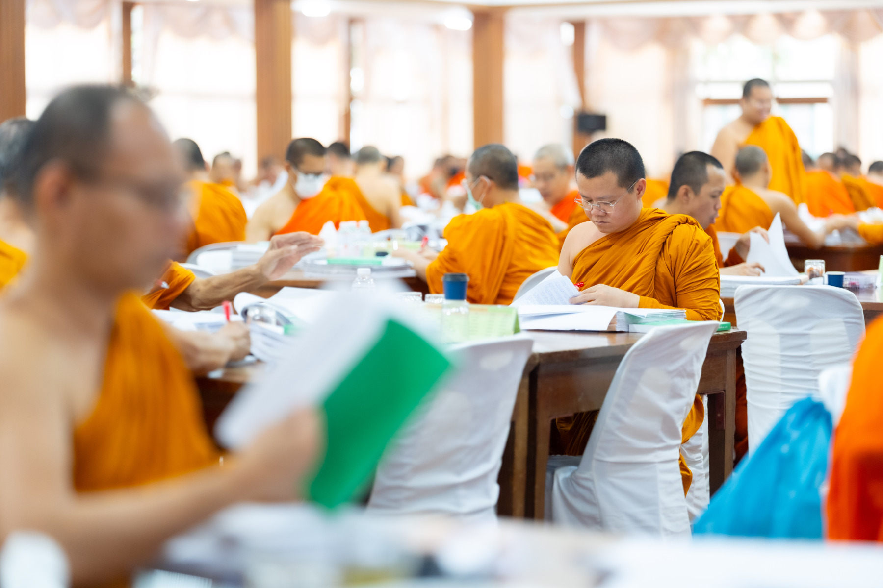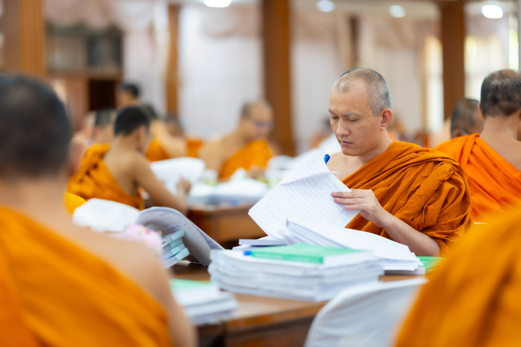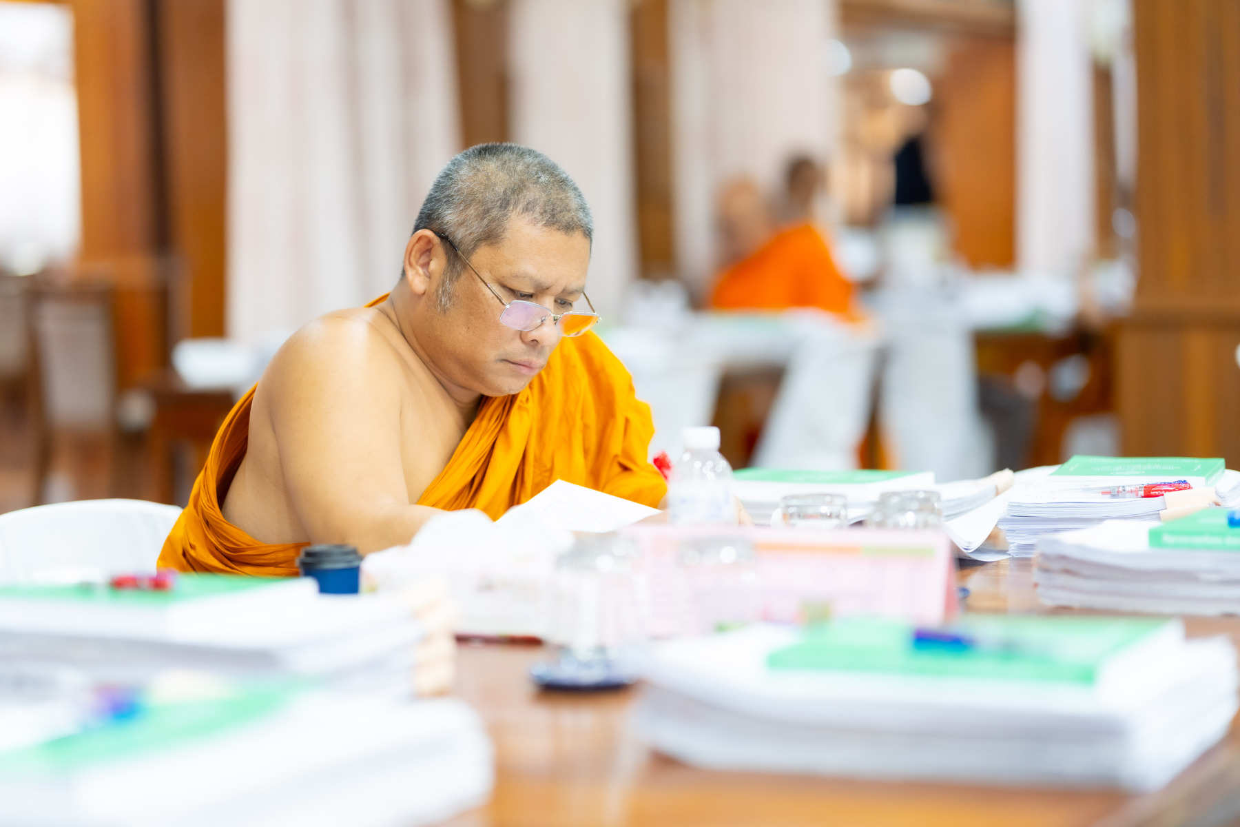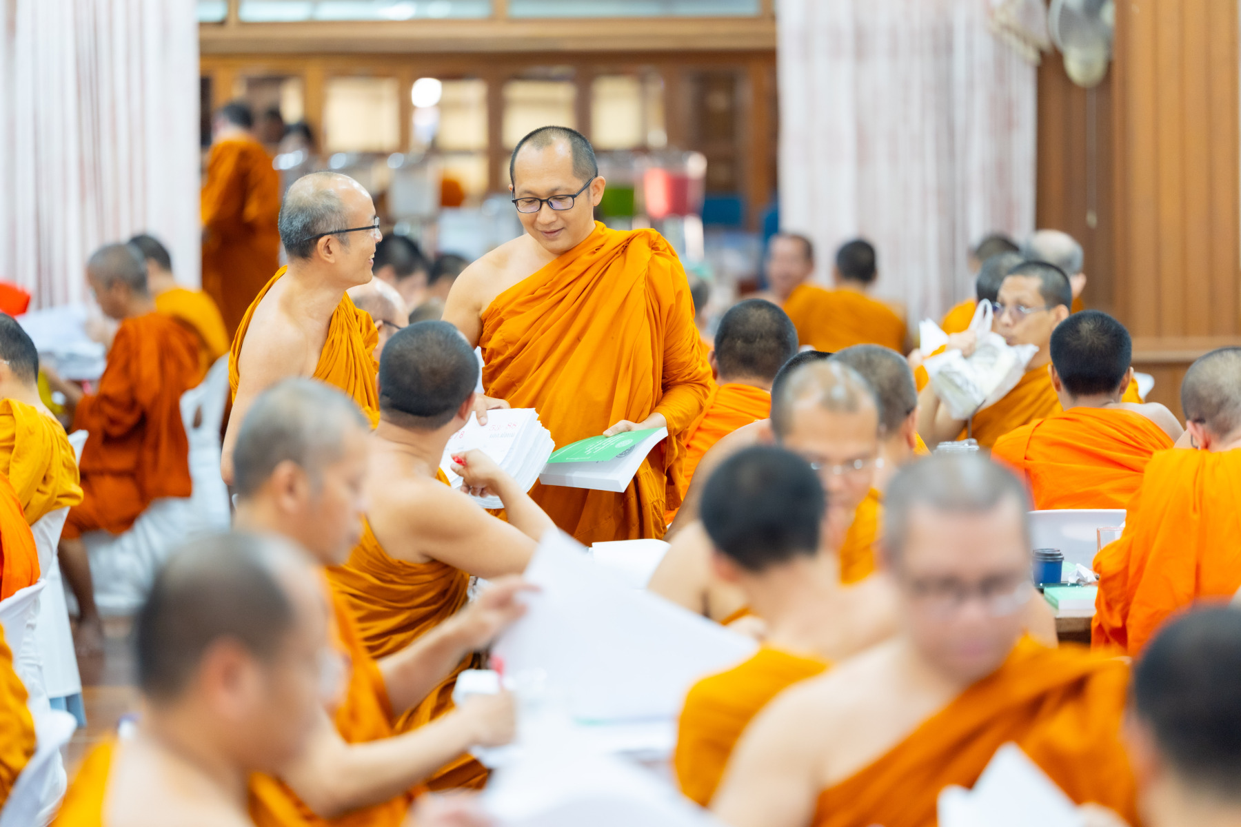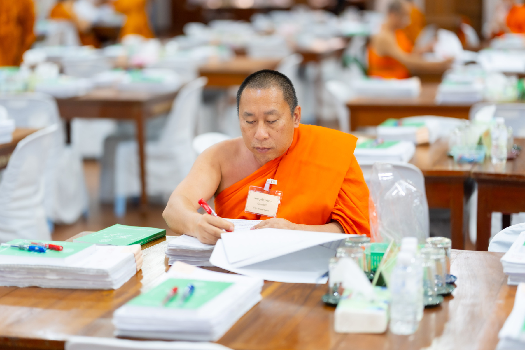กรุงเทพมหานคร (๒๖ ธันวาคม ๒๕๖๘) – บรรยากาศการตรวจใบตอบข้อสอบธรรมสนามหลวงดำเนินไปอย่างเข้มข้นและเป็นระเบียบเรียบร้อย โดยในวันนี้ถือเป็นวันที่ ๔ ของการตรวจผลสอบนักธรรมและธรรมศึกษาชั้นเอก ประจำปีการศึกษา ๒๕๖๘ สำหรับส่วนภูมิภาค ซึ่งได้รับเมตตาจากคณะพระเถรานุเถระผู้บริหารระดับสูงของสำนักงานแม่กองธรรมสนามหลวง เดินทางมาตรวจเยี่ยมสนามตรวจเพื่อติดตามความเรียบร้อยและประทานกำลังใจแก่คณะกรรมการผู้ปฏิบัติหน้าที่