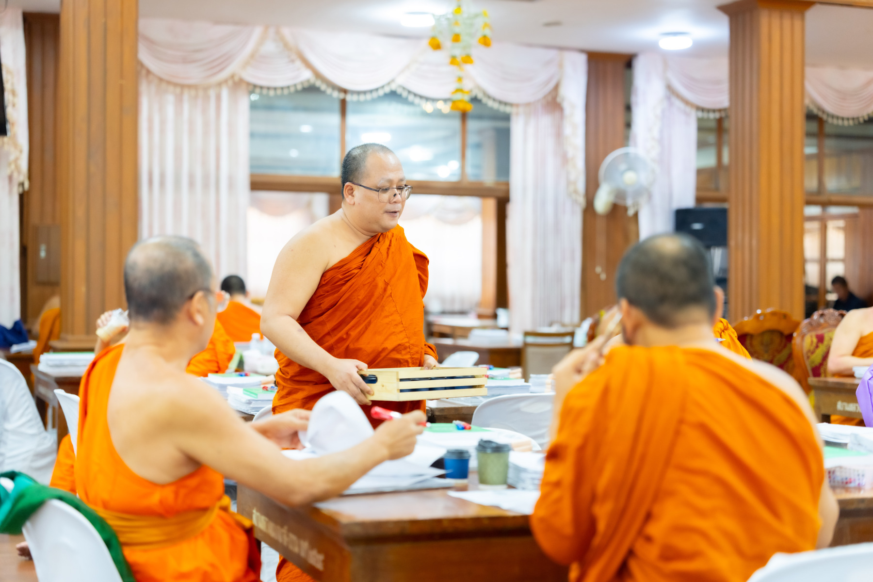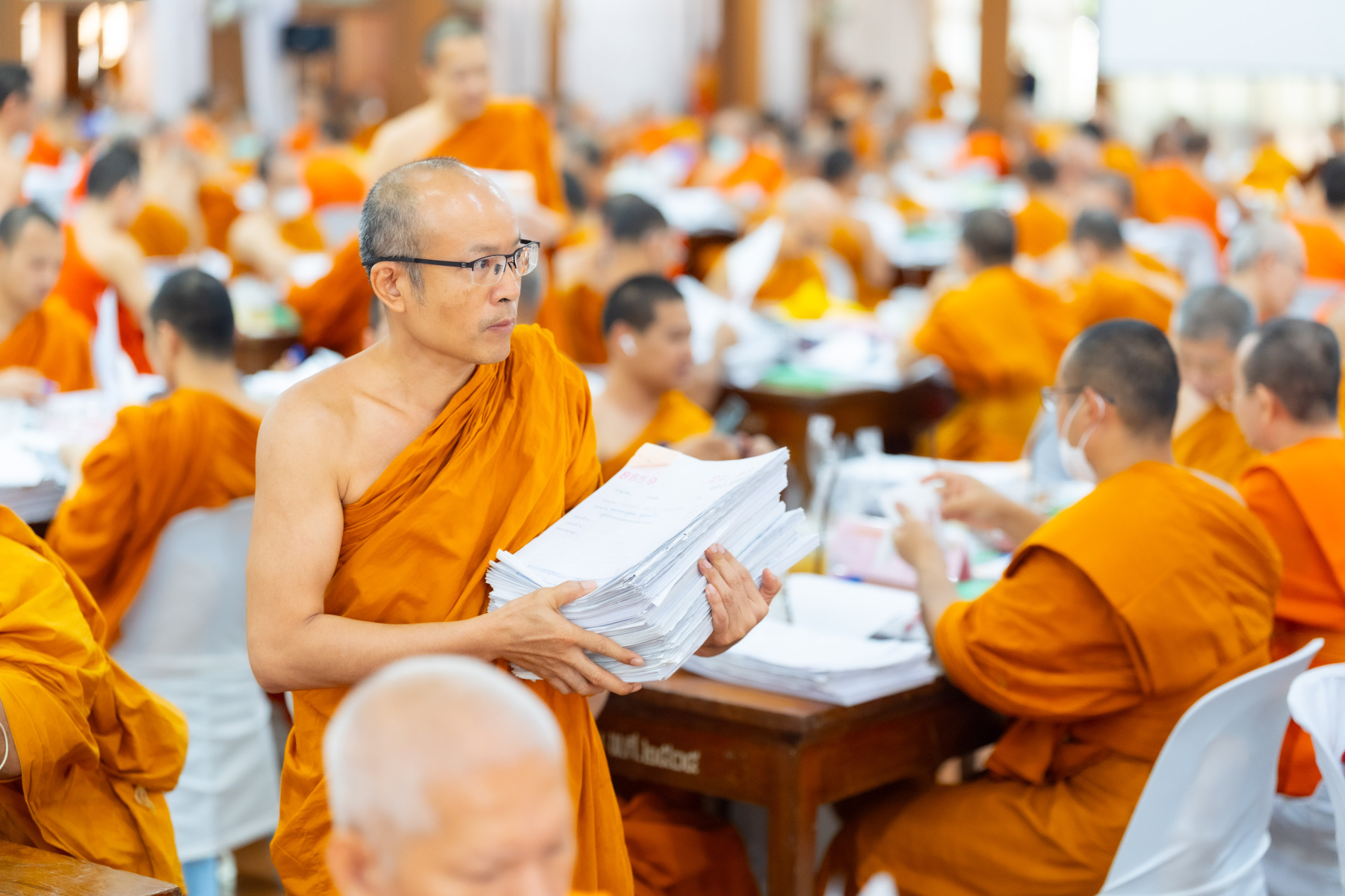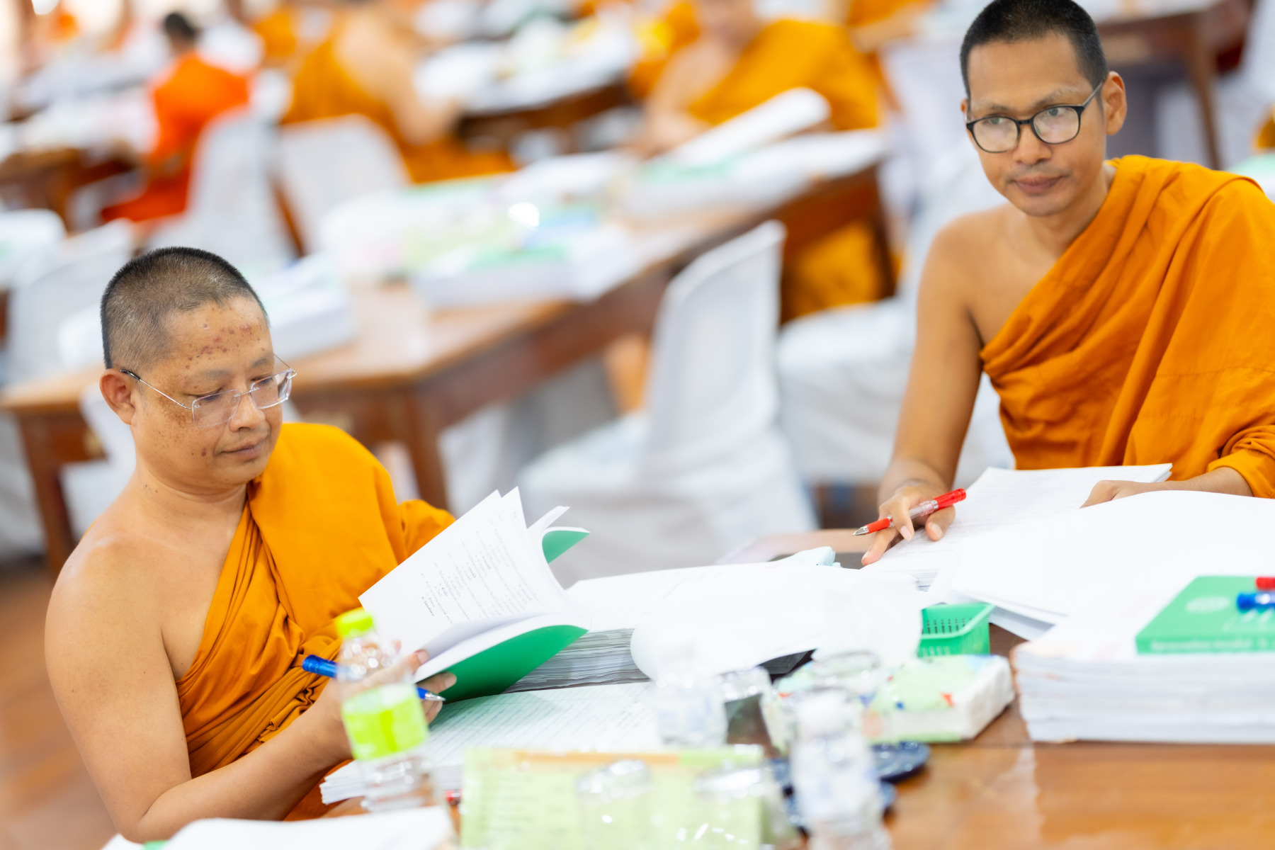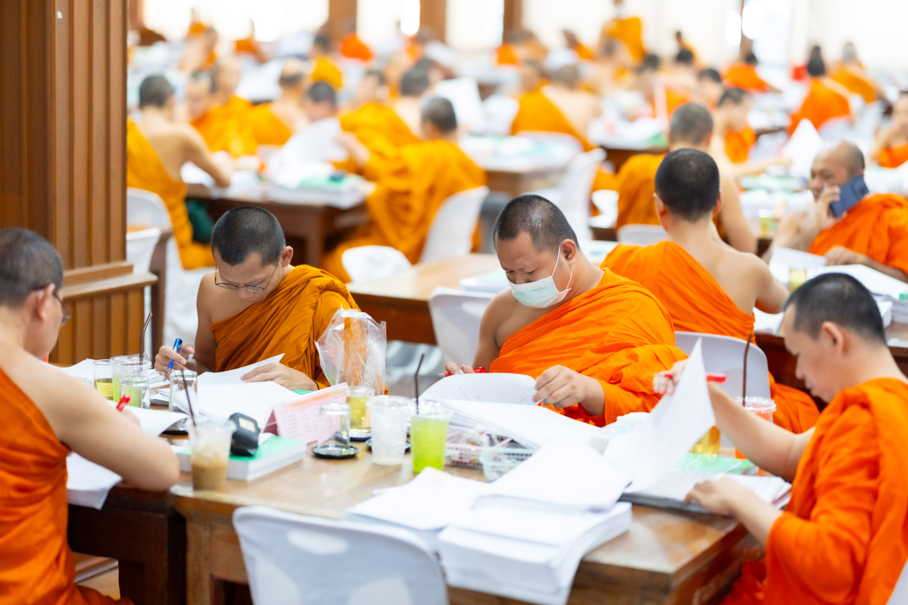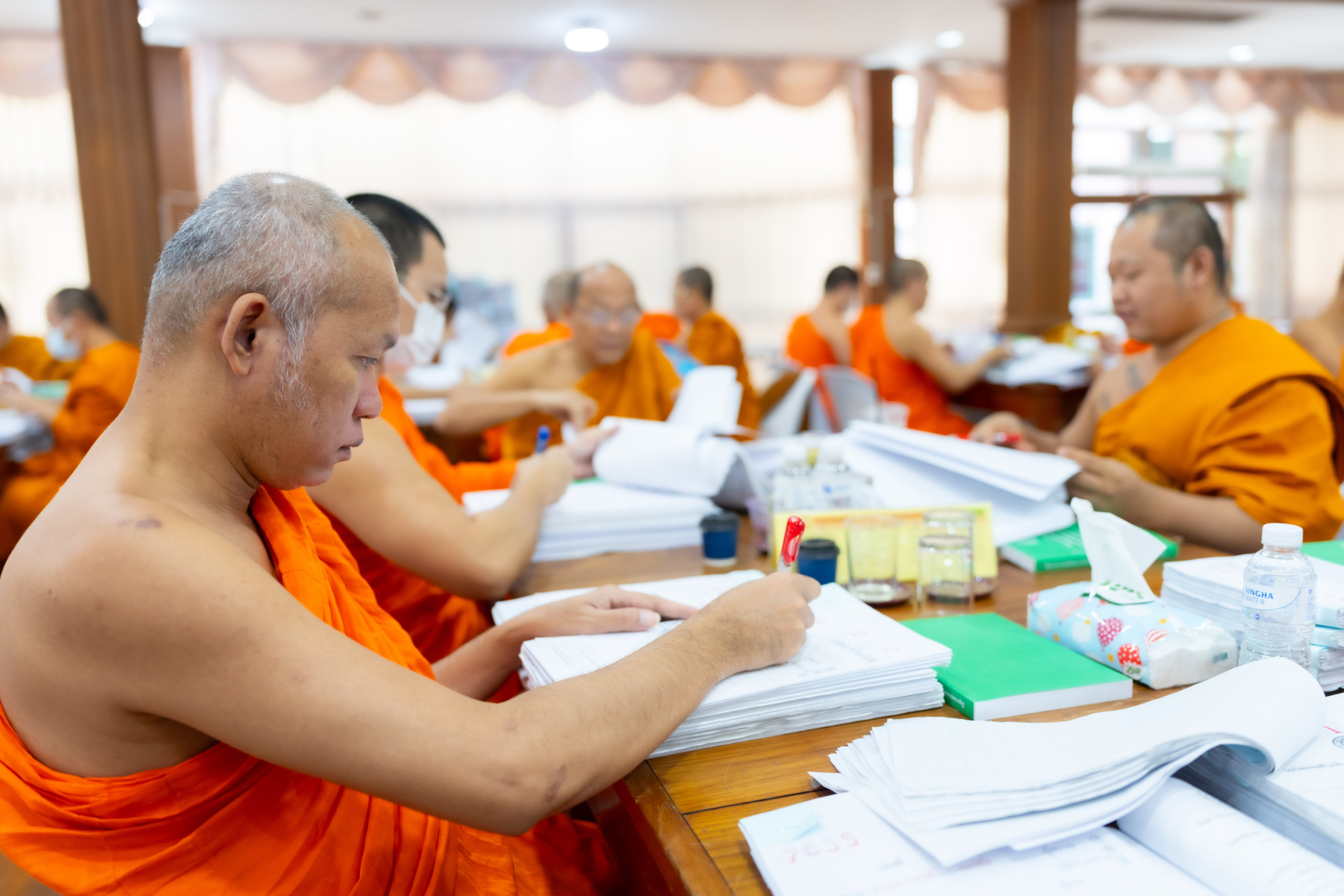 กรุงเทพมหานคร (๒๖ ธันวาคม ๒๕๖๘) – บรรยากาศการตรวจใบตอบข้อสอบธรรมสนามหลวงดำเนินไปอย่างเข้มข้นและเป็นระเบียบเรียบร้อย โดยในวันนี้ถือเป็นวันที่ ๔ ของการตรวจผลสอบนักธรรมและธรรมศึกษาชั้นเอก ประจำปีการศึกษา ๒๕๖๘ สำหรับส่วนภูมิภาค ซึ่งได้รับเมตตาจากคณะพระเถรานุเถระผู้บริหารระดับสูงของสำนักงานแม่กองธรรมสนามหลวง เดินทางมาตรวจเยี่ยมสนามตรวจเพื่อติดตามความเรียบร้อยและประทานกำลังใจแก่คณะกรรมการผู้ปฏิบัติหน้าที่