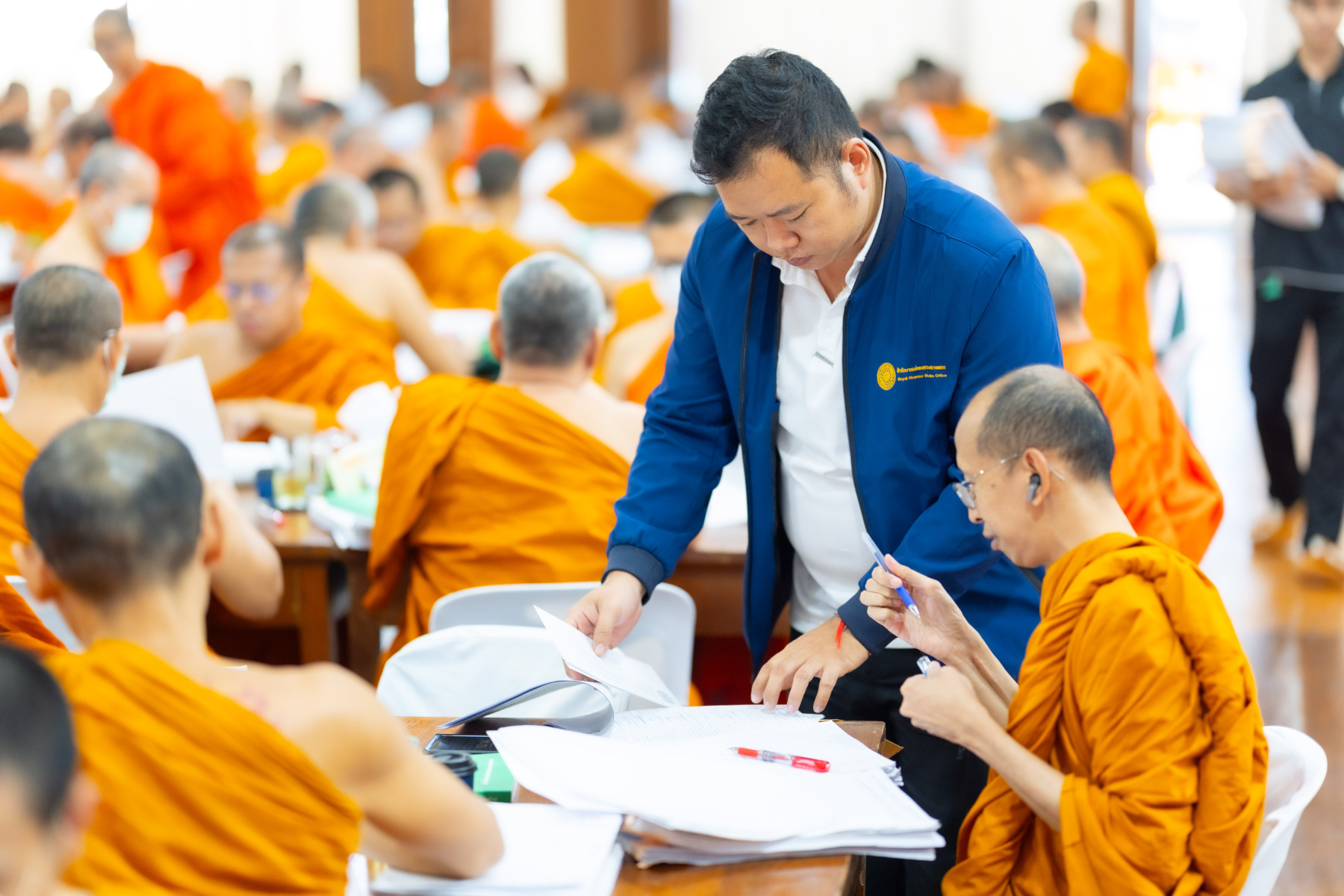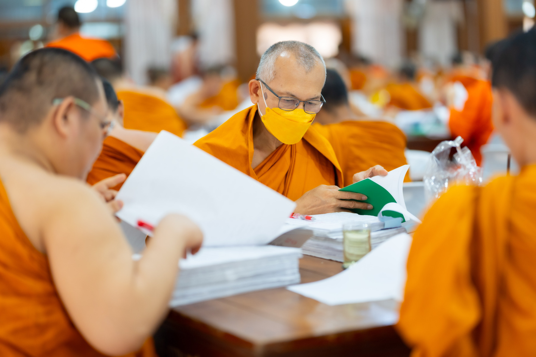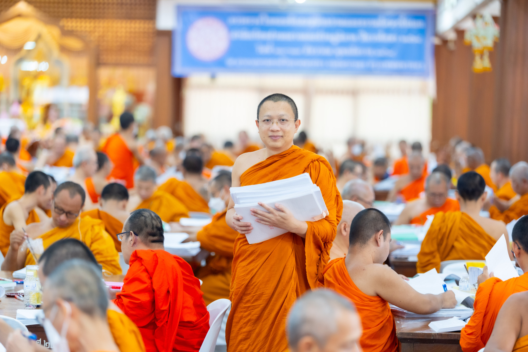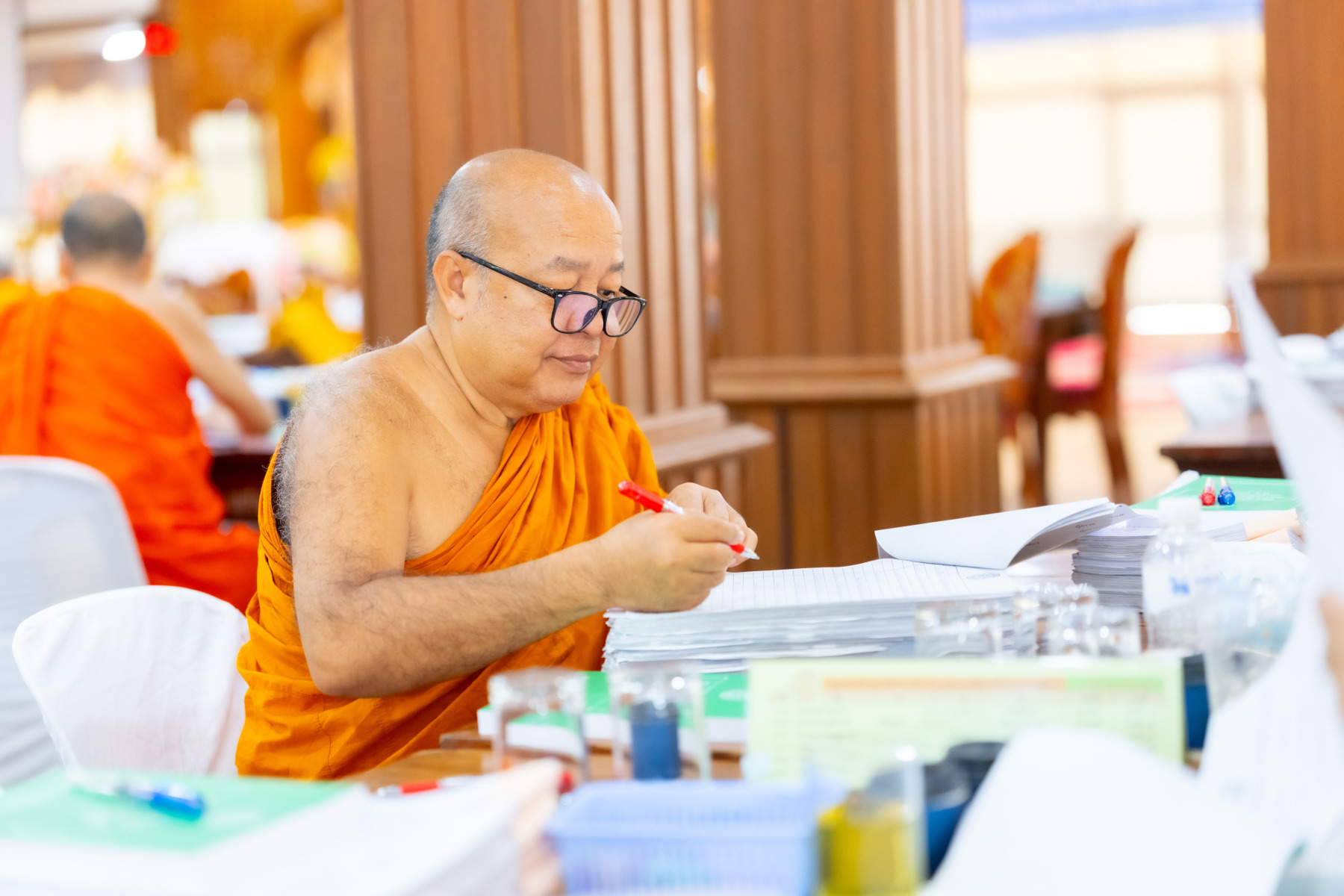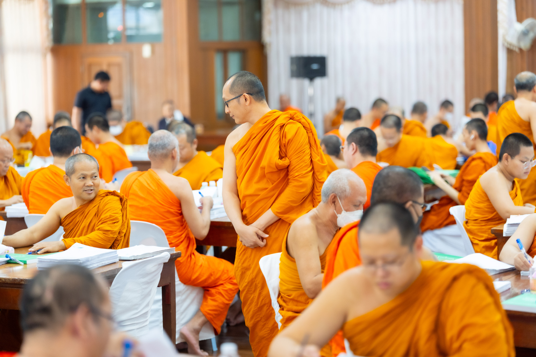 กรุงเทพมหานคร (๒๖ ธันวาคม ๒๕๖๘) – บรรยากาศการตรวจใบตอบข้อสอบธรรมสนามหลวงดำเนินไปอย่างเข้มข้นและเป็นระเบียบเรียบร้อย โดยในวันนี้ถือเป็นวันที่ ๔ ของการตรวจผลสอบนักธรรมและธรรมศึกษาชั้นเอก ประจำปีการศึกษา ๒๕๖๘ สำหรับส่วนภูมิภาค ซึ่งได้รับเมตตาจากคณะพระเถรานุเถระผู้บริหารระดับสูงของสำนักงานแม่กองธรรมสนามหลวง เดินทางมาตรวจเยี่ยมสนามตรวจเพื่อติดตามความเรียบร้อยและประทานกำลังใจแก่คณะกรรมการผู้ปฏิบัติหน้าที่