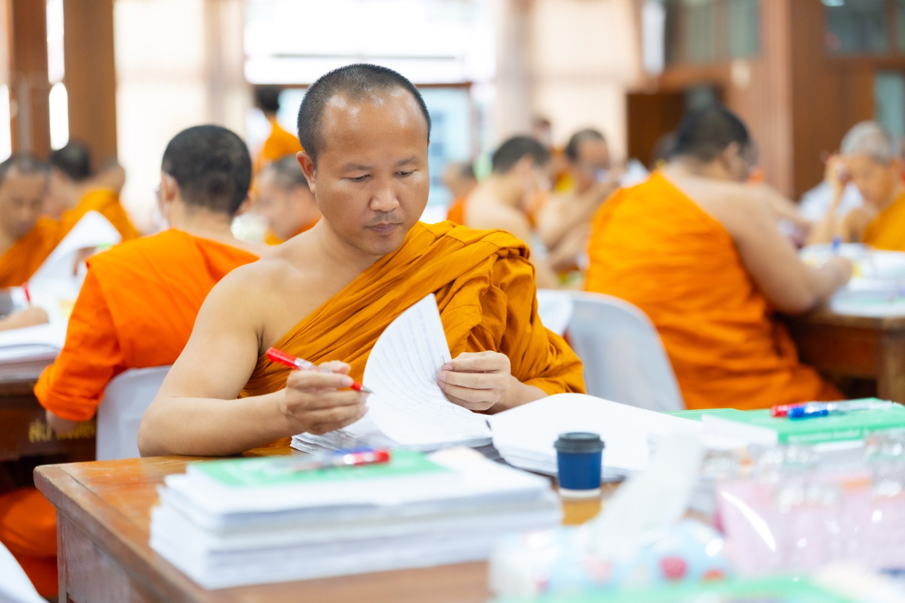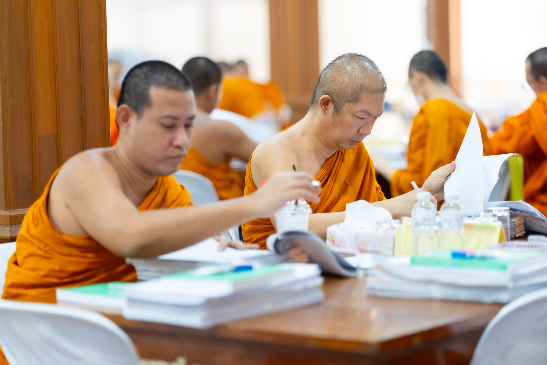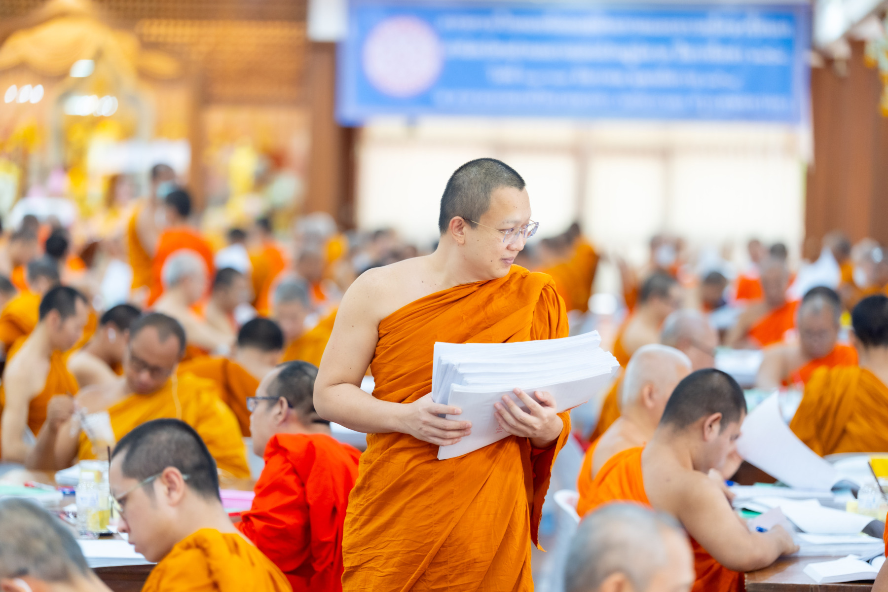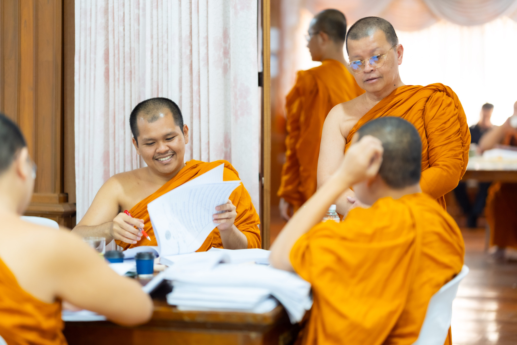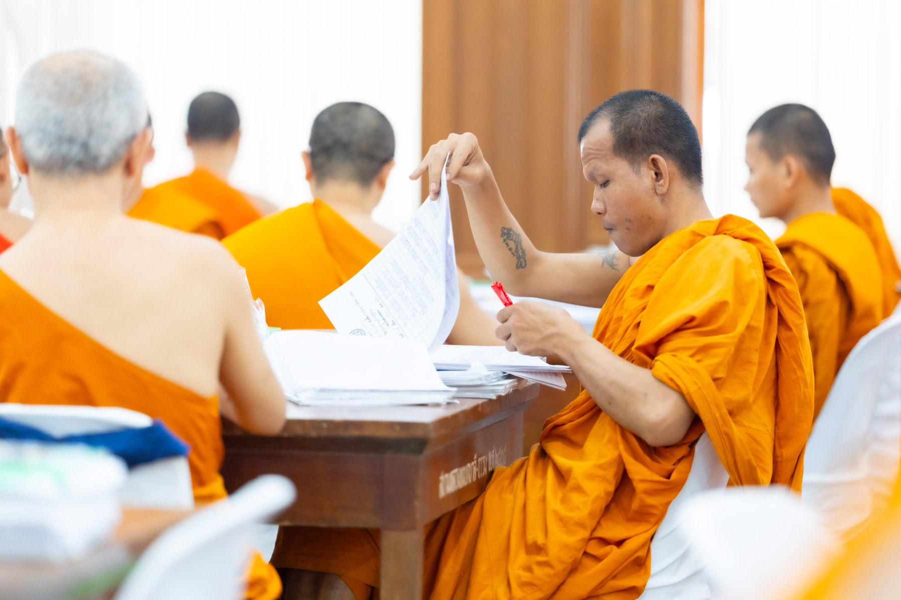 กรุงเทพมหานคร (๒๖ ธันวาคม ๒๕๖๘) – บรรยากาศการตรวจใบตอบข้อสอบธรรมสนามหลวงดำเนินไปอย่างเข้มข้นและเป็นระเบียบเรียบร้อย โดยในวันนี้ถือเป็นวันที่ ๔ ของการตรวจผลสอบนักธรรมและธรรมศึกษาชั้นเอก ประจำปีการศึกษา ๒๕๖๘ สำหรับส่วนภูมิภาค ซึ่งได้รับเมตตาจากคณะพระเถรานุเถระผู้บริหารระดับสูงของสำนักงานแม่กองธรรมสนามหลวง เดินทางมาตรวจเยี่ยมสนามตรวจเพื่อติดตามความเรียบร้อยและประทานกำลังใจแก่คณะกรรมการผู้ปฏิบัติหน้าที่
