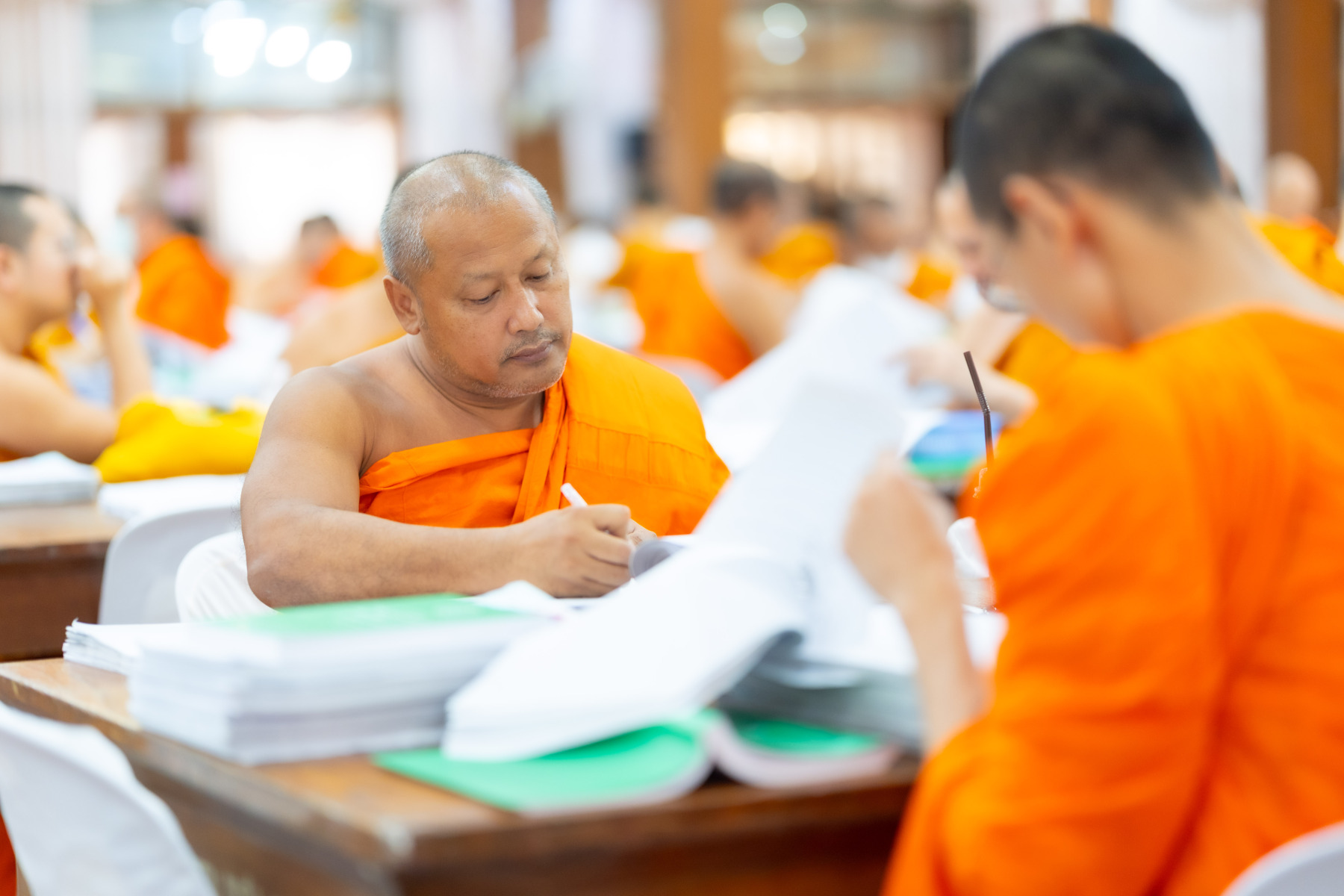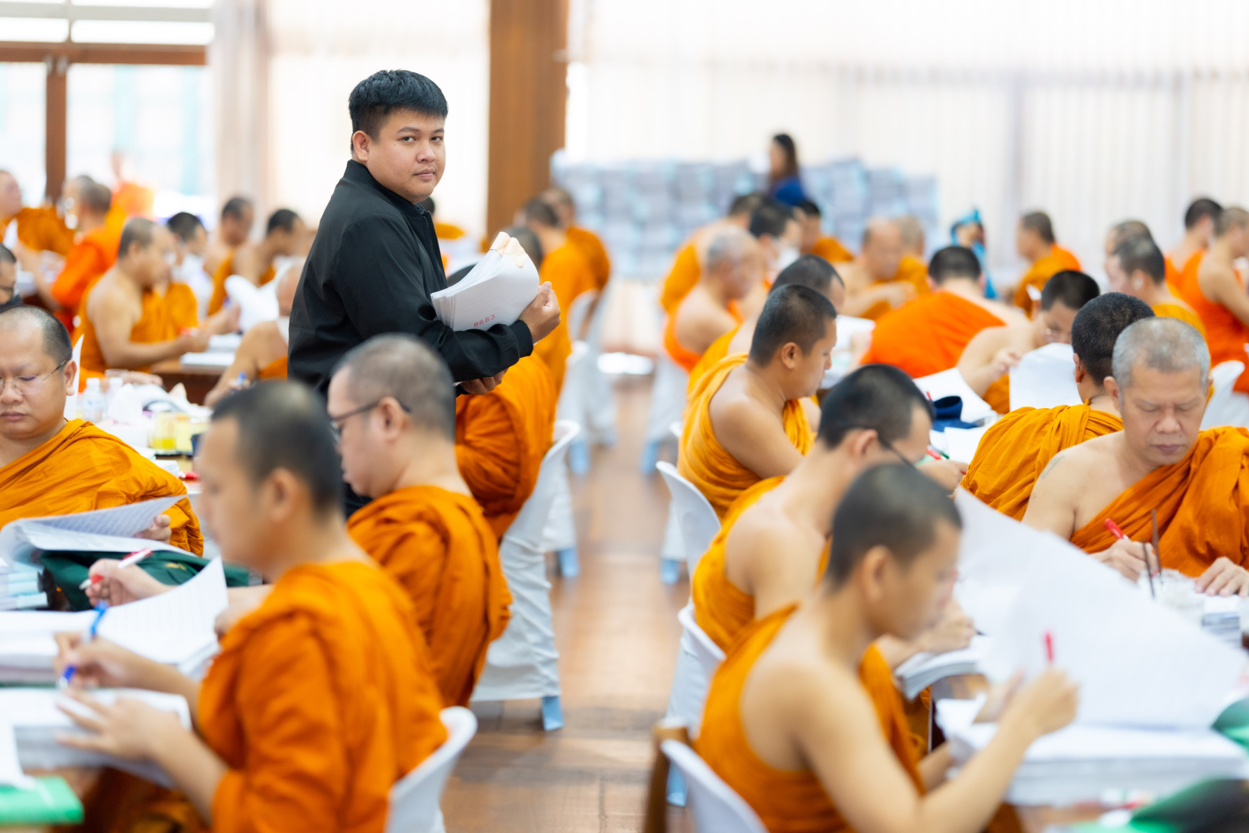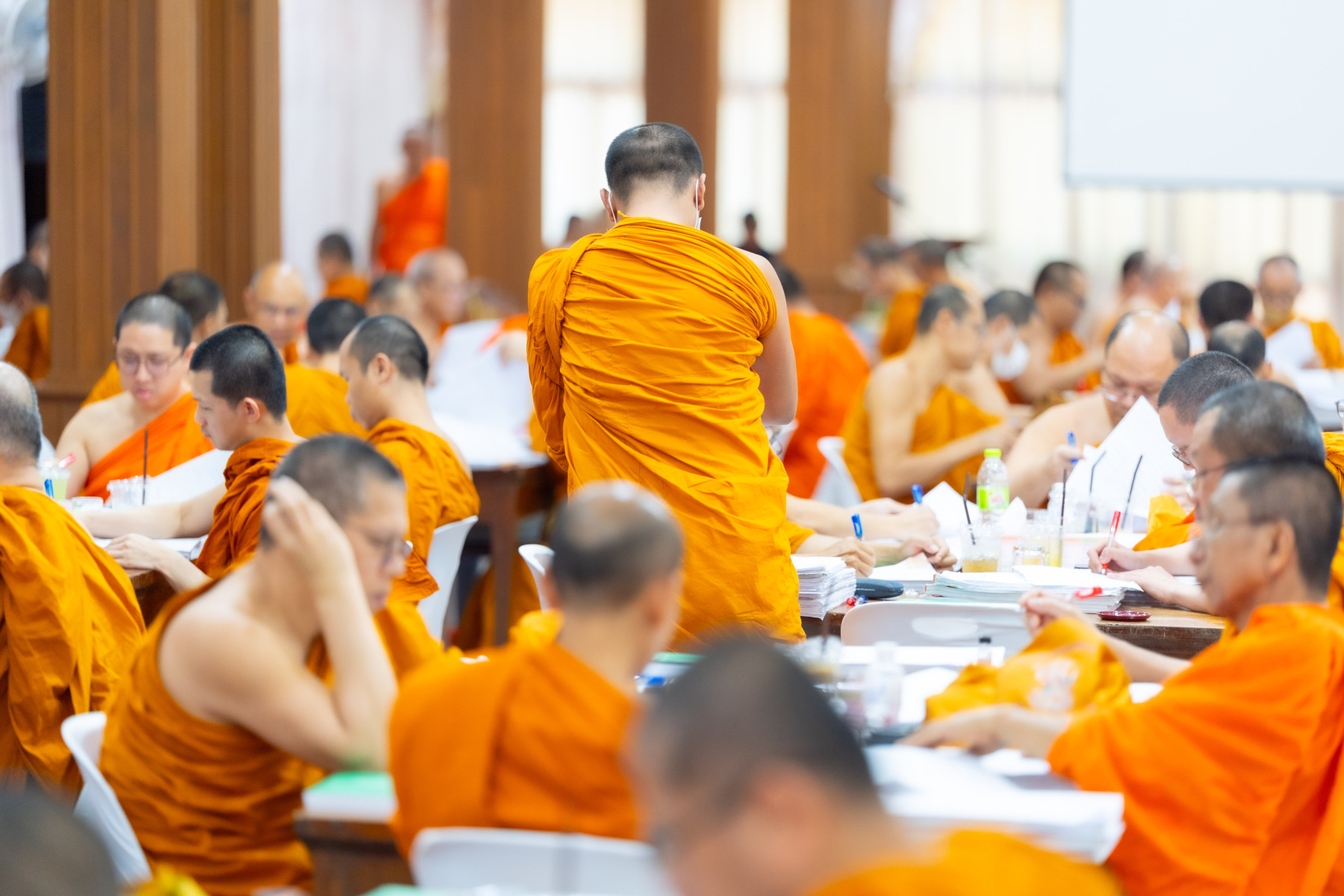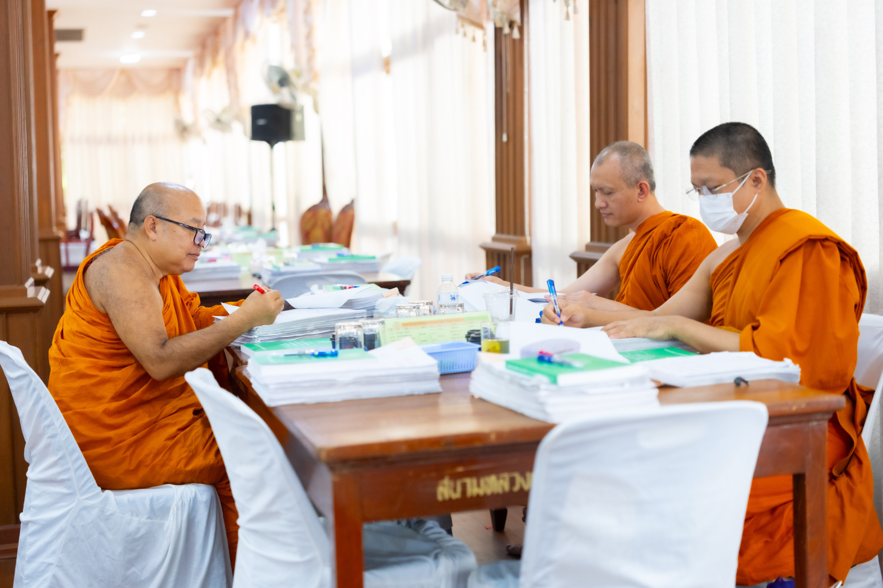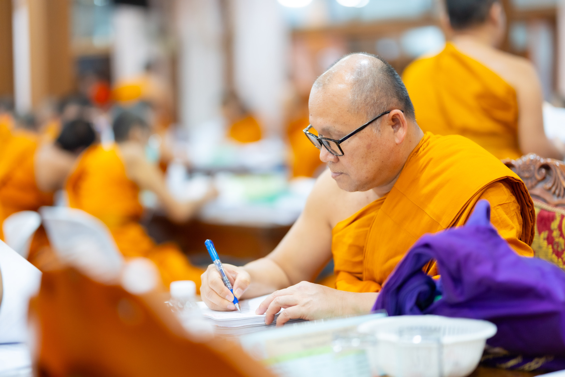 กรุงเทพมหานคร (๒๖ ธันวาคม ๒๕๖๘) – บรรยากาศการตรวจใบตอบข้อสอบธรรมสนามหลวงดำเนินไปอย่างเข้มข้นและเป็นระเบียบเรียบร้อย โดยในวันนี้ถือเป็นวันที่ ๔ ของการตรวจผลสอบนักธรรมและธรรมศึกษาชั้นเอก ประจำปีการศึกษา ๒๕๖๘ สำหรับส่วนภูมิภาค ซึ่งได้รับเมตตาจากคณะพระเถรานุเถระผู้บริหารระดับสูงของสำนักงานแม่กองธรรมสนามหลวง เดินทางมาตรวจเยี่ยมสนามตรวจเพื่อติดตามความเรียบร้อยและประทานกำลังใจแก่คณะกรรมการผู้ปฏิบัติหน้าที่