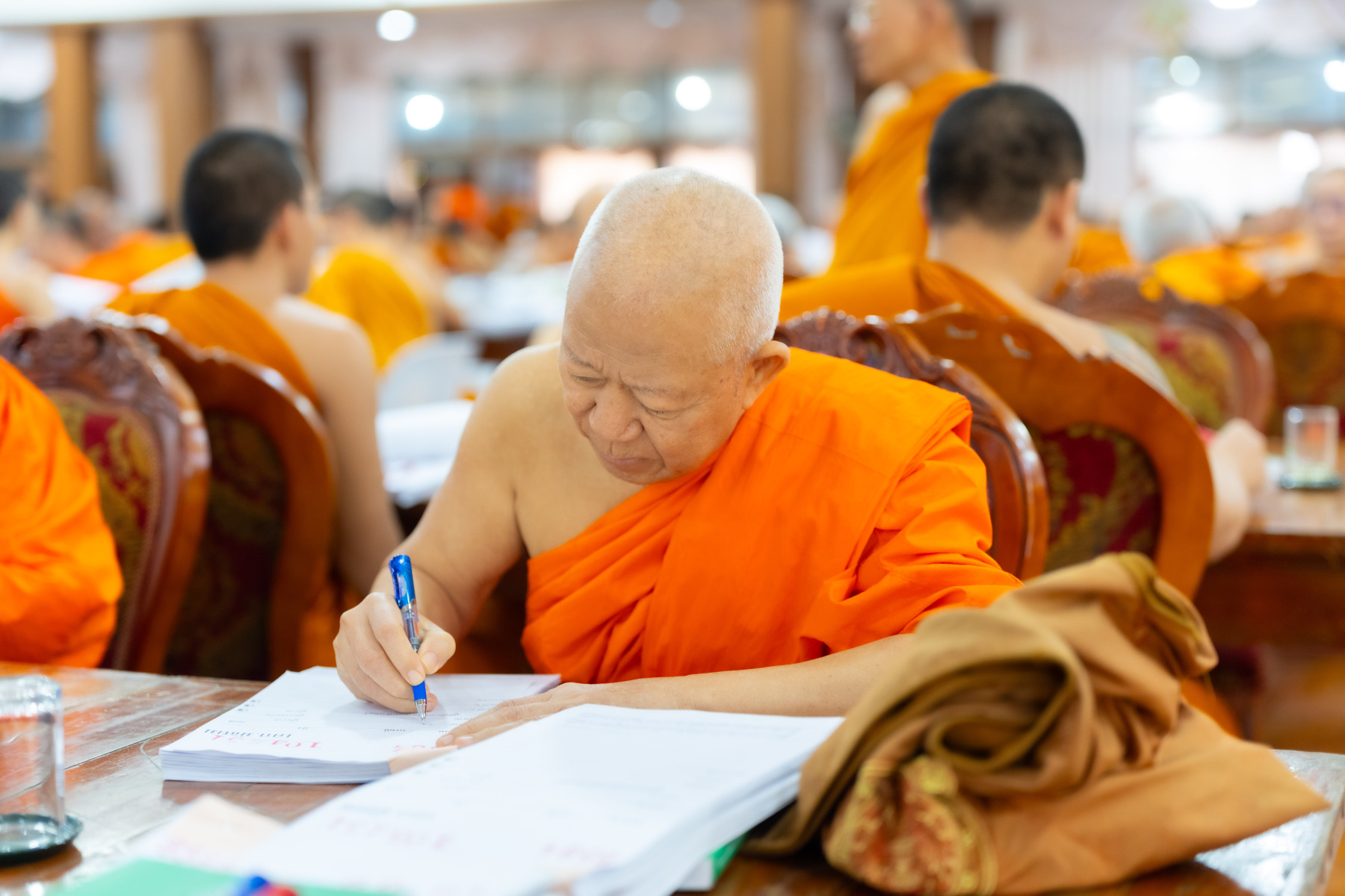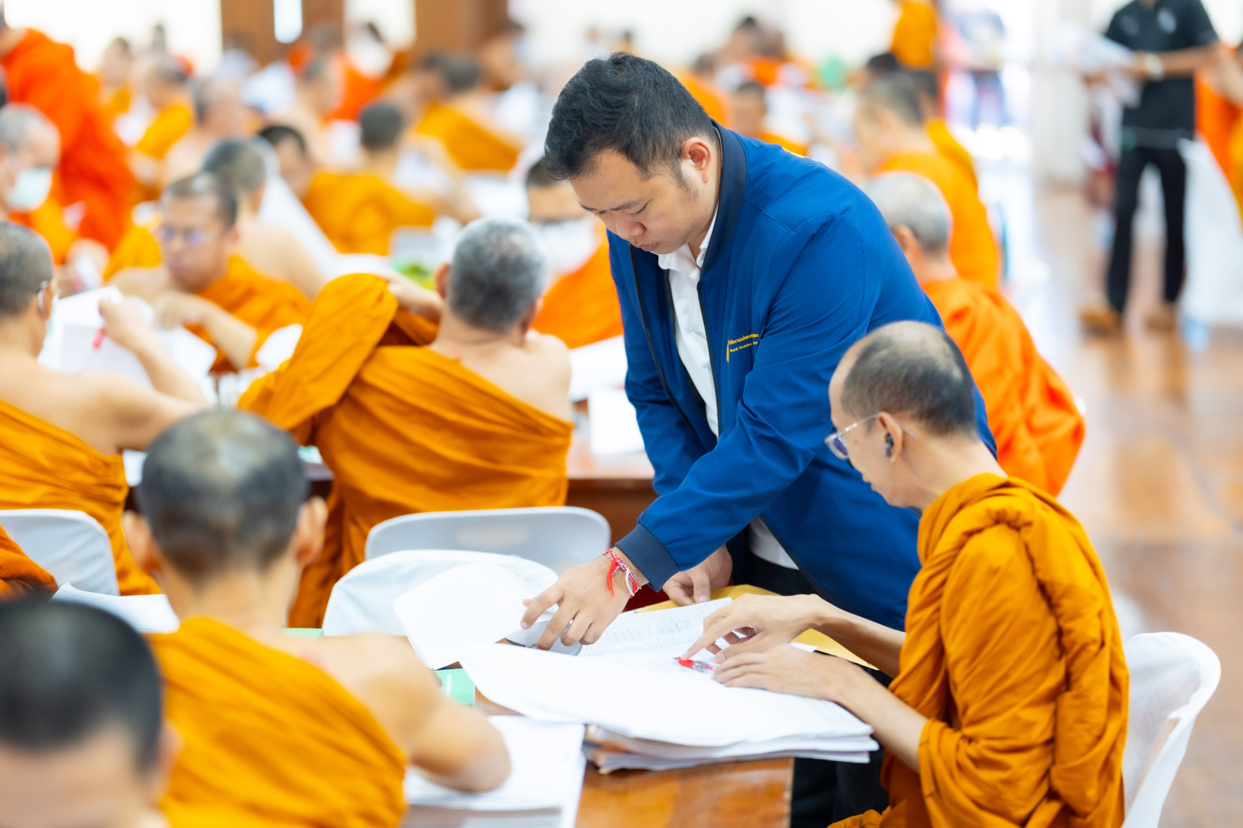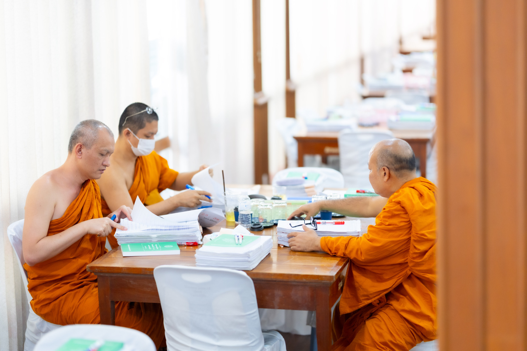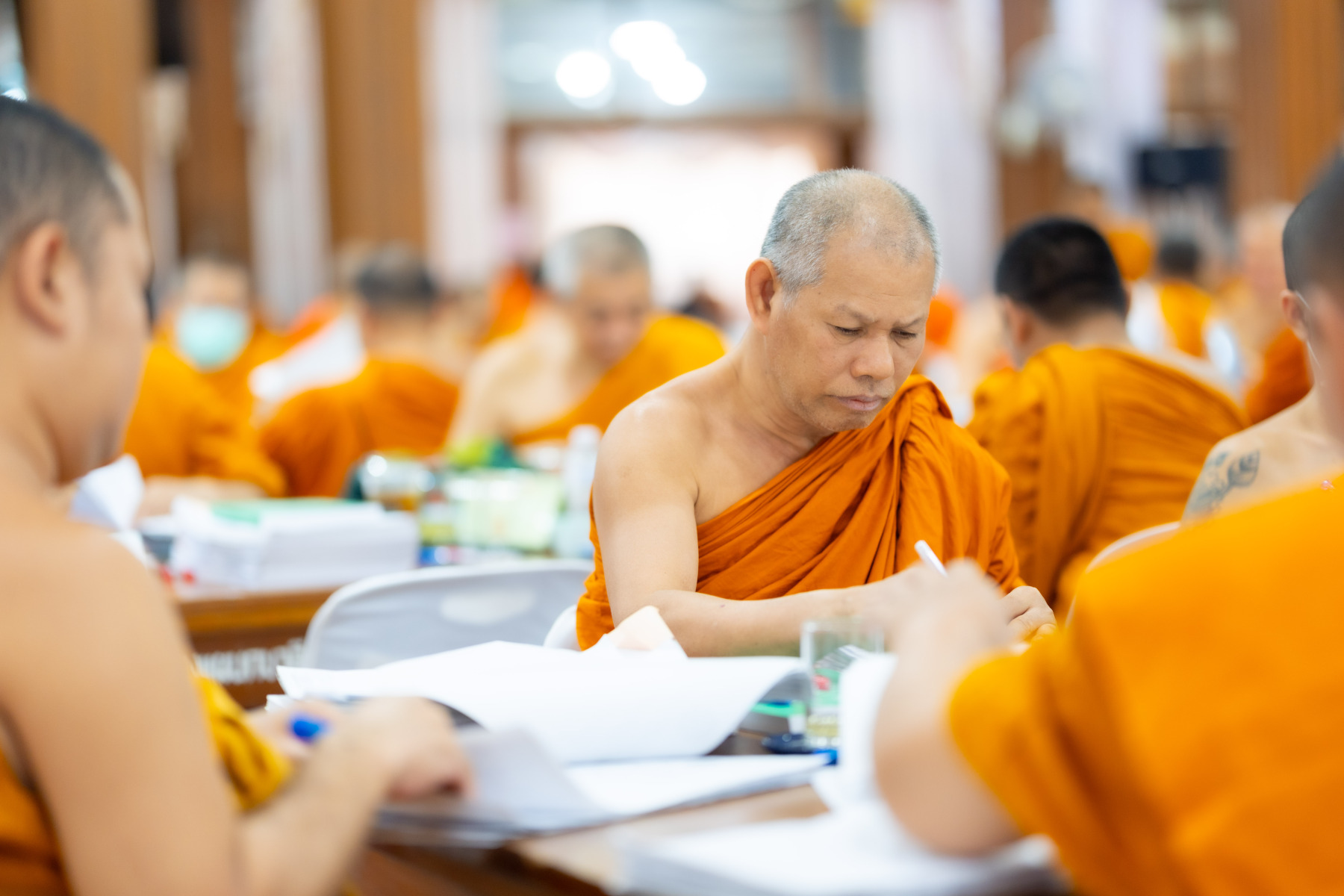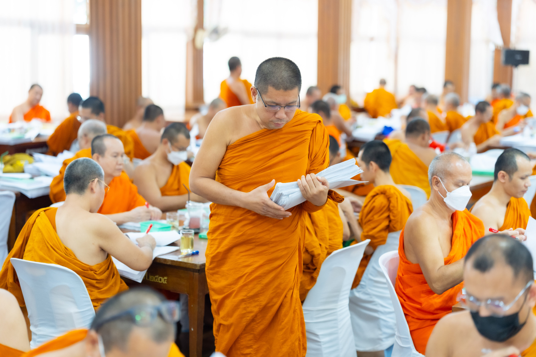 กรุงเทพมหานคร (๒๖ ธันวาคม ๒๕๖๘) – บรรยากาศการตรวจใบตอบข้อสอบธรรมสนามหลวงดำเนินไปอย่างเข้มข้นและเป็นระเบียบเรียบร้อย โดยในวันนี้ถือเป็นวันที่ ๔ ของการตรวจผลสอบนักธรรมและธรรมศึกษาชั้นเอก ประจำปีการศึกษา ๒๕๖๘ สำหรับส่วนภูมิภาค ซึ่งได้รับเมตตาจากคณะพระเถรานุเถระผู้บริหารระดับสูงของสำนักงานแม่กองธรรมสนามหลวง เดินทางมาตรวจเยี่ยมสนามตรวจเพื่อติดตามความเรียบร้อยและประทานกำลังใจแก่คณะกรรมการผู้ปฏิบัติหน้าที่