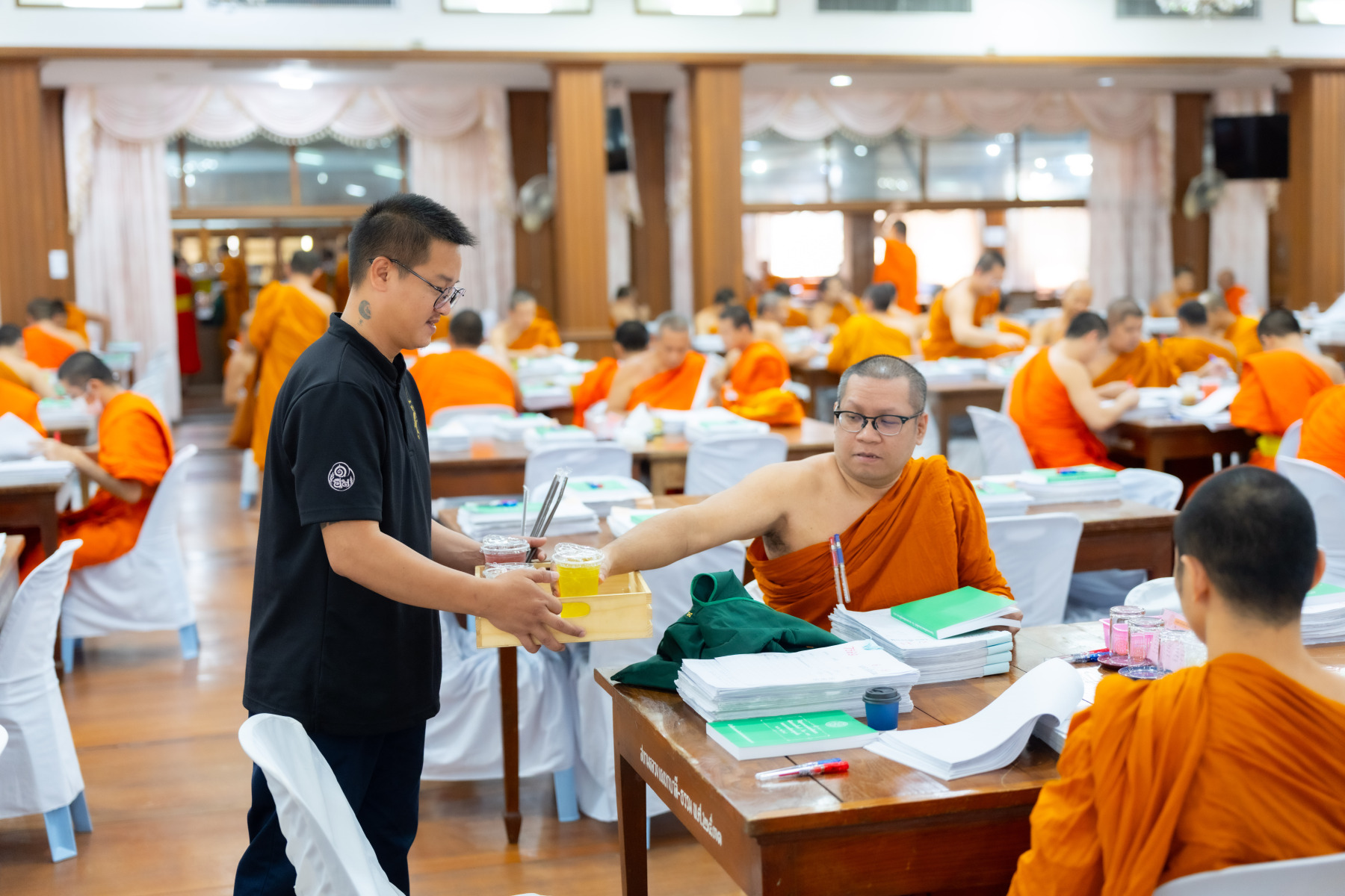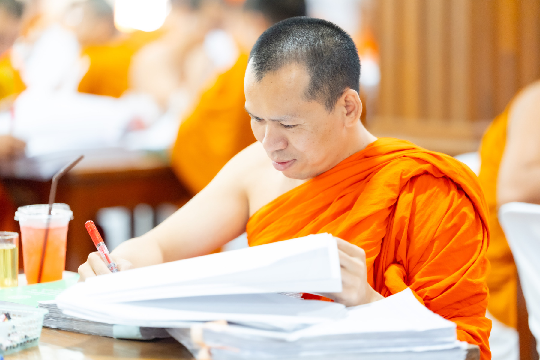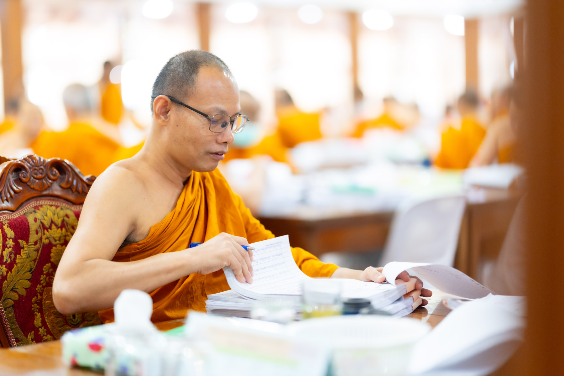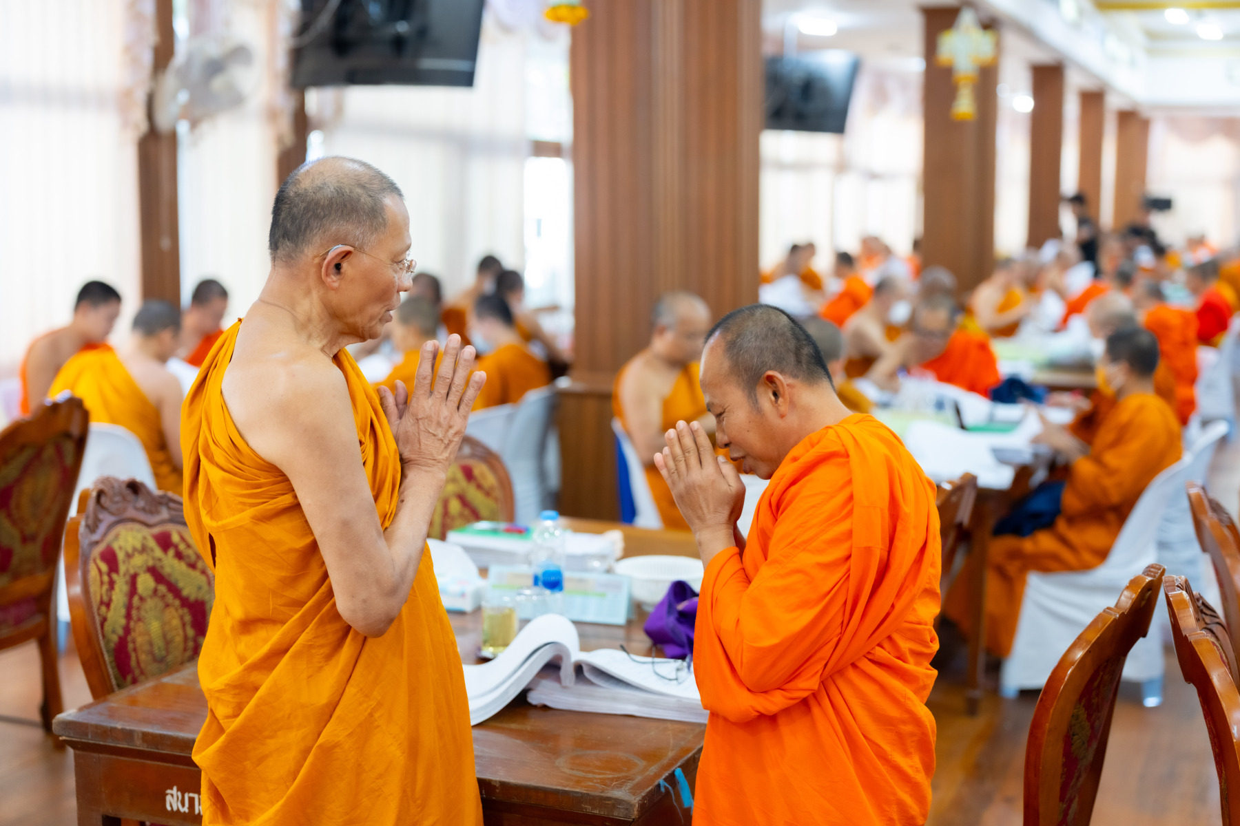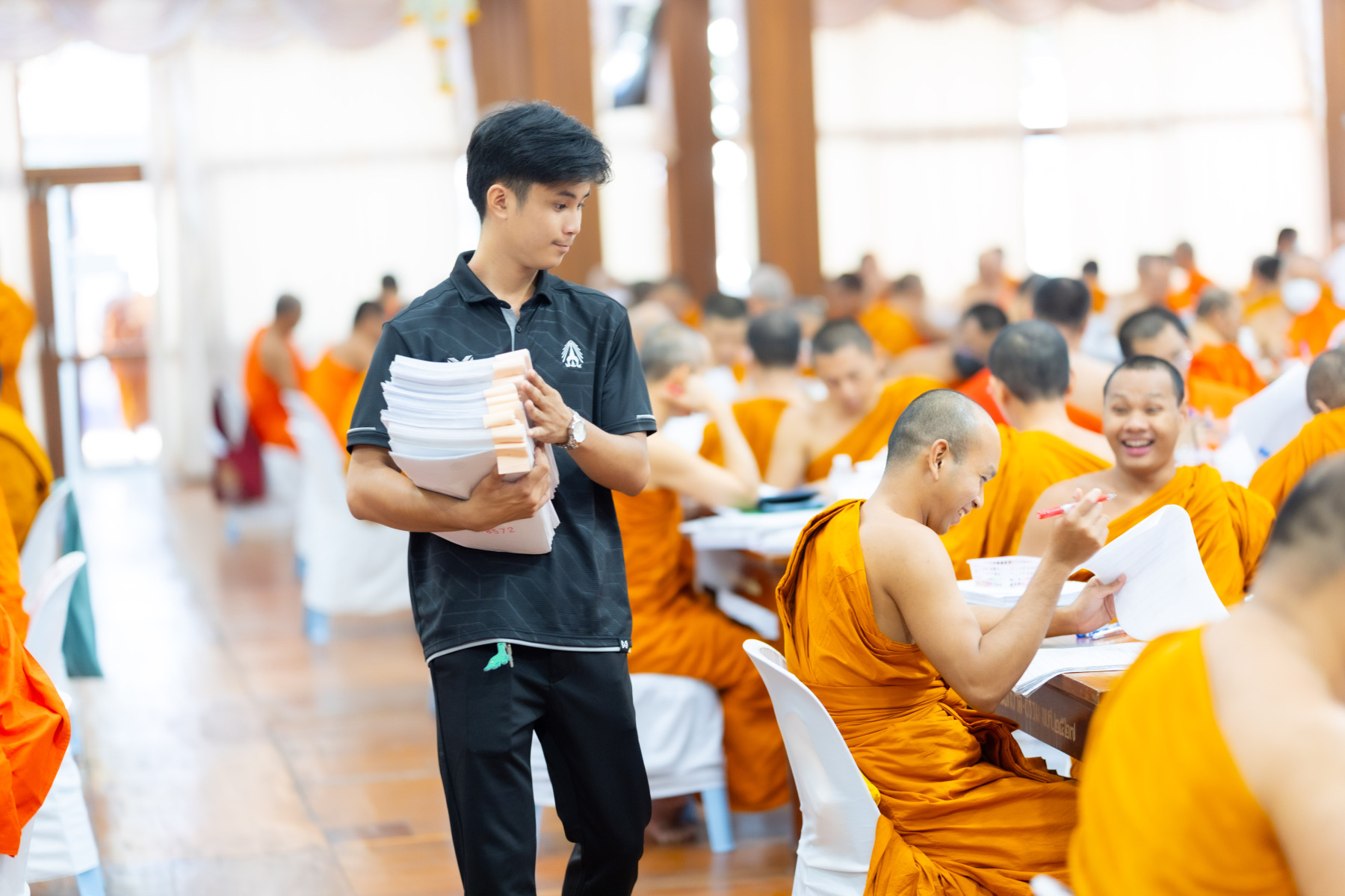 กรุงเทพมหานคร (๒๖ ธันวาคม ๒๕๖๘) – บรรยากาศการตรวจใบตอบข้อสอบธรรมสนามหลวงดำเนินไปอย่างเข้มข้นและเป็นระเบียบเรียบร้อย โดยในวันนี้ถือเป็นวันที่ ๔ ของการตรวจผลสอบนักธรรมและธรรมศึกษาชั้นเอก ประจำปีการศึกษา ๒๕๖๘ สำหรับส่วนภูมิภาค ซึ่งได้รับเมตตาจากคณะพระเถรานุเถระผู้บริหารระดับสูงของสำนักงานแม่กองธรรมสนามหลวง เดินทางมาตรวจเยี่ยมสนามตรวจเพื่อติดตามความเรียบร้อยและประทานกำลังใจแก่คณะกรรมการผู้ปฏิบัติหน้าที่