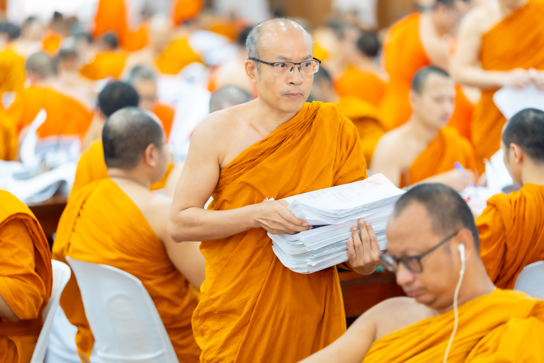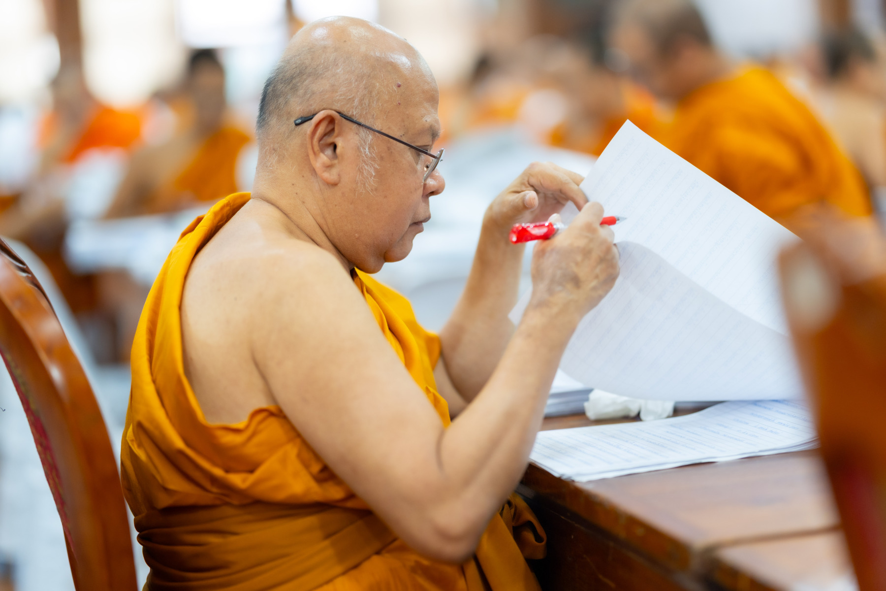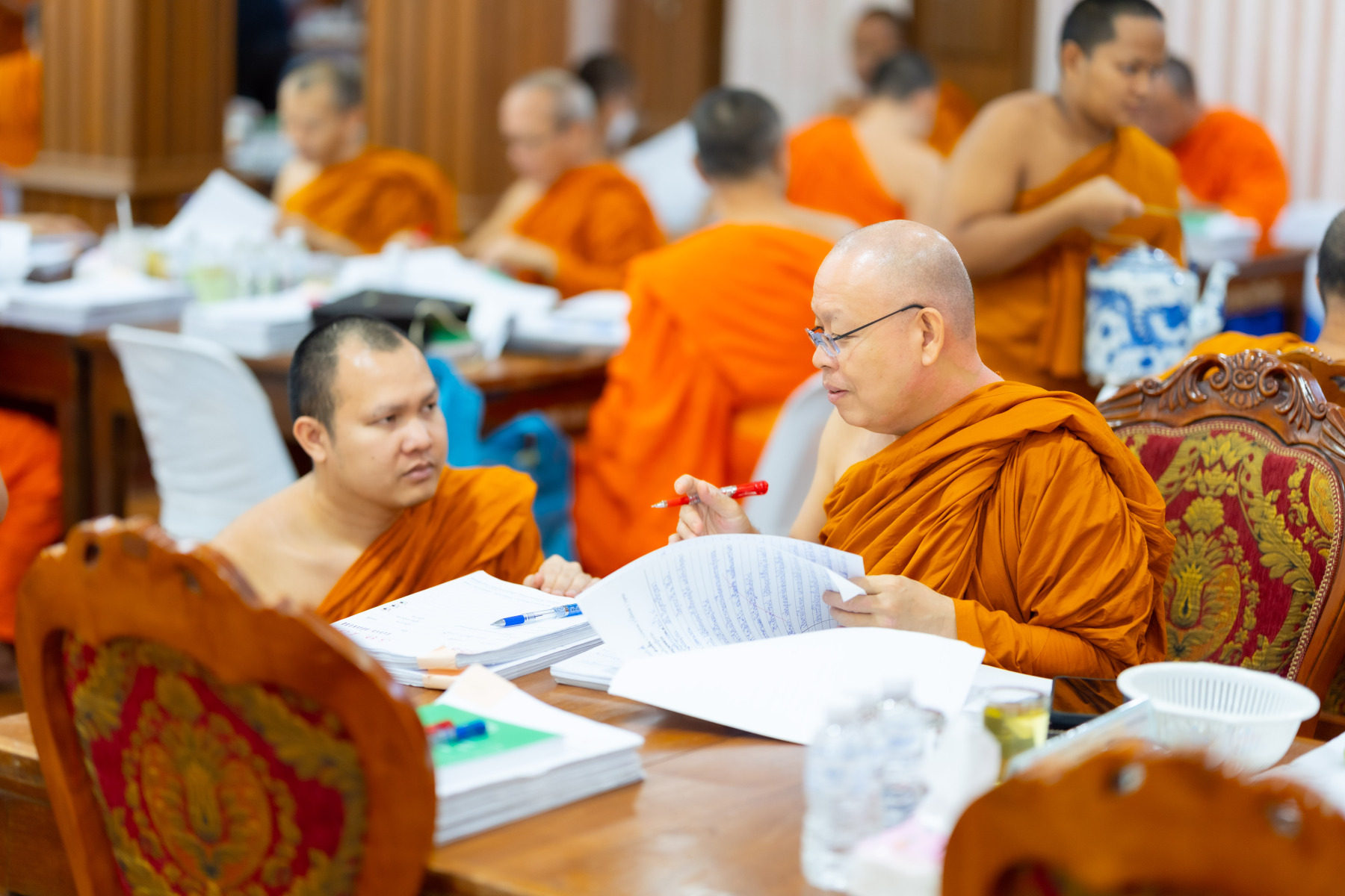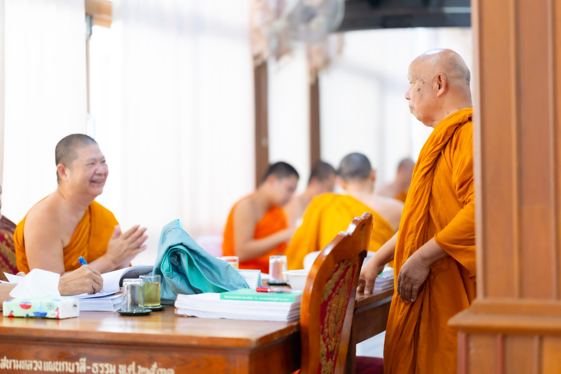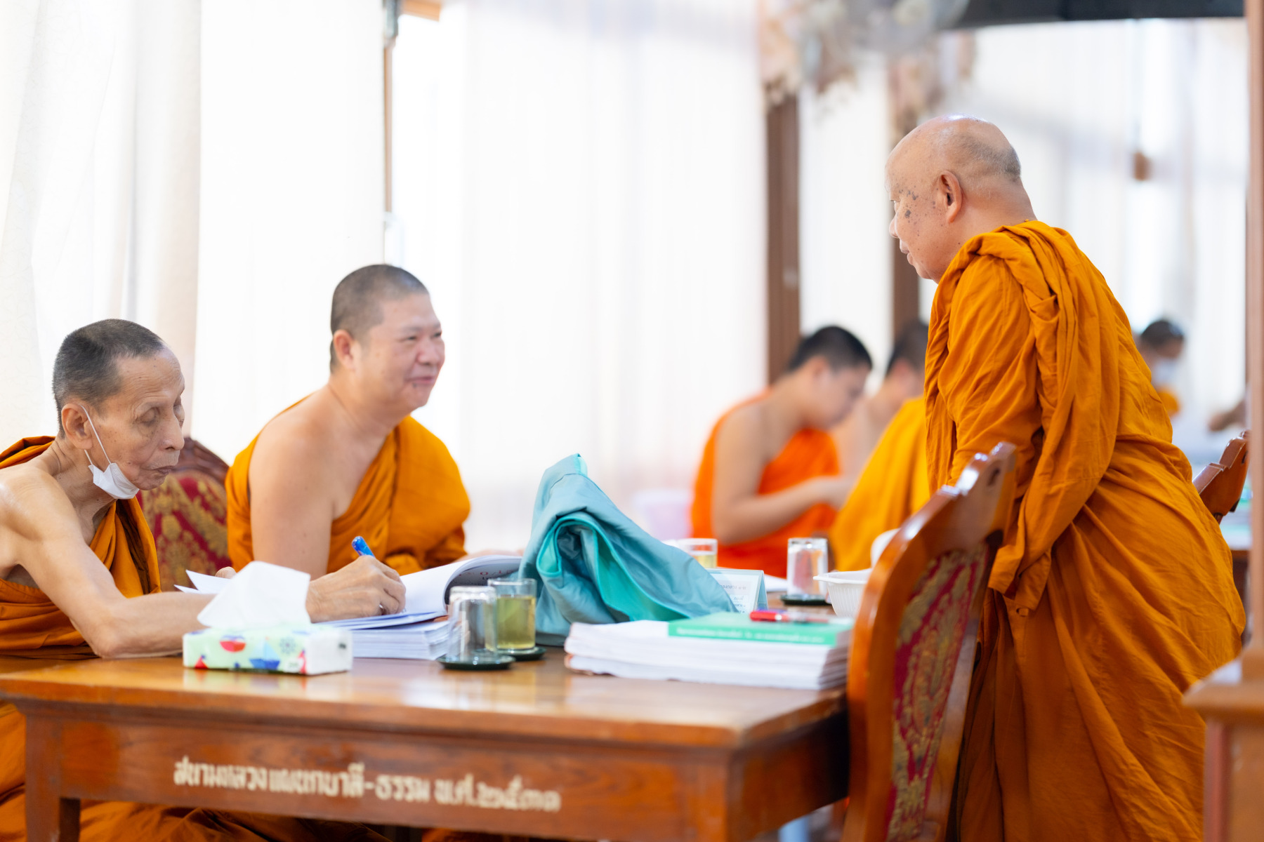กรุงเทพมหานคร (๒๖ ธันวาคม ๒๕๖๘) – บรรยากาศการตรวจใบตอบข้อสอบธรรมสนามหลวงดำเนินไปอย่างเข้มข้นและเป็นระเบียบเรียบร้อย โดยในวันนี้ถือเป็นวันที่ ๔ ของการตรวจผลสอบนักธรรมและธรรมศึกษาชั้นเอก ประจำปีการศึกษา ๒๕๖๘ สำหรับส่วนภูมิภาค ซึ่งได้รับเมตตาจากคณะพระเถรานุเถระผู้บริหารระดับสูงของสำนักงานแม่กองธรรมสนามหลวง เดินทางมาตรวจเยี่ยมสนามตรวจเพื่อติดตามความเรียบร้อยและประทานกำลังใจแก่คณะกรรมการผู้ปฏิบัติหน้าที่