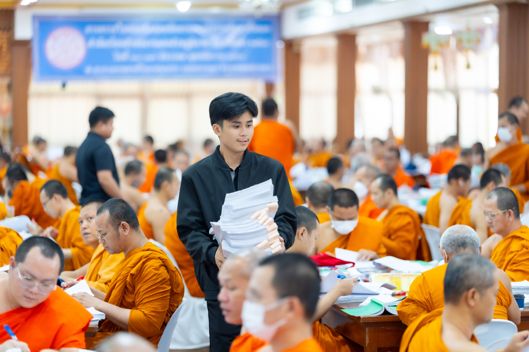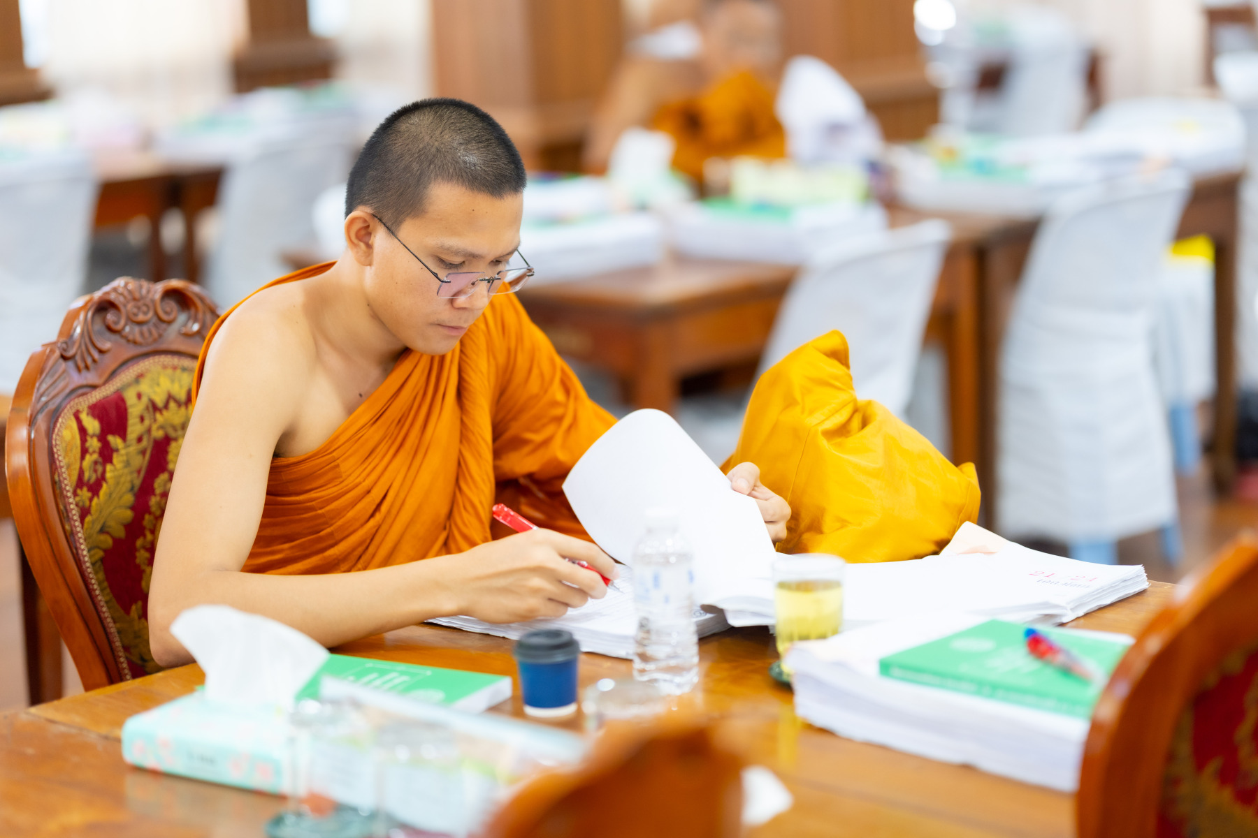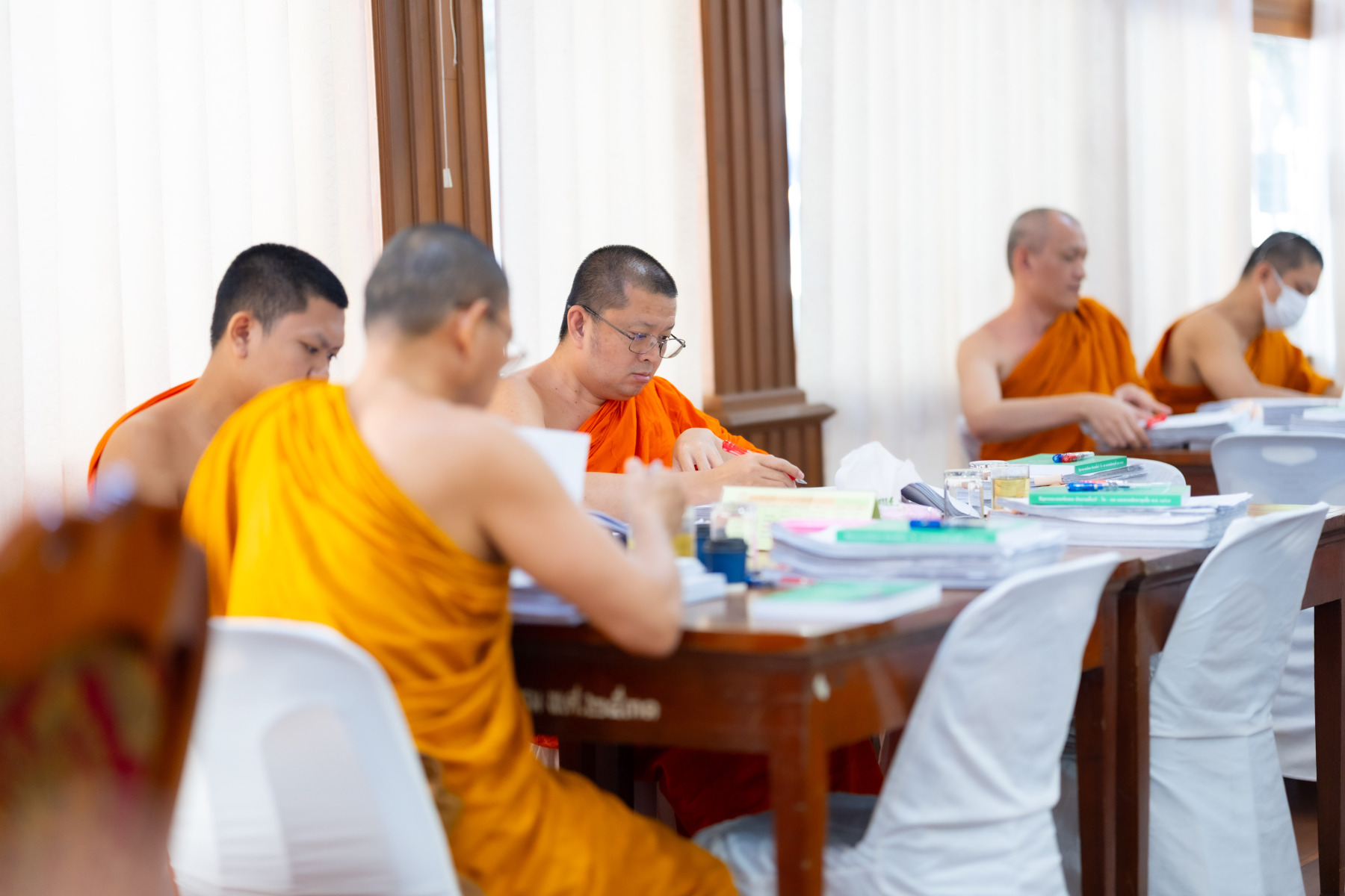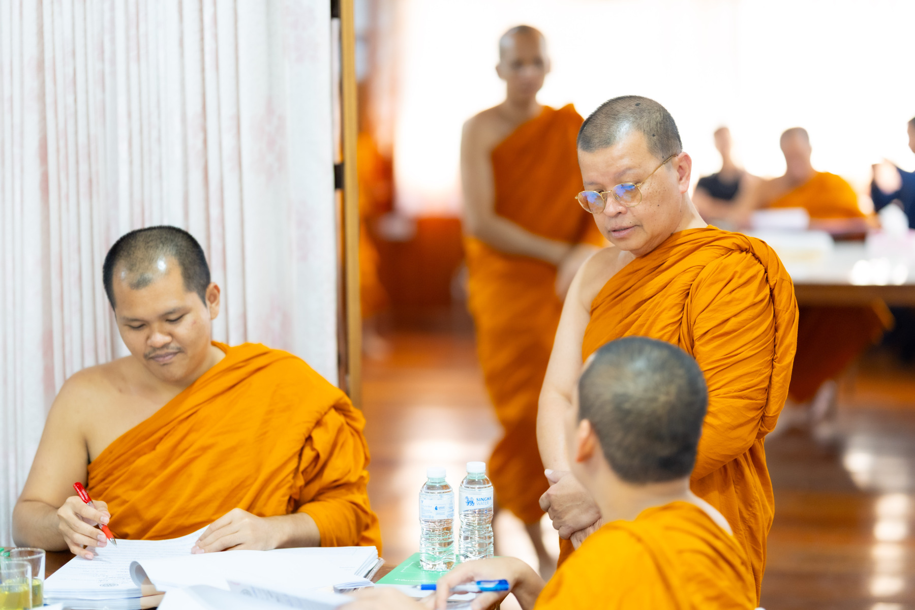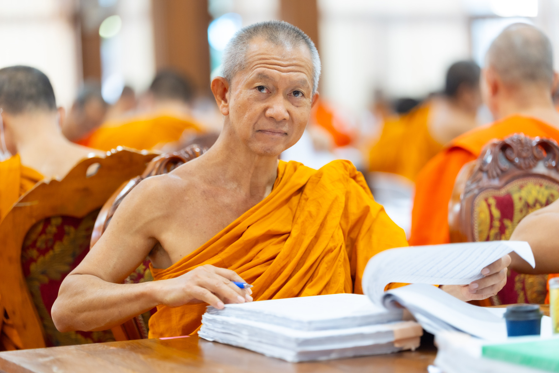 กรุงเทพมหานคร (๒๖ ธันวาคม ๒๕๖๘) – บรรยากาศการตรวจใบตอบข้อสอบธรรมสนามหลวงดำเนินไปอย่างเข้มข้นและเป็นระเบียบเรียบร้อย โดยในวันนี้ถือเป็นวันที่ ๔ ของการตรวจผลสอบนักธรรมและธรรมศึกษาชั้นเอก ประจำปีการศึกษา ๒๕๖๘ สำหรับส่วนภูมิภาค ซึ่งได้รับเมตตาจากคณะพระเถรานุเถระผู้บริหารระดับสูงของสำนักงานแม่กองธรรมสนามหลวง เดินทางมาตรวจเยี่ยมสนามตรวจเพื่อติดตามความเรียบร้อยและประทานกำลังใจแก่คณะกรรมการผู้ปฏิบัติหน้าที่