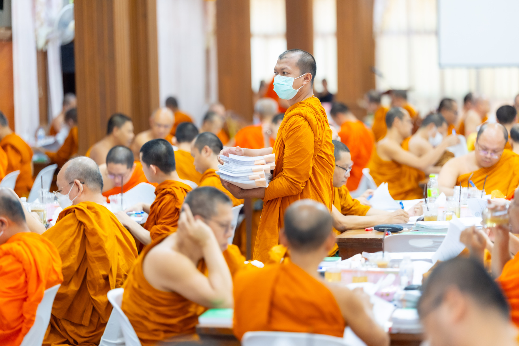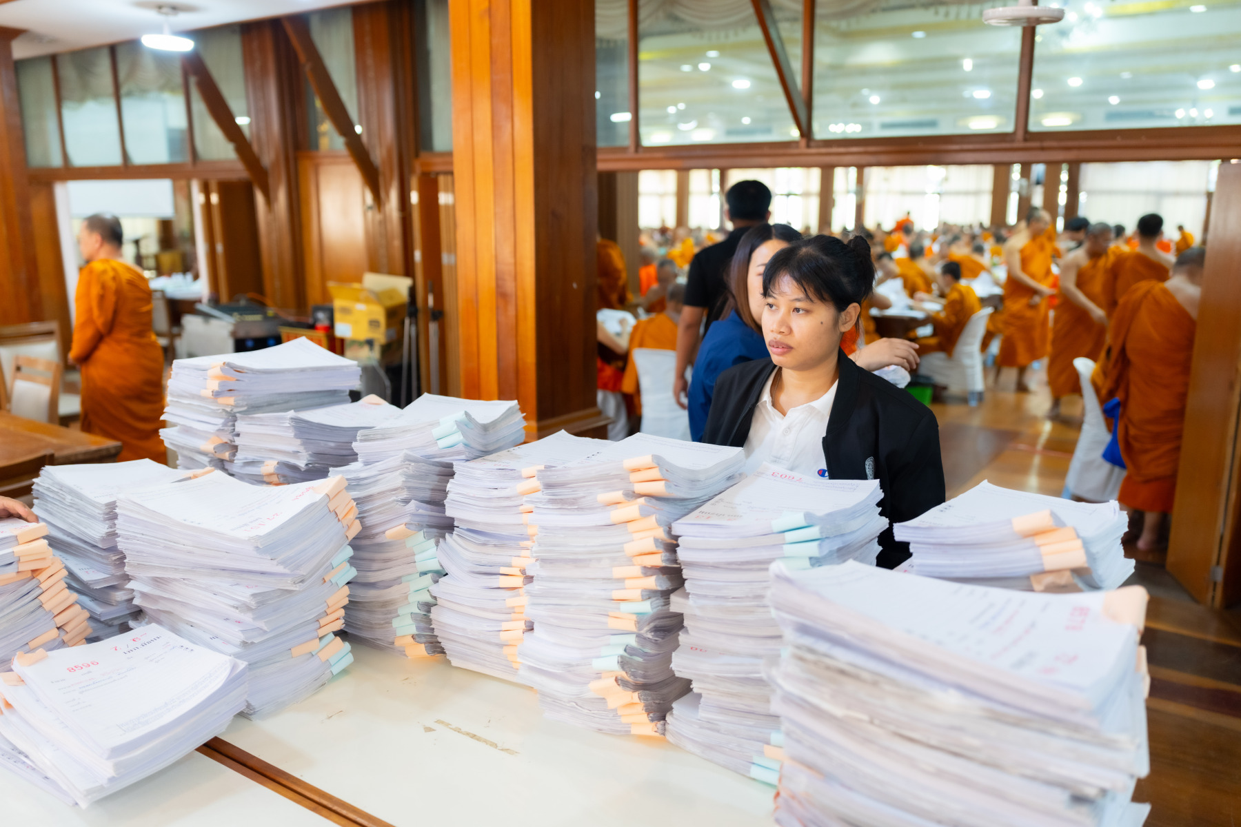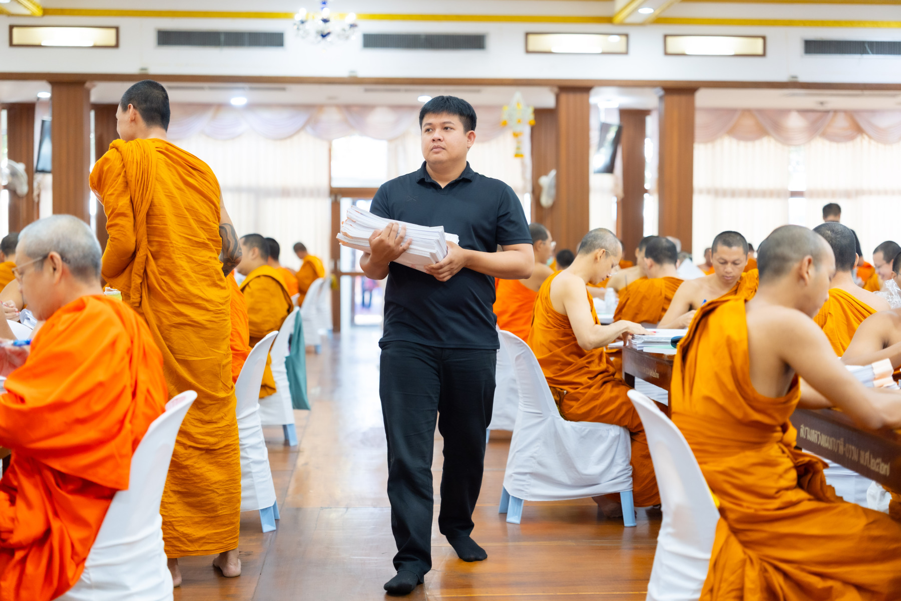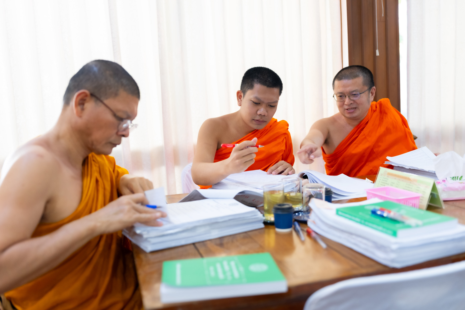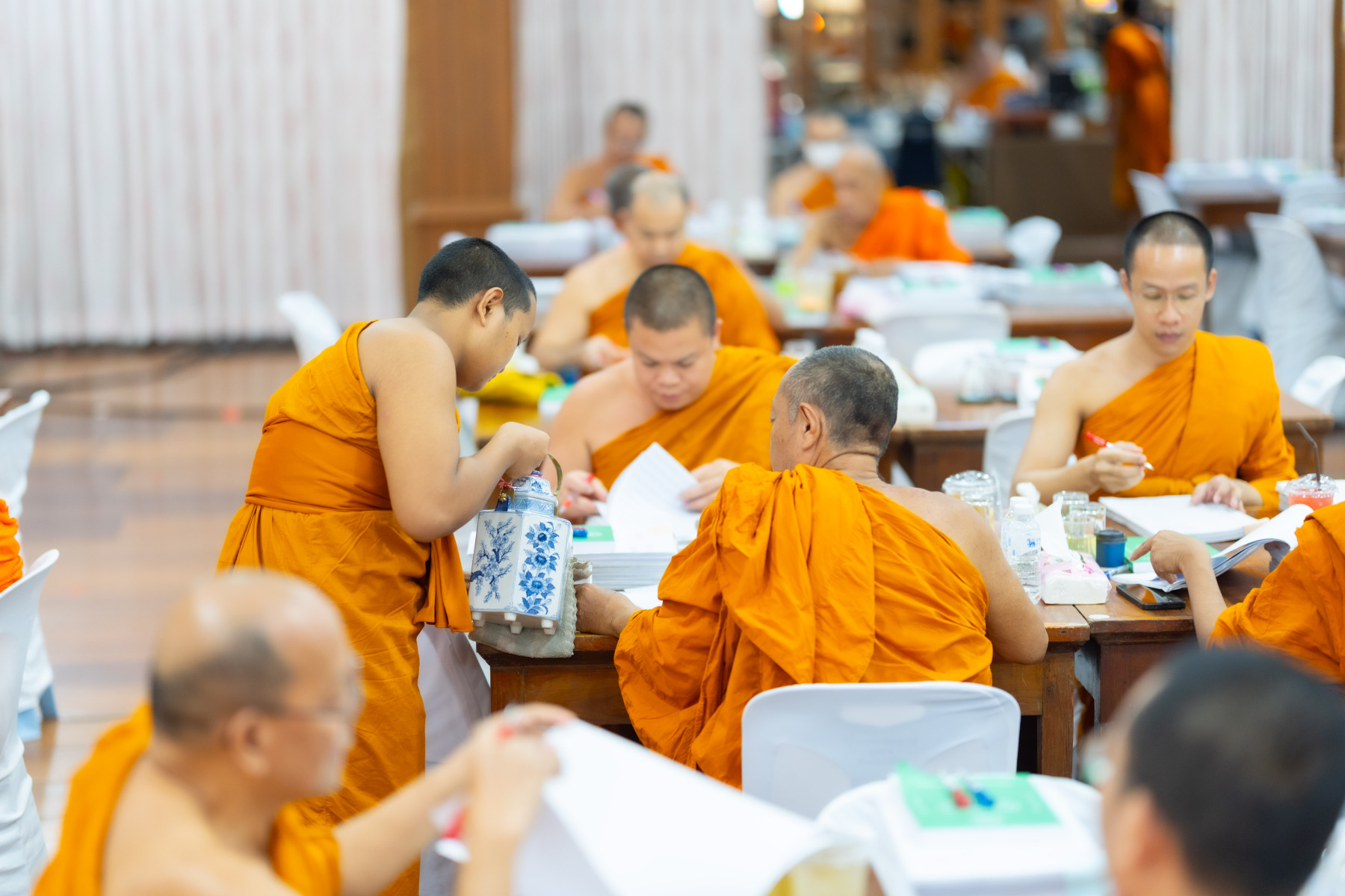 กรุงเทพมหานคร (๒๖ ธันวาคม ๒๕๖๘) – บรรยากาศการตรวจใบตอบข้อสอบธรรมสนามหลวงดำเนินไปอย่างเข้มข้นและเป็นระเบียบเรียบร้อย โดยในวันนี้ถือเป็นวันที่ ๔ ของการตรวจผลสอบนักธรรมและธรรมศึกษาชั้นเอก ประจำปีการศึกษา ๒๕๖๘ สำหรับส่วนภูมิภาค ซึ่งได้รับเมตตาจากคณะพระเถรานุเถระผู้บริหารระดับสูงของสำนักงานแม่กองธรรมสนามหลวง เดินทางมาตรวจเยี่ยมสนามตรวจเพื่อติดตามความเรียบร้อยและประทานกำลังใจแก่คณะกรรมการผู้ปฏิบัติหน้าที่