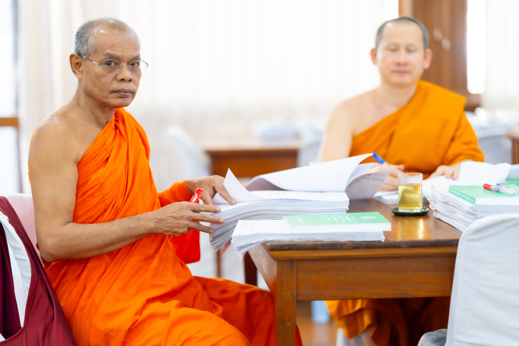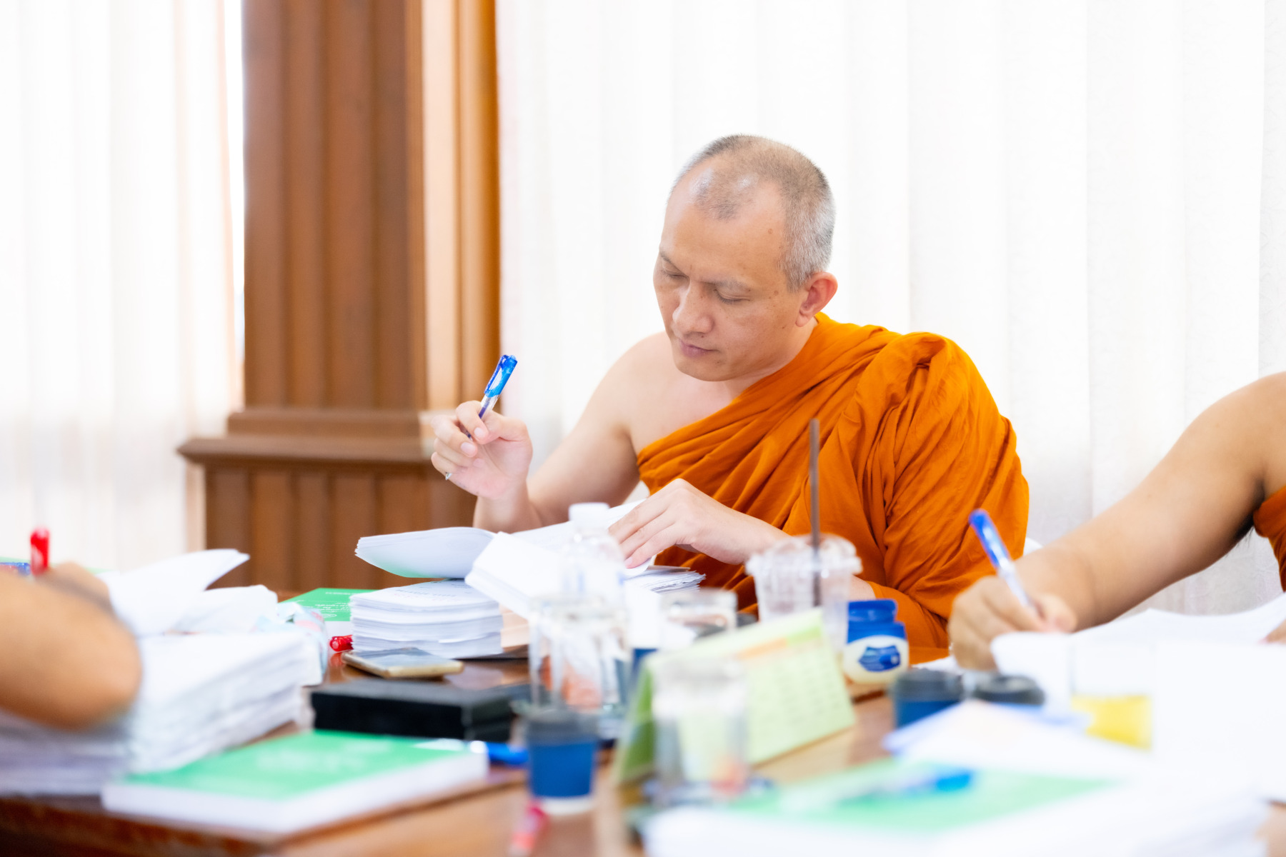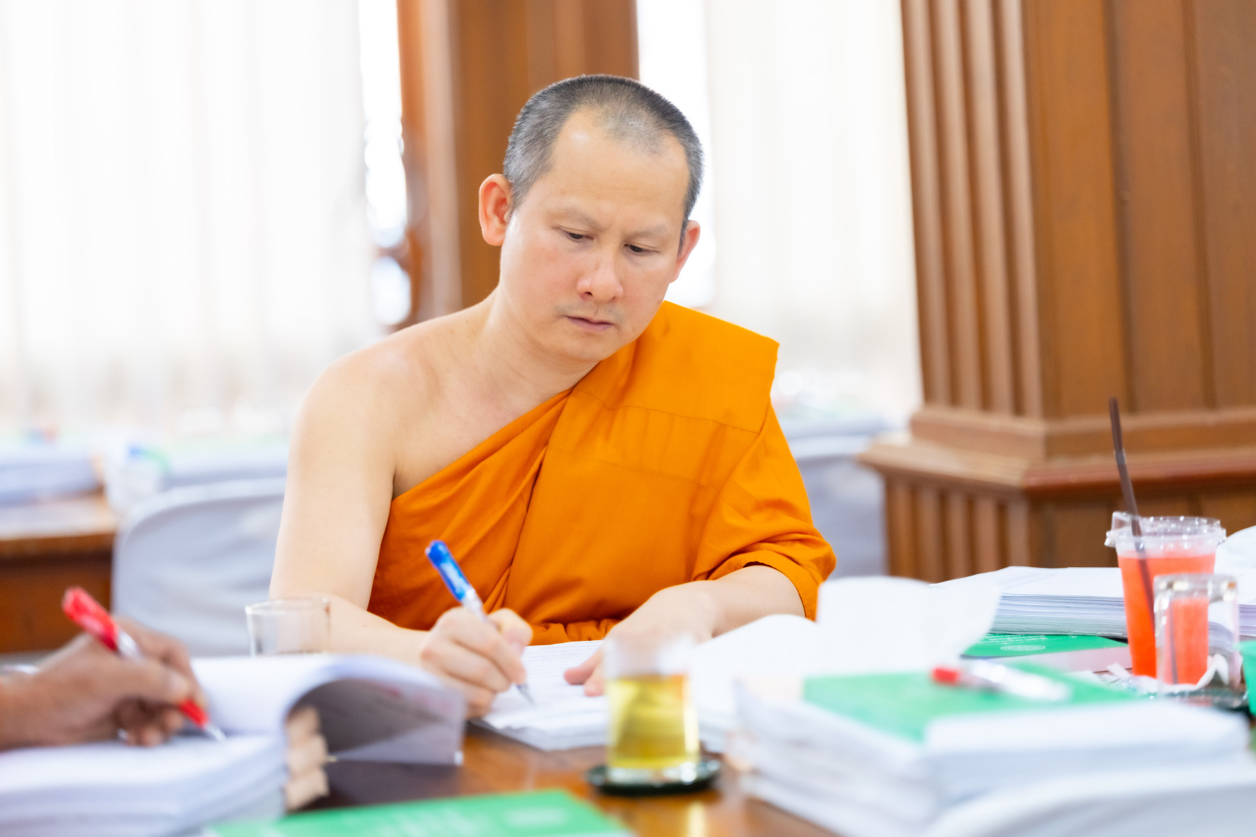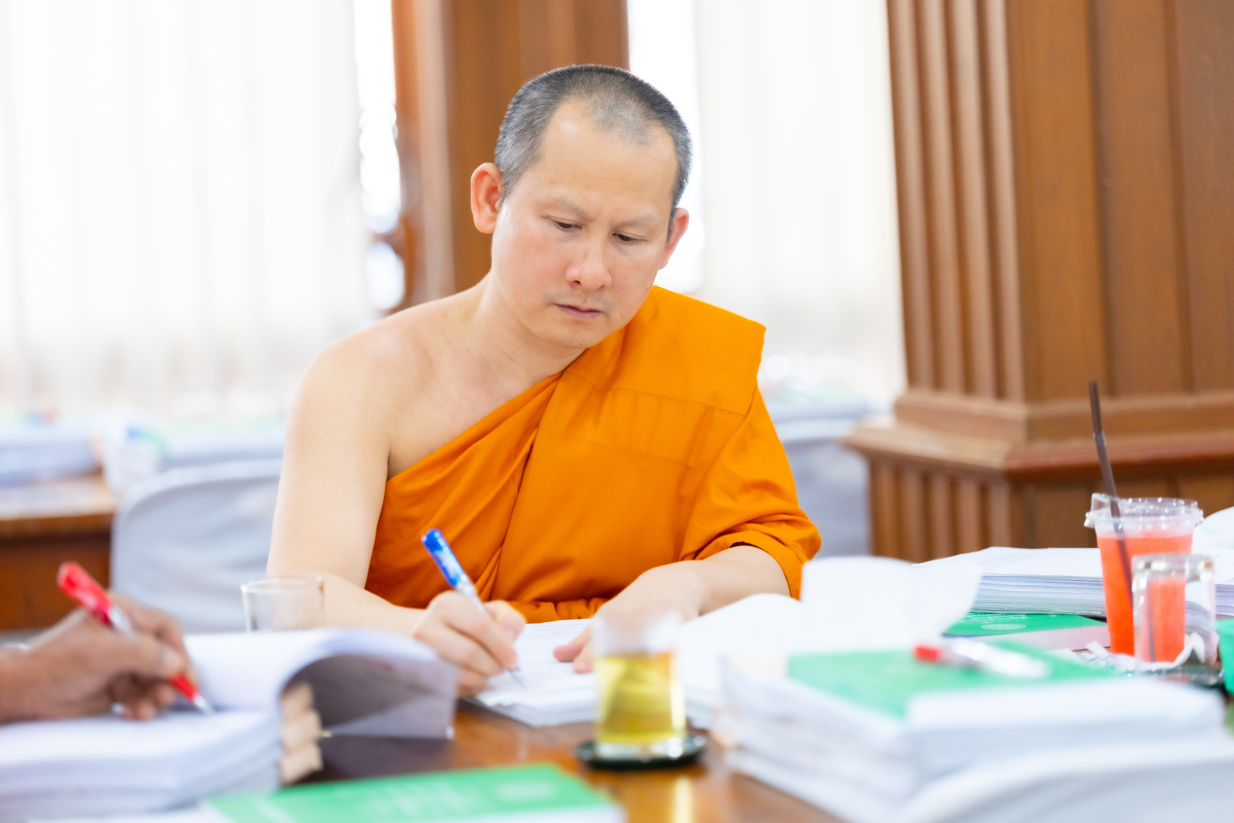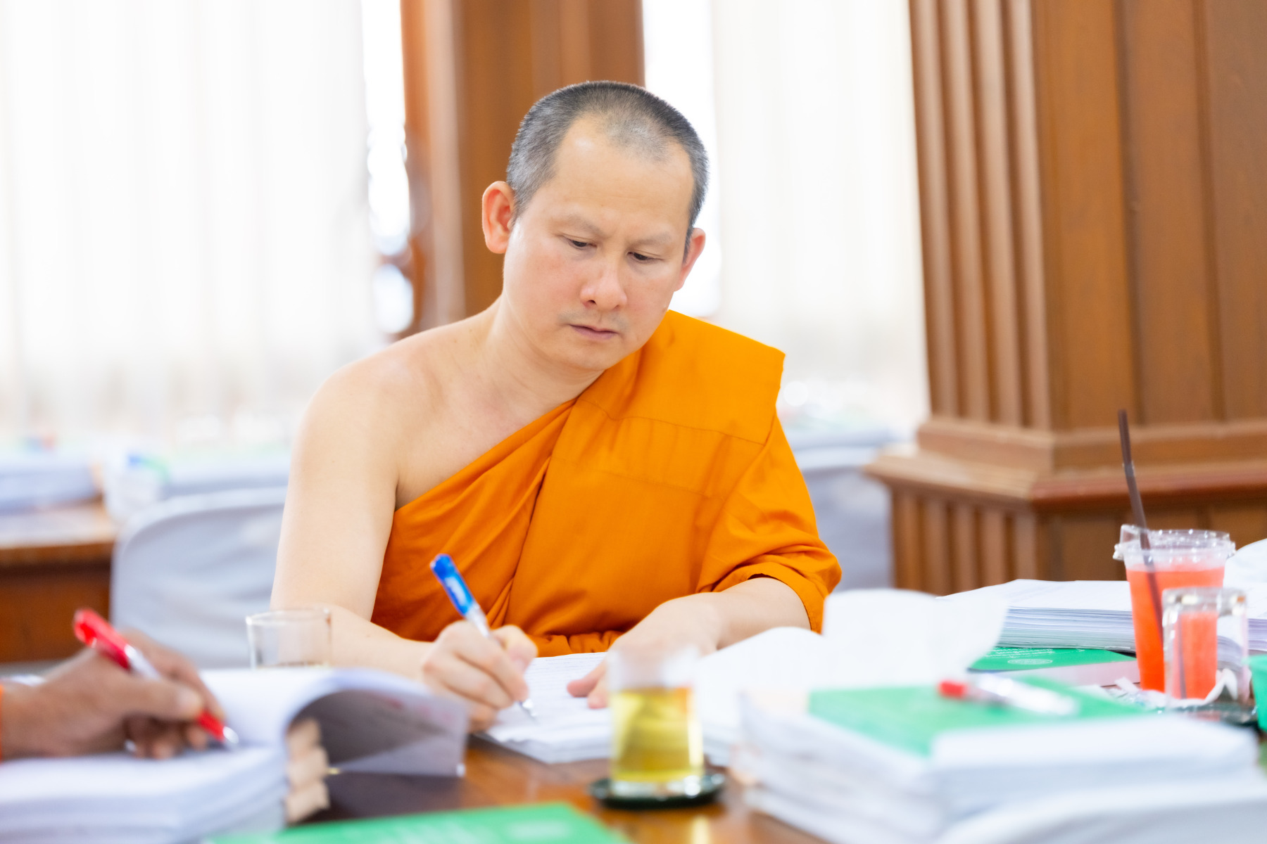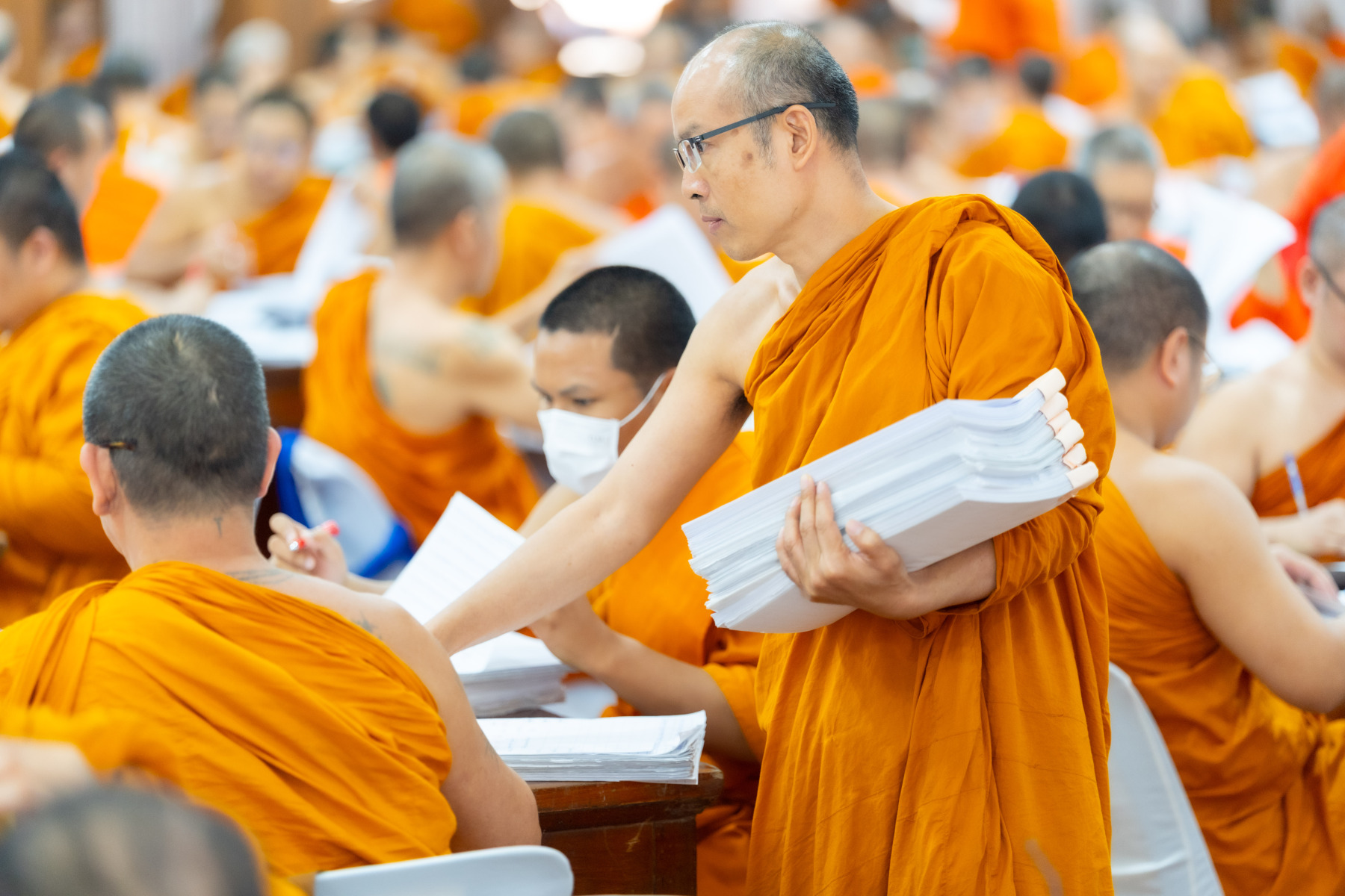 กรุงเทพมหานคร (๒๖ ธันวาคม ๒๕๖๘) – บรรยากาศการตรวจใบตอบข้อสอบธรรมสนามหลวงดำเนินไปอย่างเข้มข้นและเป็นระเบียบเรียบร้อย โดยในวันนี้ถือเป็นวันที่ ๔ ของการตรวจผลสอบนักธรรมและธรรมศึกษาชั้นเอก ประจำปีการศึกษา ๒๕๖๘ สำหรับส่วนภูมิภาค ซึ่งได้รับเมตตาจากคณะพระเถรานุเถระผู้บริหารระดับสูงของสำนักงานแม่กองธรรมสนามหลวง เดินทางมาตรวจเยี่ยมสนามตรวจเพื่อติดตามความเรียบร้อยและประทานกำลังใจแก่คณะกรรมการผู้ปฏิบัติหน้าที่