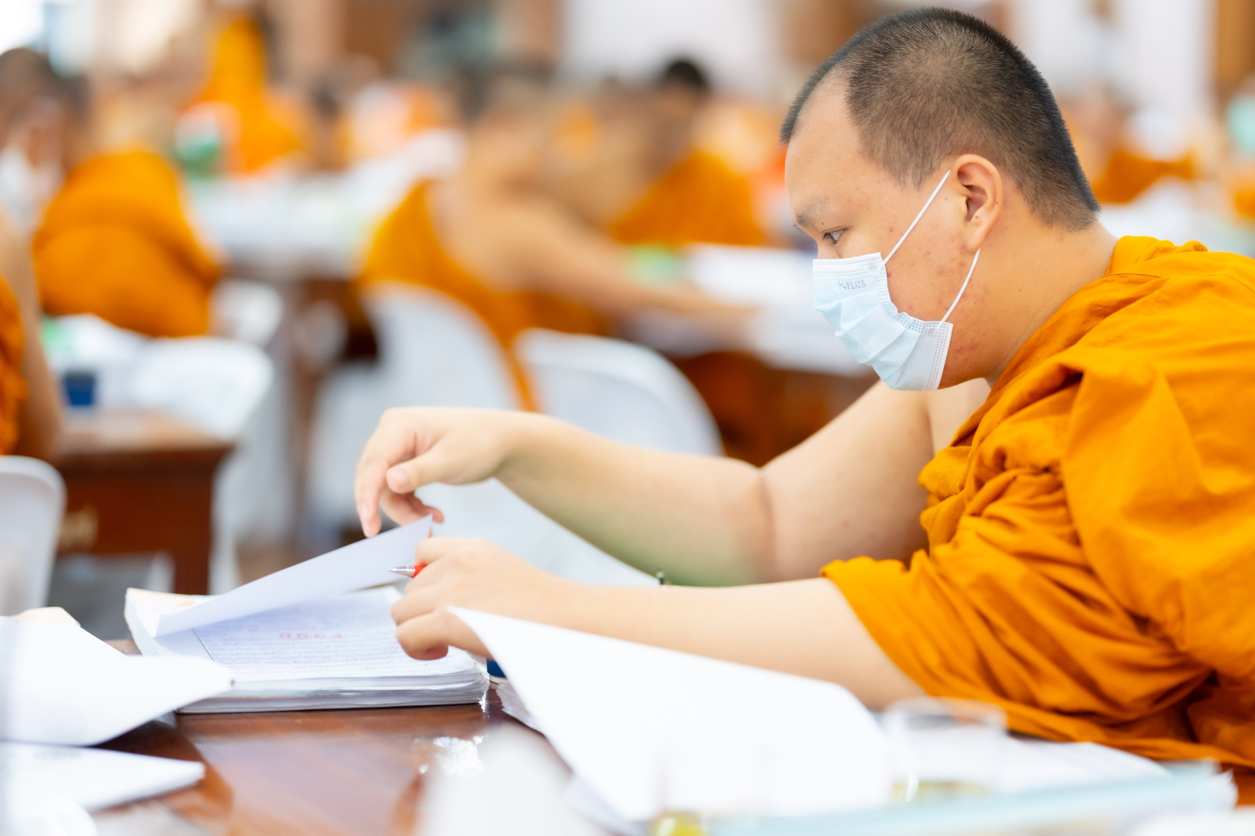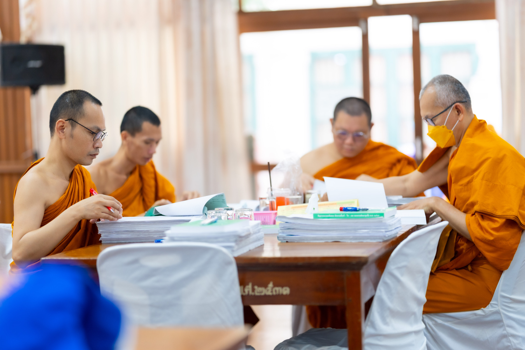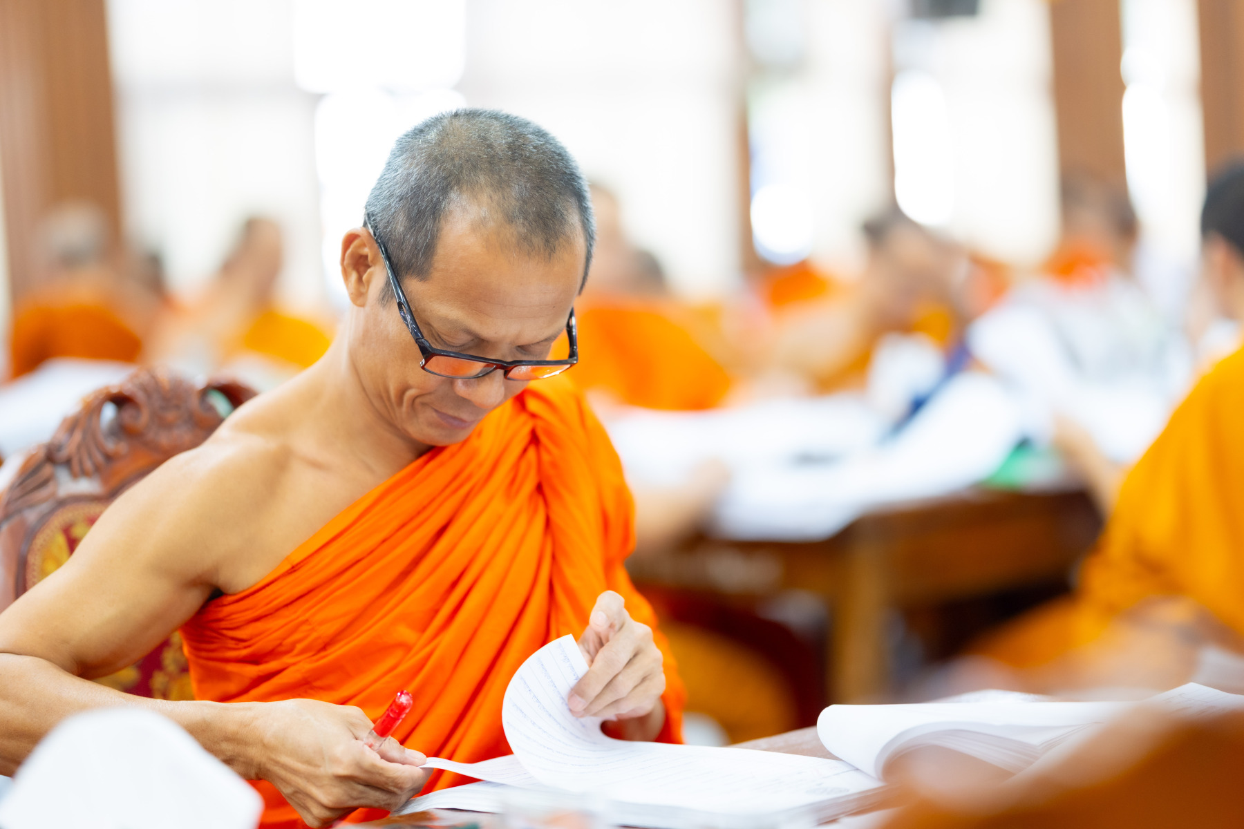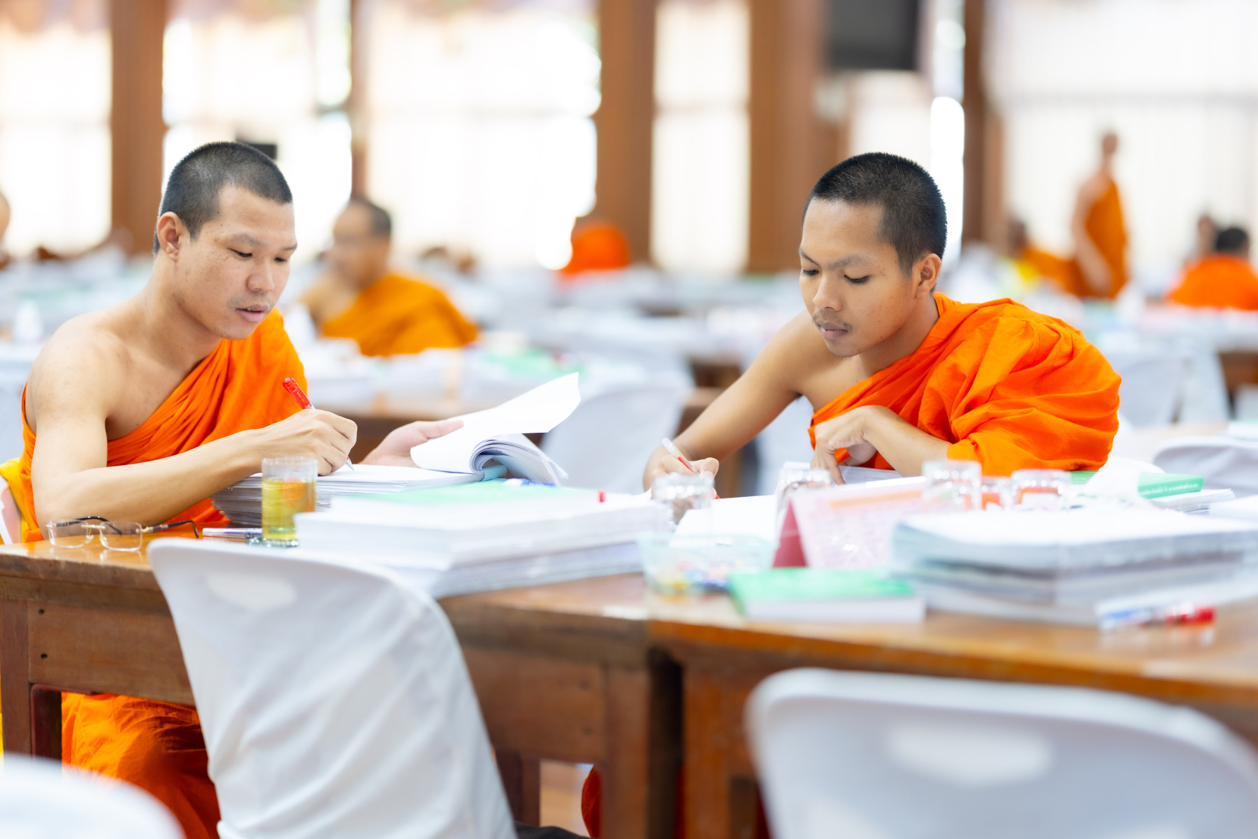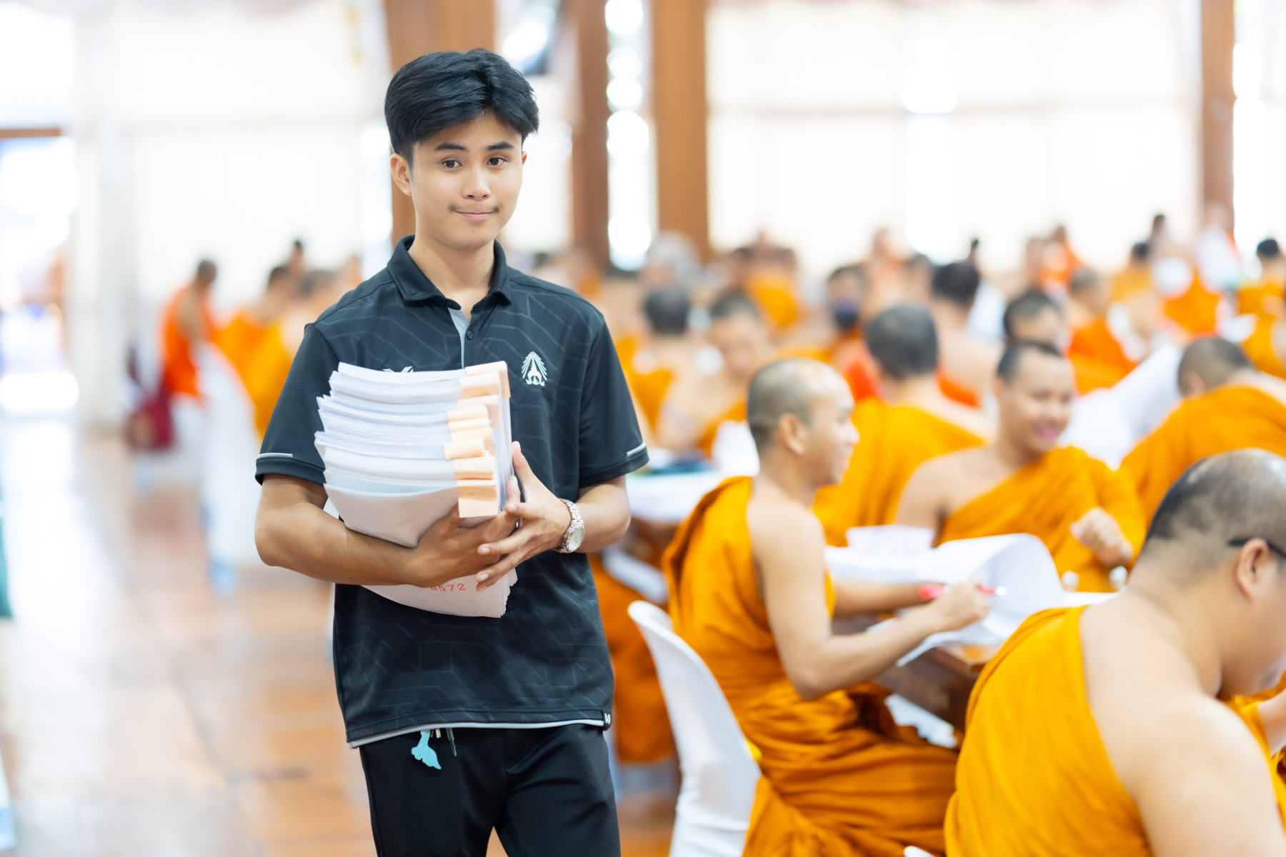 กรุงเทพมหานคร (๒๖ ธันวาคม ๒๕๖๘) – บรรยากาศการตรวจใบตอบข้อสอบธรรมสนามหลวงดำเนินไปอย่างเข้มข้นและเป็นระเบียบเรียบร้อย โดยในวันนี้ถือเป็นวันที่ ๔ ของการตรวจผลสอบนักธรรมและธรรมศึกษาชั้นเอก ประจำปีการศึกษา ๒๕๖๘ สำหรับส่วนภูมิภาค ซึ่งได้รับเมตตาจากคณะพระเถรานุเถระผู้บริหารระดับสูงของสำนักงานแม่กองธรรมสนามหลวง เดินทางมาตรวจเยี่ยมสนามตรวจเพื่อติดตามความเรียบร้อยและประทานกำลังใจแก่คณะกรรมการผู้ปฏิบัติหน้าที่