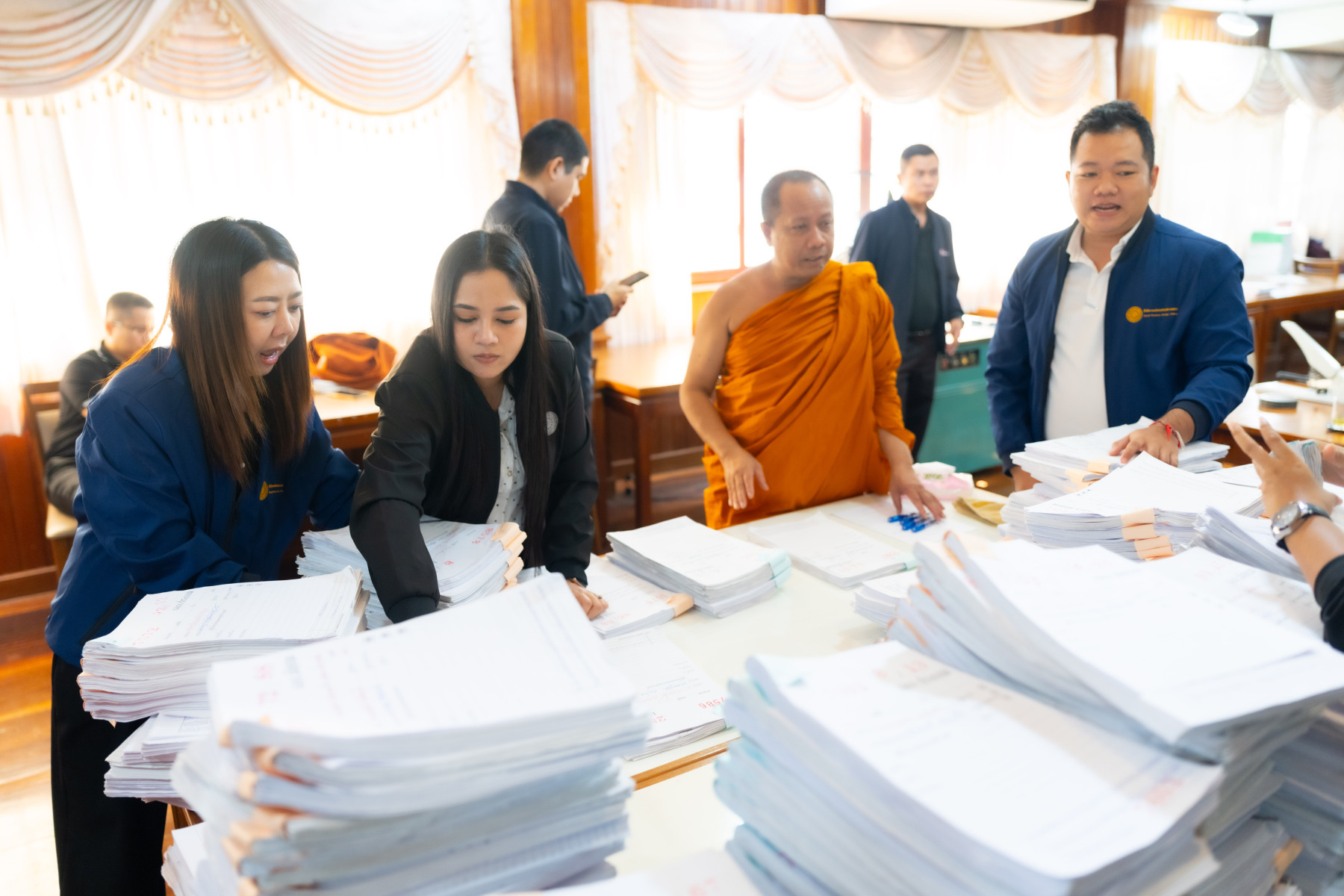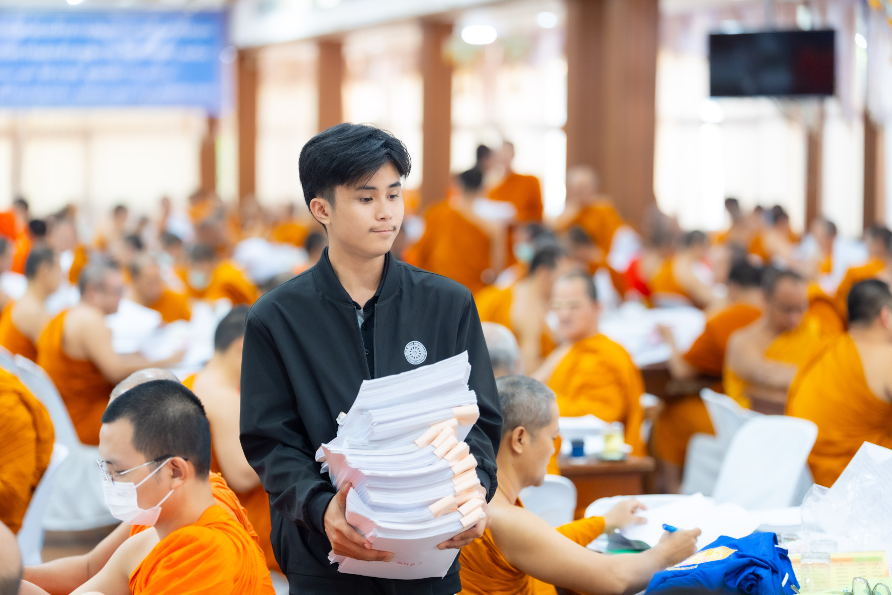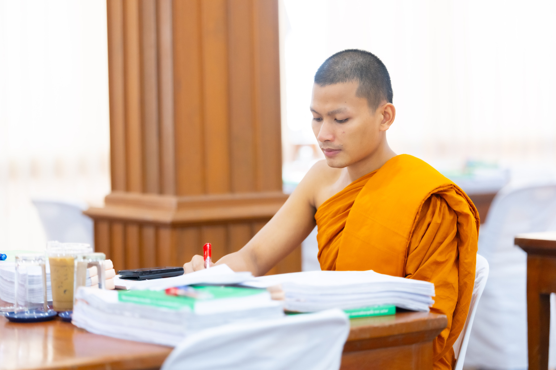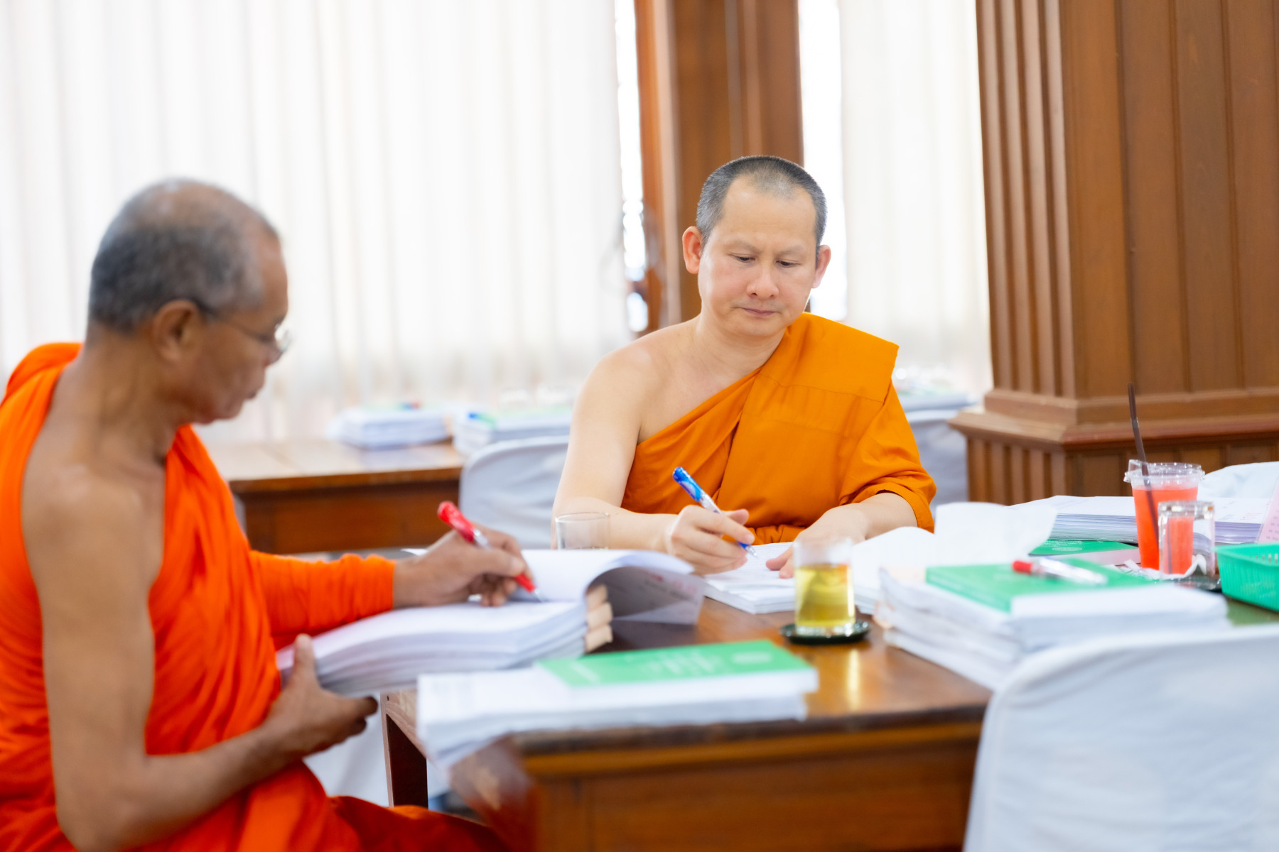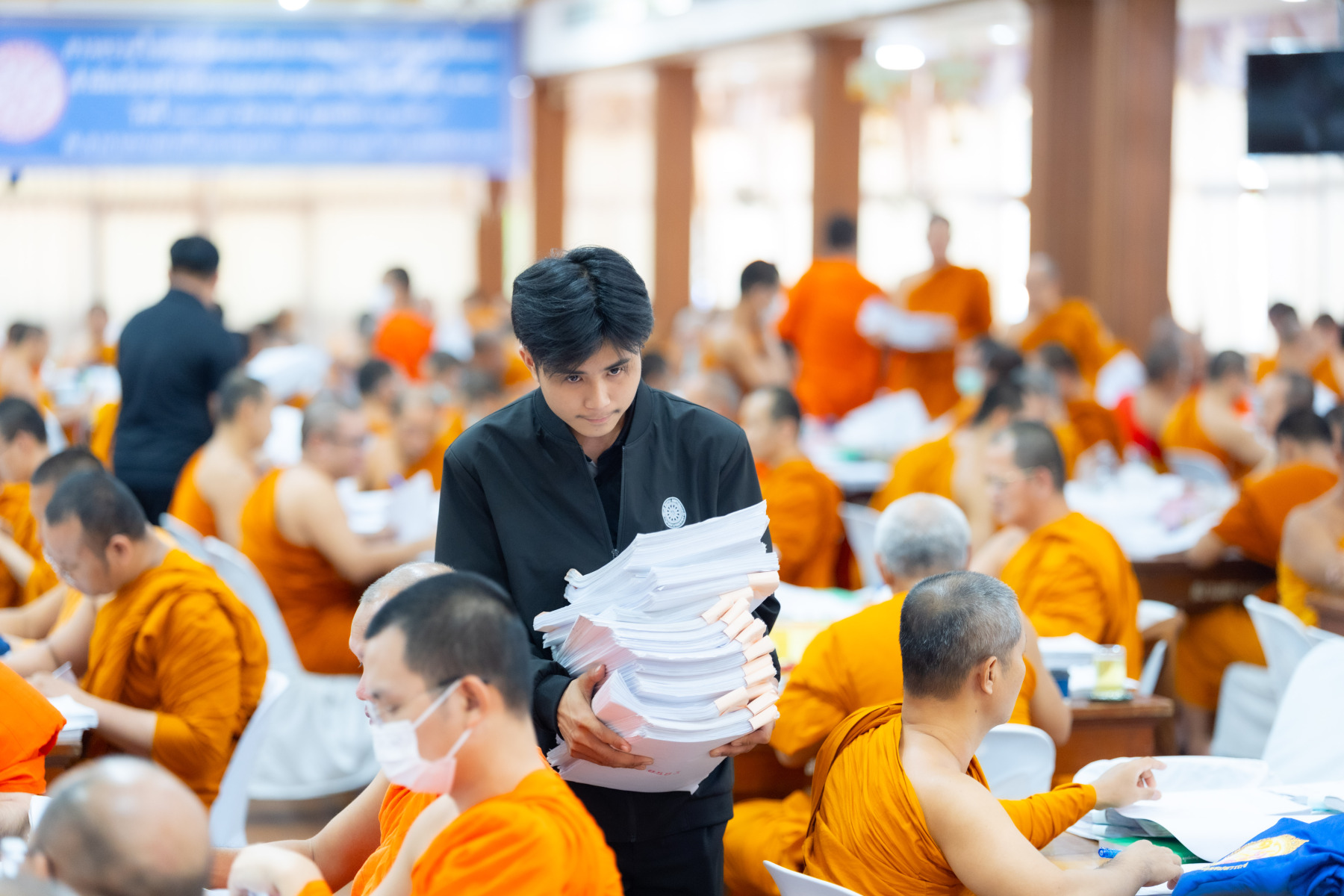 กรุงเทพมหานคร (๒๖ ธันวาคม ๒๕๖๘) – บรรยากาศการตรวจใบตอบข้อสอบธรรมสนามหลวงดำเนินไปอย่างเข้มข้นและเป็นระเบียบเรียบร้อย โดยในวันนี้ถือเป็นวันที่ ๔ ของการตรวจผลสอบนักธรรมและธรรมศึกษาชั้นเอก ประจำปีการศึกษา ๒๕๖๘ สำหรับส่วนภูมิภาค ซึ่งได้รับเมตตาจากคณะพระเถรานุเถระผู้บริหารระดับสูงของสำนักงานแม่กองธรรมสนามหลวง เดินทางมาตรวจเยี่ยมสนามตรวจเพื่อติดตามความเรียบร้อยและประทานกำลังใจแก่คณะกรรมการผู้ปฏิบัติหน้าที่