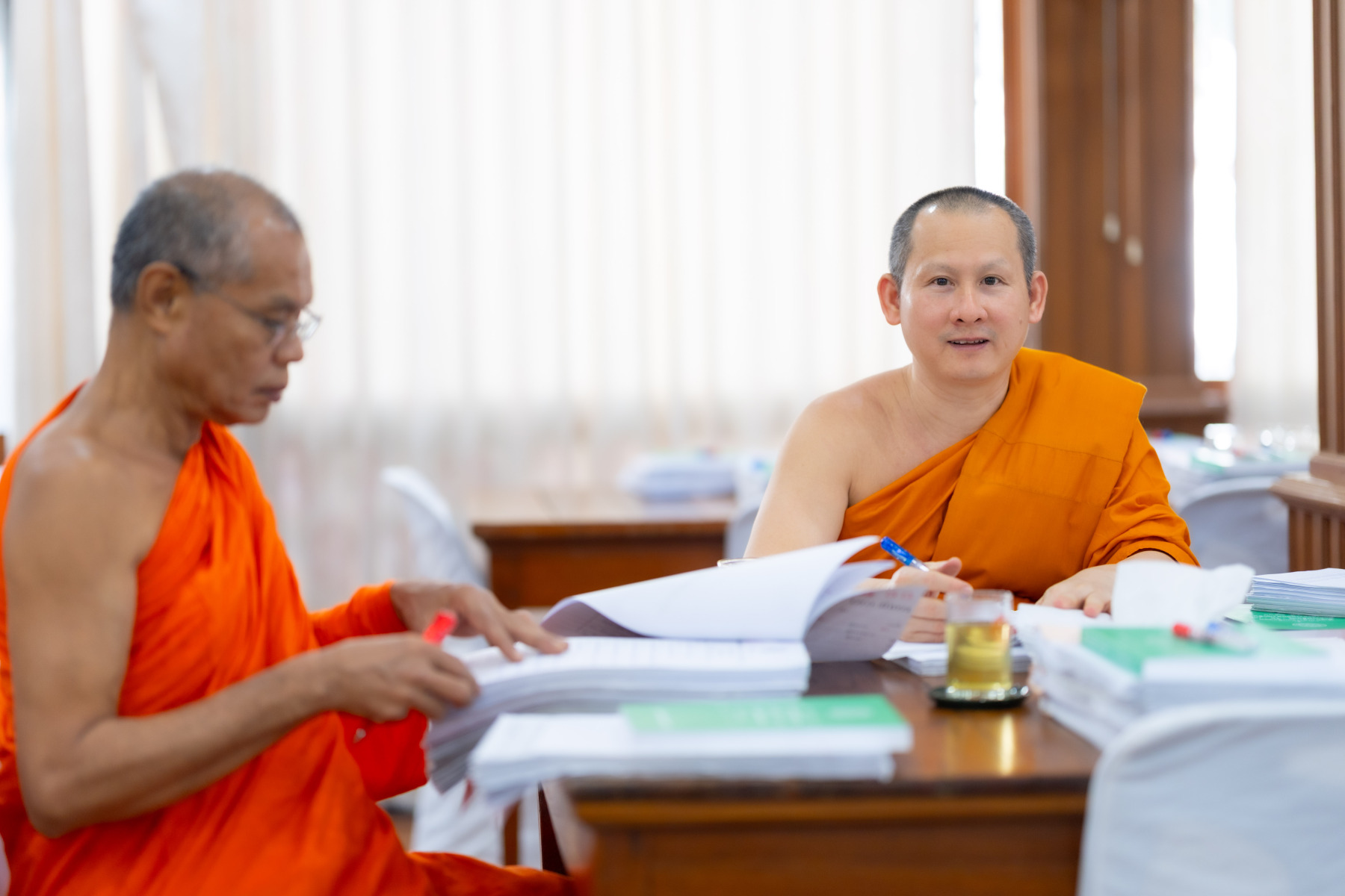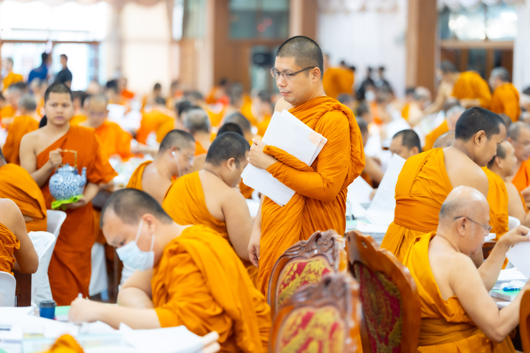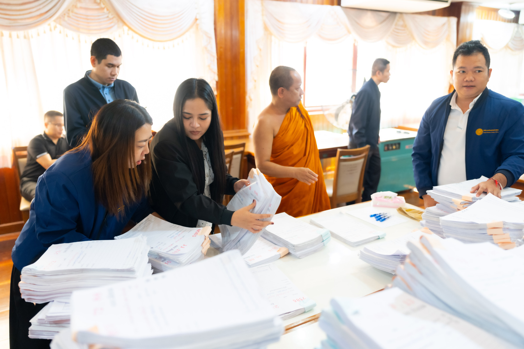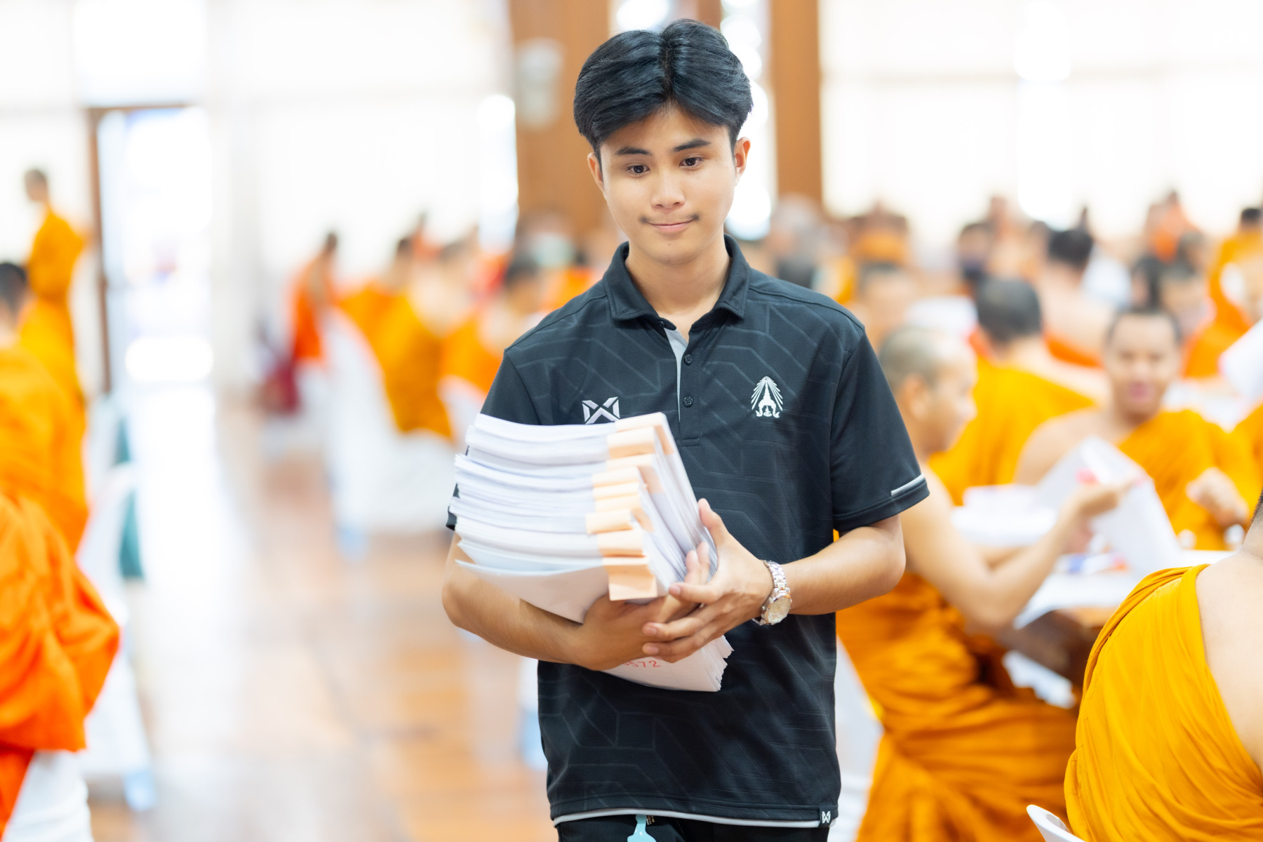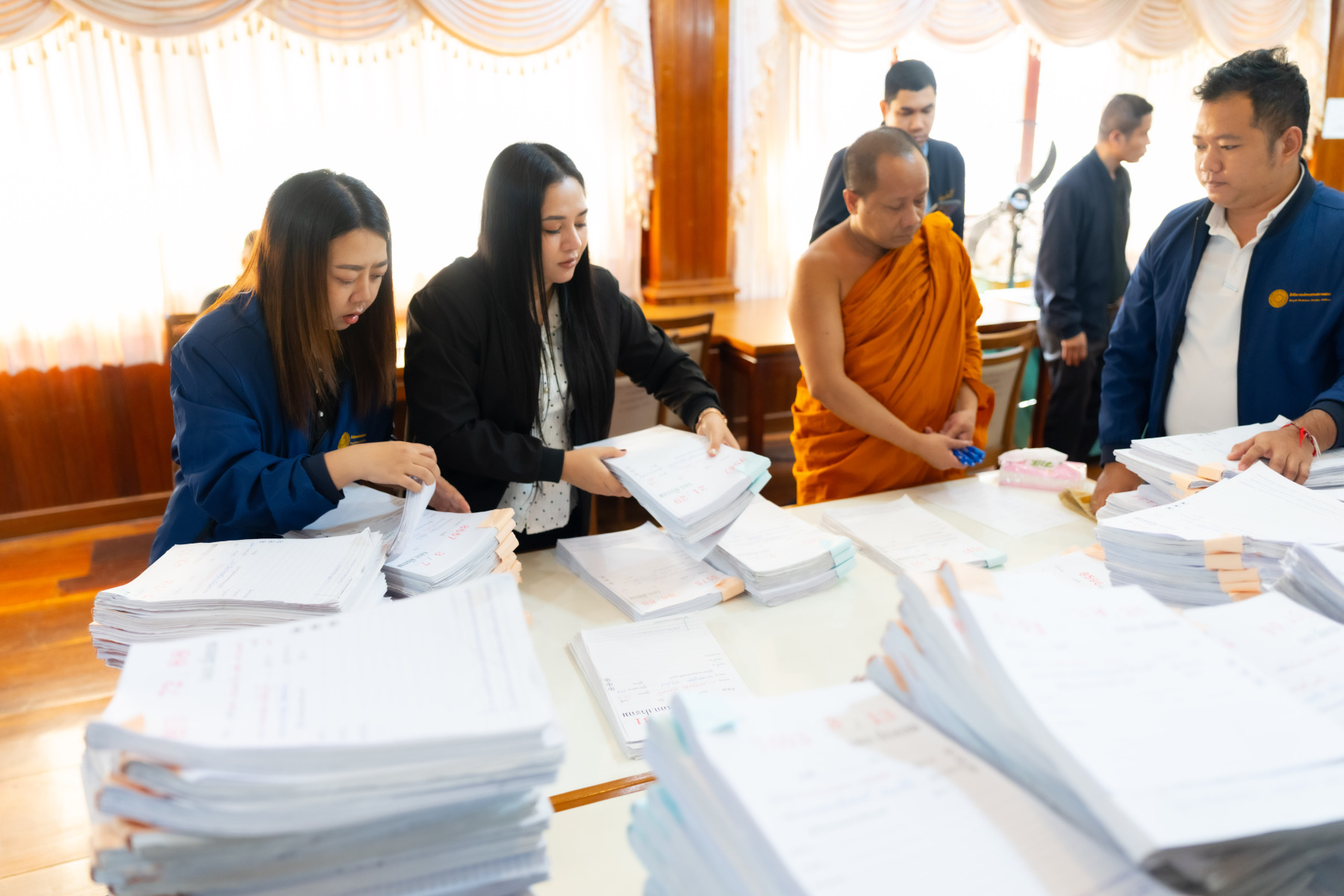 กรุงเทพมหานคร (๒๖ ธันวาคม ๒๕๖๘) – บรรยากาศการตรวจใบตอบข้อสอบธรรมสนามหลวงดำเนินไปอย่างเข้มข้นและเป็นระเบียบเรียบร้อย โดยในวันนี้ถือเป็นวันที่ ๔ ของการตรวจผลสอบนักธรรมและธรรมศึกษาชั้นเอก ประจำปีการศึกษา ๒๕๖๘ สำหรับส่วนภูมิภาค ซึ่งได้รับเมตตาจากคณะพระเถรานุเถระผู้บริหารระดับสูงของสำนักงานแม่กองธรรมสนามหลวง เดินทางมาตรวจเยี่ยมสนามตรวจเพื่อติดตามความเรียบร้อยและประทานกำลังใจแก่คณะกรรมการผู้ปฏิบัติหน้าที่