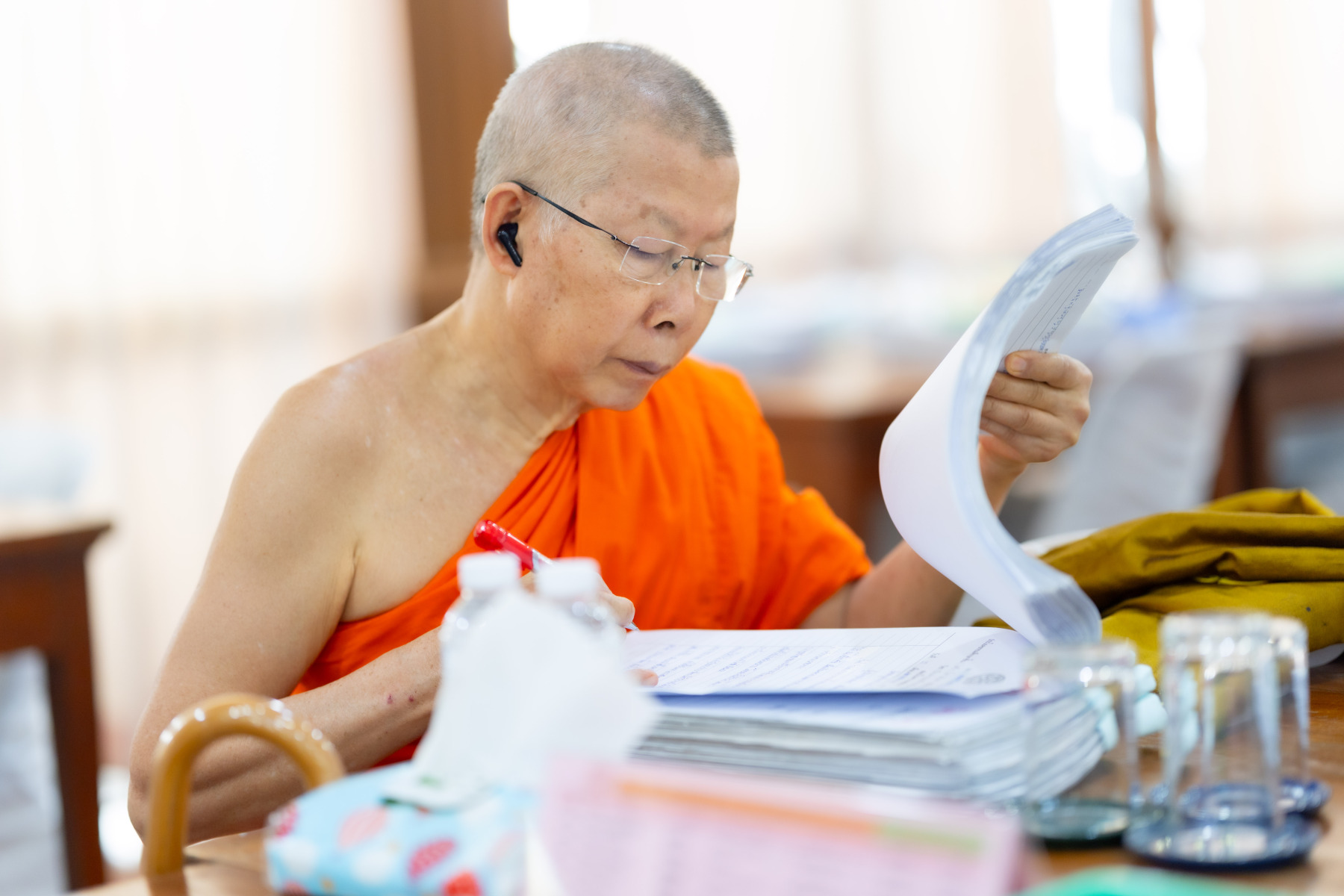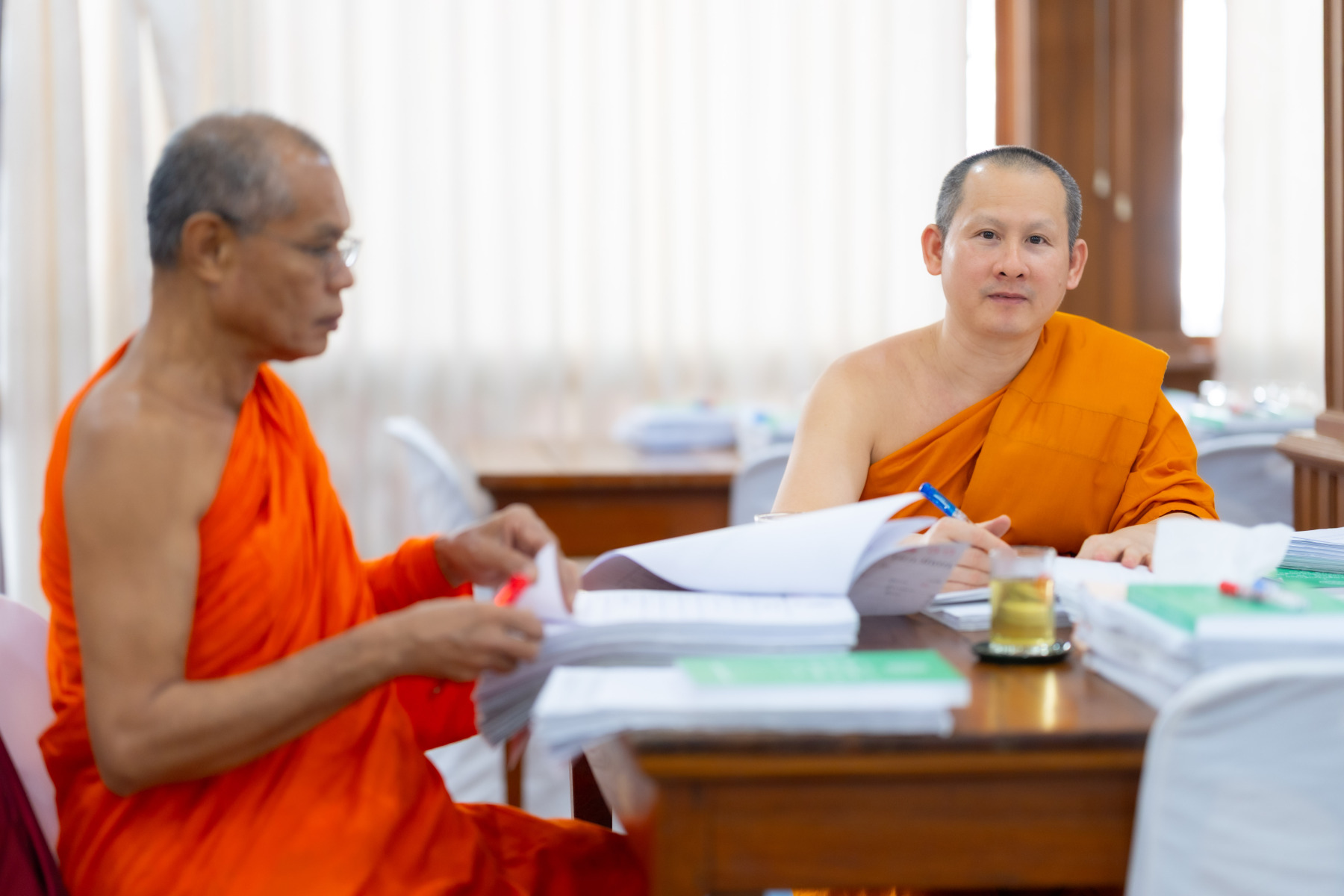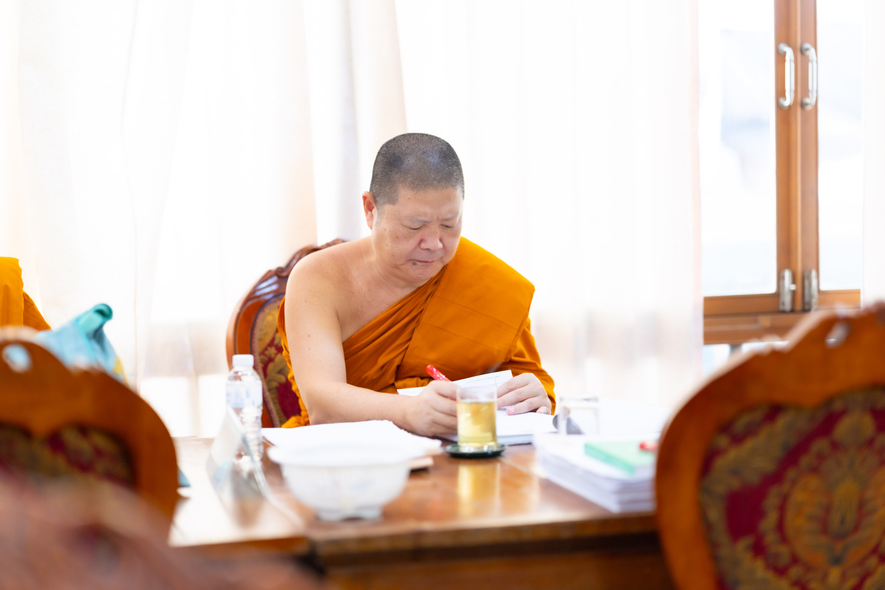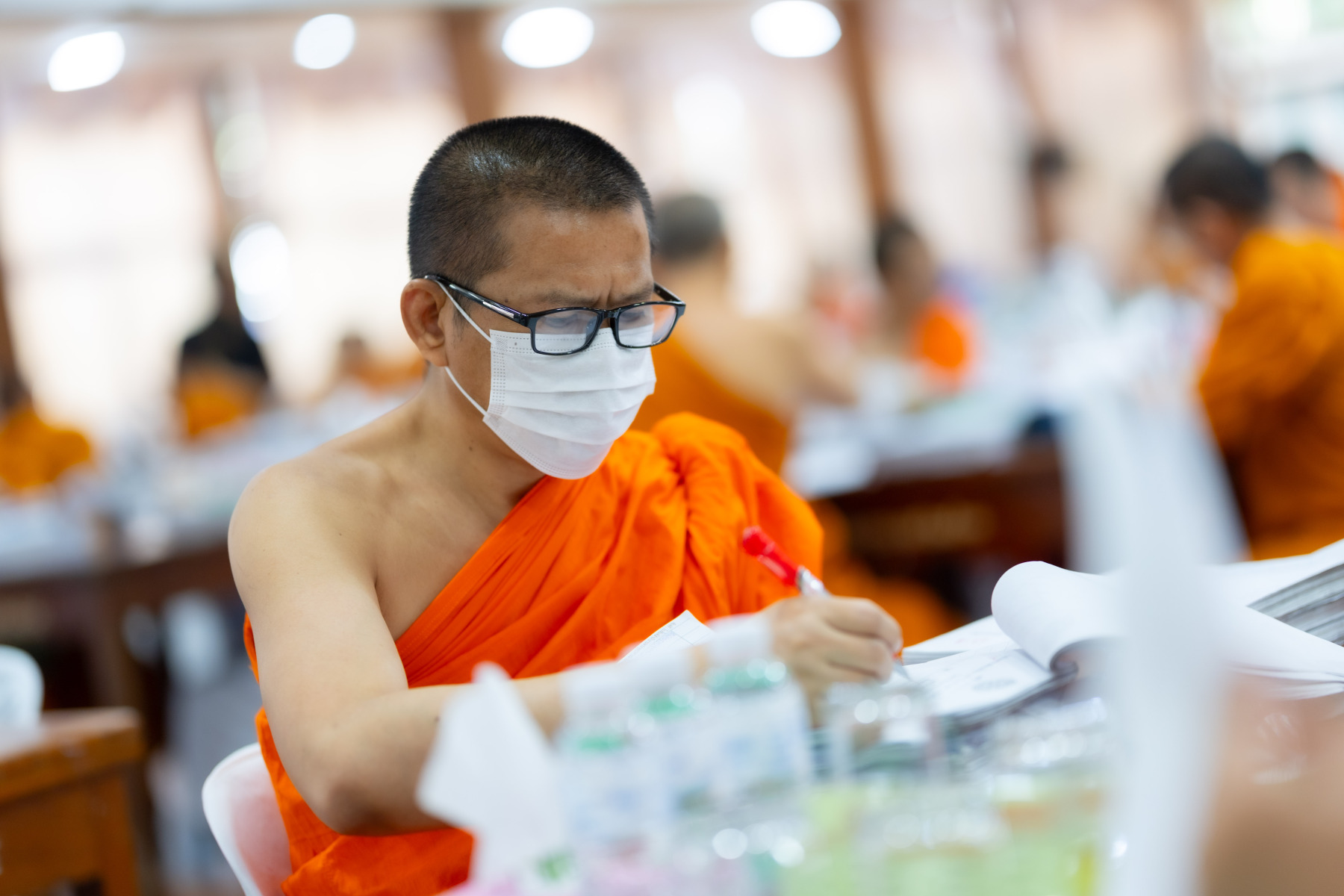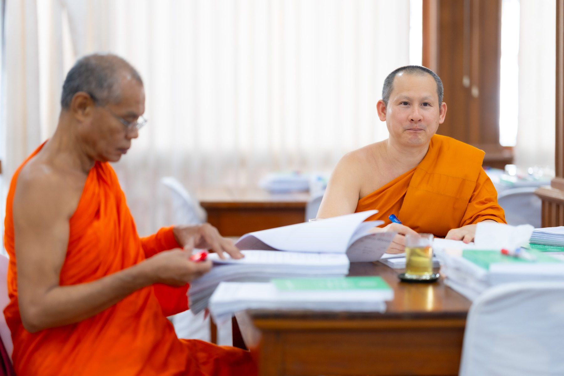 กรุงเทพมหานคร (๒๖ ธันวาคม ๒๕๖๘) – บรรยากาศการตรวจใบตอบข้อสอบธรรมสนามหลวงดำเนินไปอย่างเข้มข้นและเป็นระเบียบเรียบร้อย โดยในวันนี้ถือเป็นวันที่ ๔ ของการตรวจผลสอบนักธรรมและธรรมศึกษาชั้นเอก ประจำปีการศึกษา ๒๕๖๘ สำหรับส่วนภูมิภาค ซึ่งได้รับเมตตาจากคณะพระเถรานุเถระผู้บริหารระดับสูงของสำนักงานแม่กองธรรมสนามหลวง เดินทางมาตรวจเยี่ยมสนามตรวจเพื่อติดตามความเรียบร้อยและประทานกำลังใจแก่คณะกรรมการผู้ปฏิบัติหน้าที่