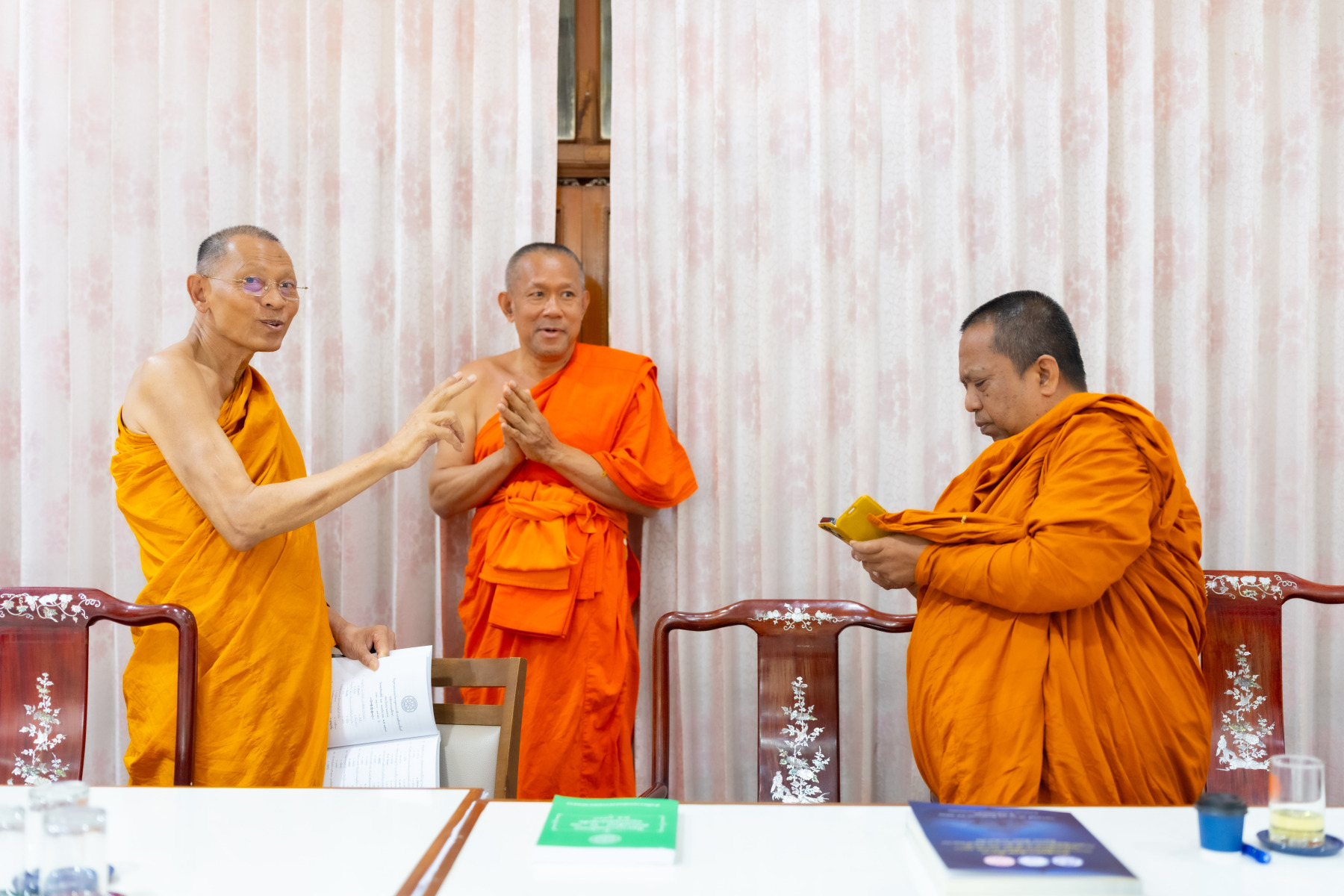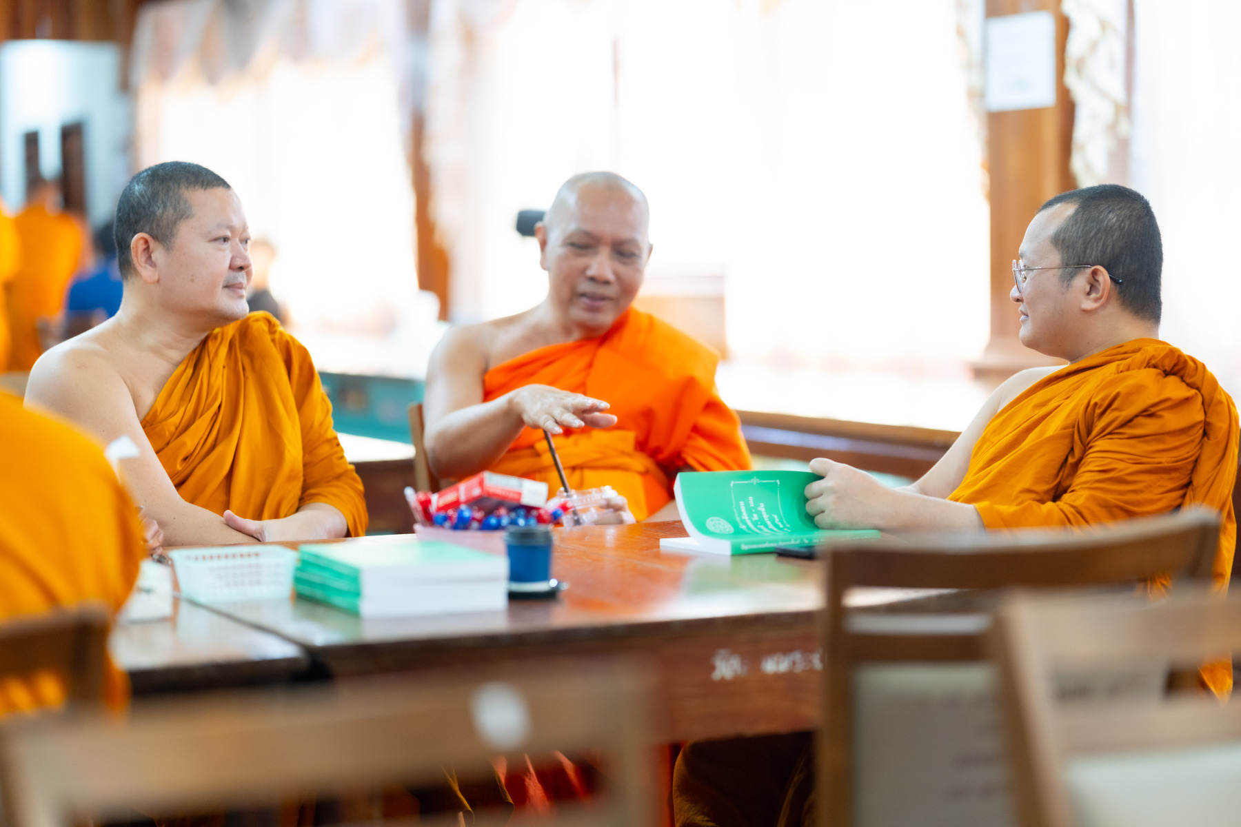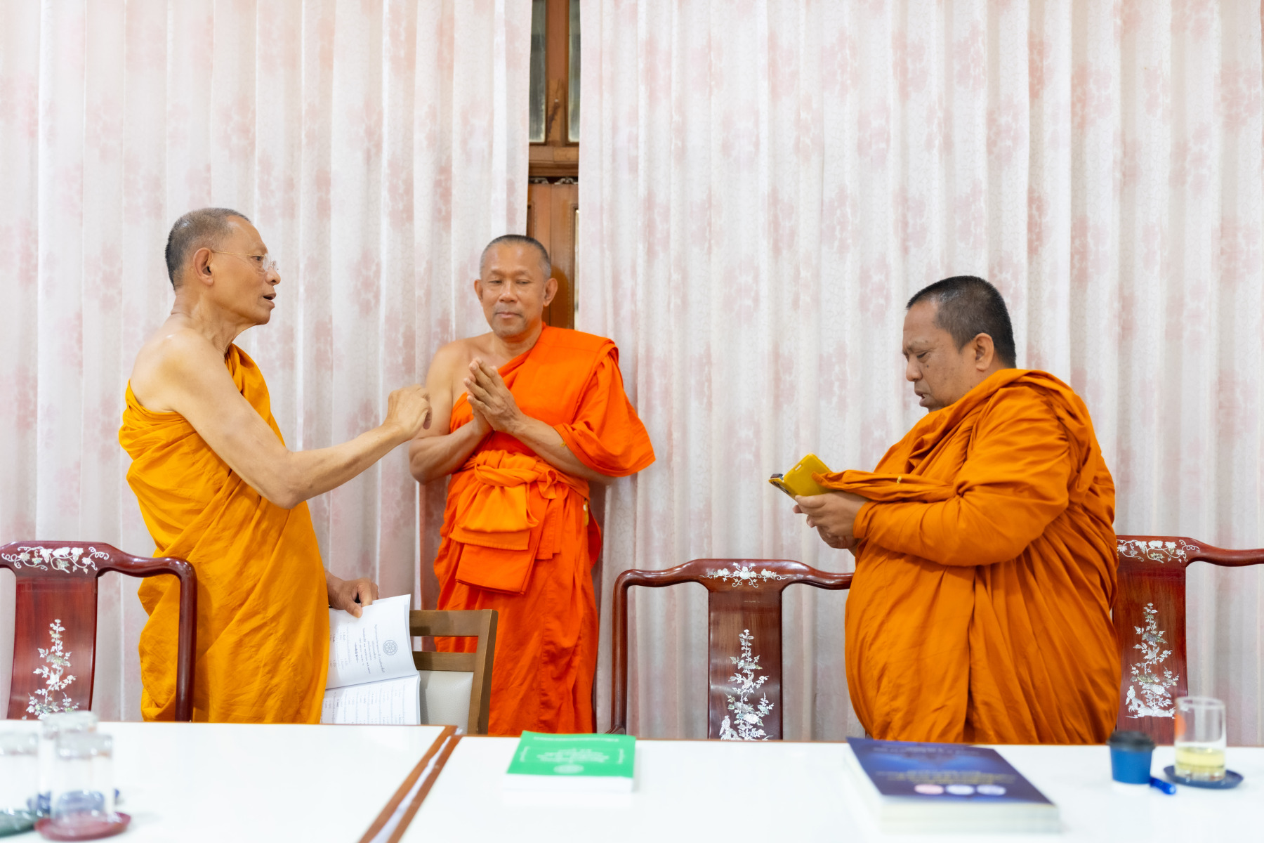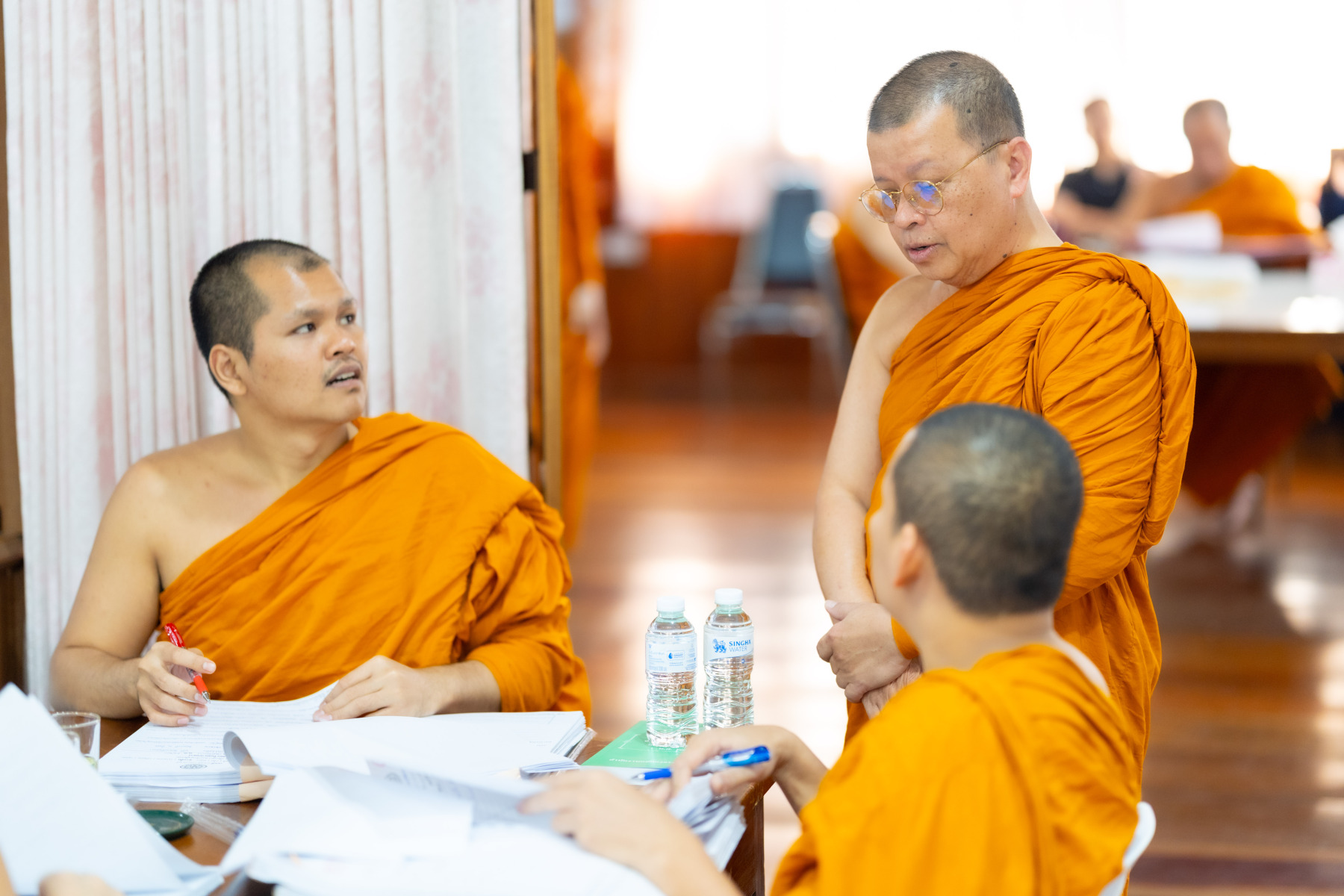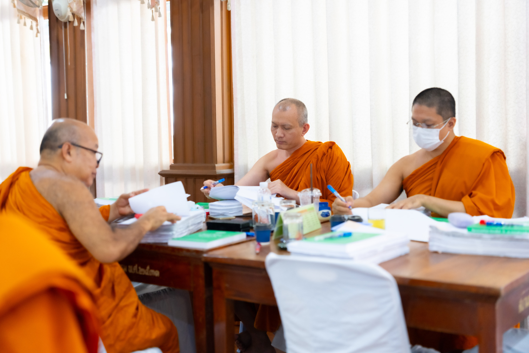 พระเถรานุเถระคณะผู้บริหารแม่กองธรรมสนามหลวง เมตตาตรวจเยี่ยมและให้กำลังใจคณะกรรมการตรวจใบตอบธรรมสนามหลวง ชั้นเอก (ส่วนภูมิภาค) ประจำปี ๒๕๖๘ ณ วัดสามพระยา วรวิหาร