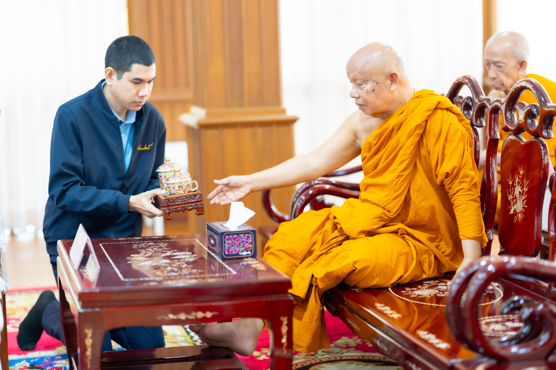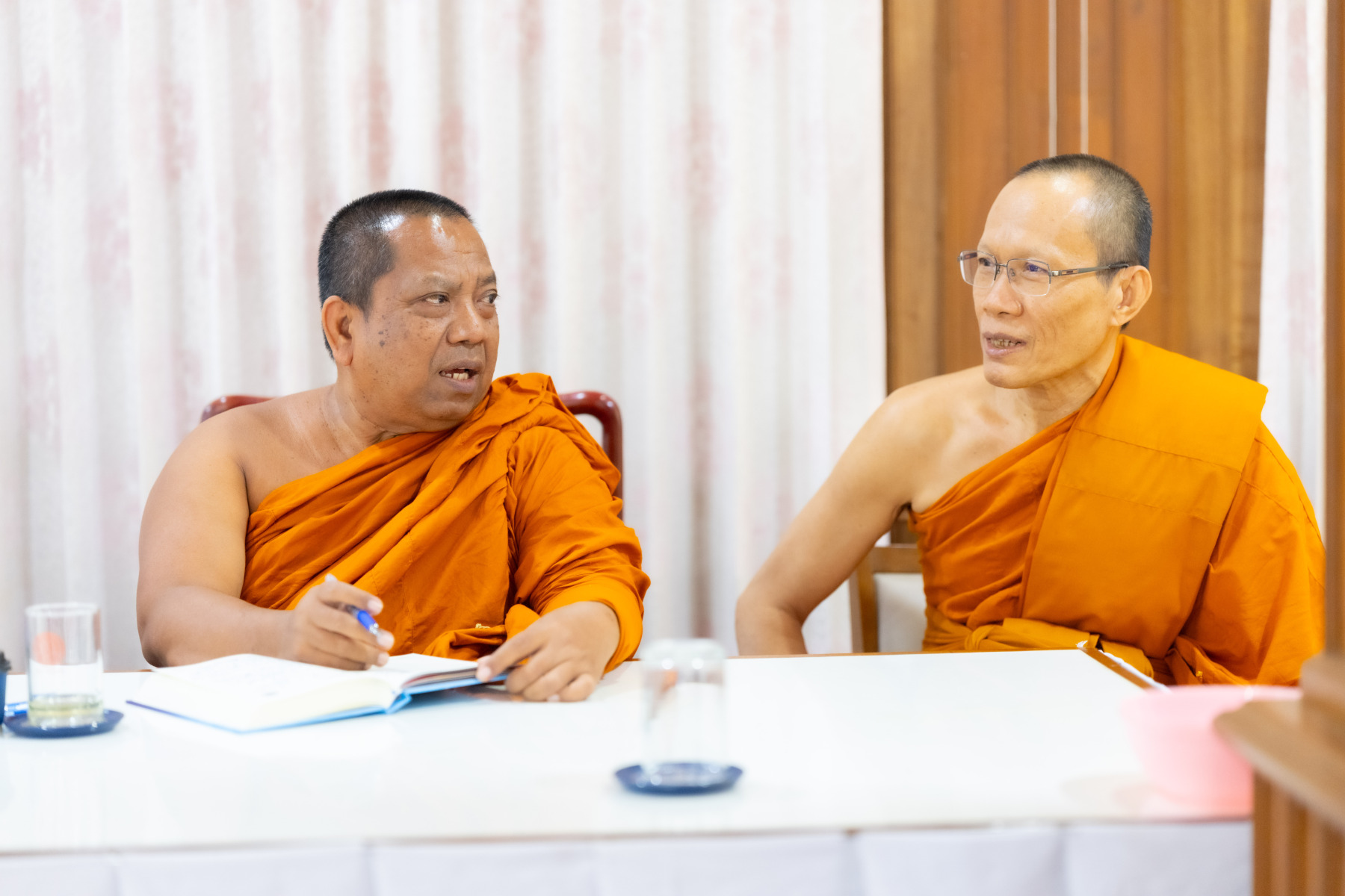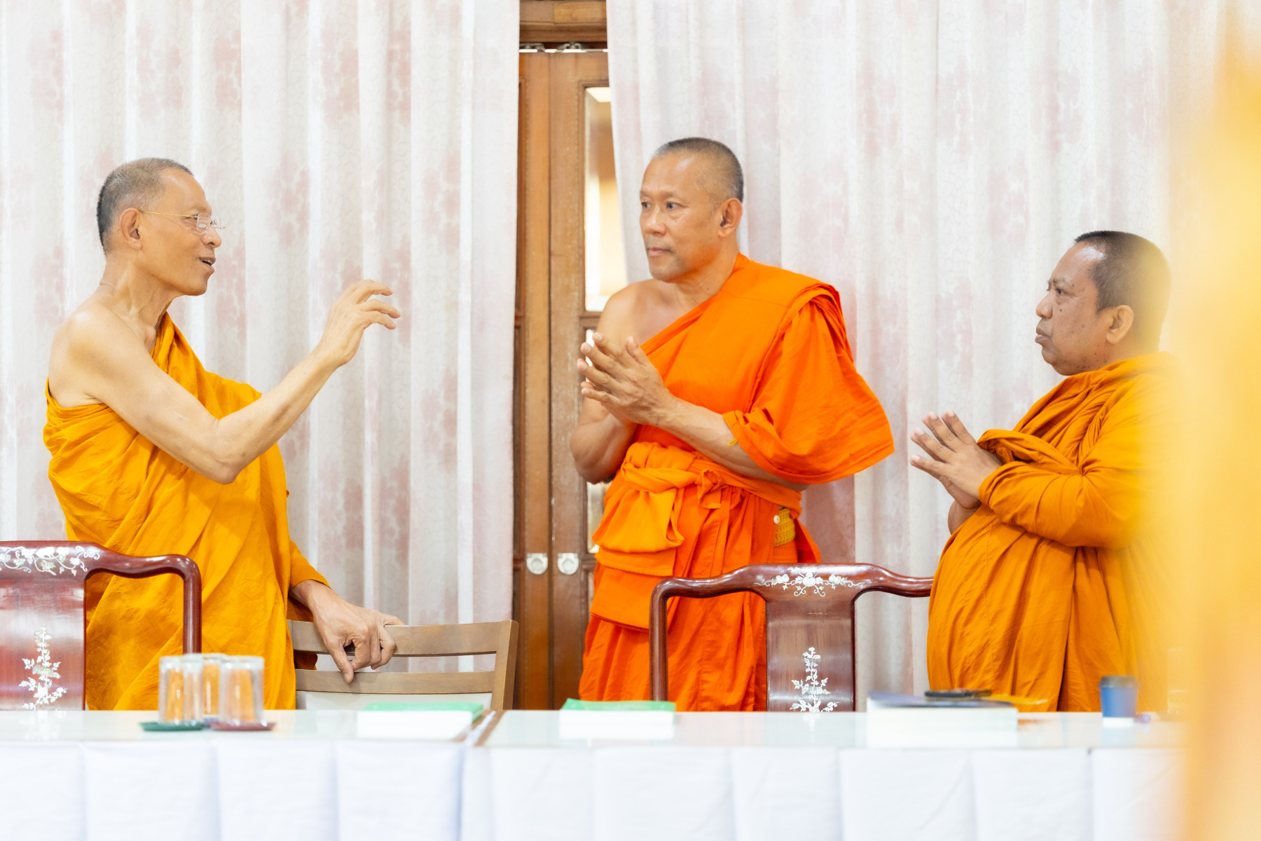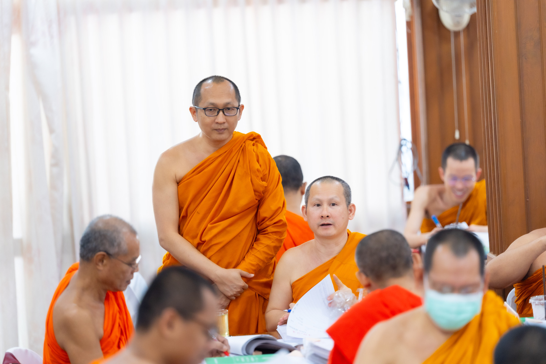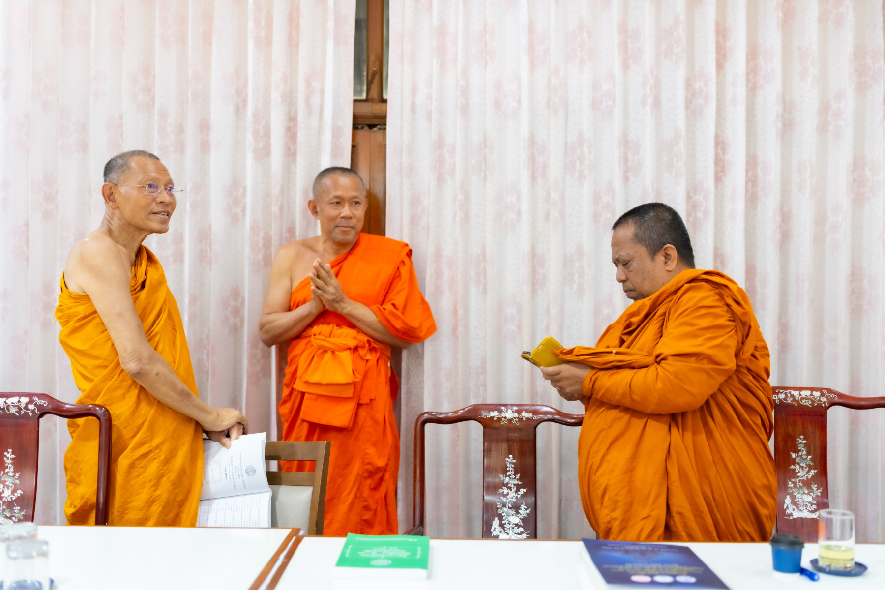 พระเถรานุเถระคณะผู้บริหารแม่กองธรรมสนามหลวง เมตตาตรวจเยี่ยมและให้กำลังใจคณะกรรมการตรวจใบตอบธรรมสนามหลวง ชั้นเอก (ส่วนภูมิภาค) ประจำปี ๒๕๖๘ ณ วัดสามพระยา วรวิหาร