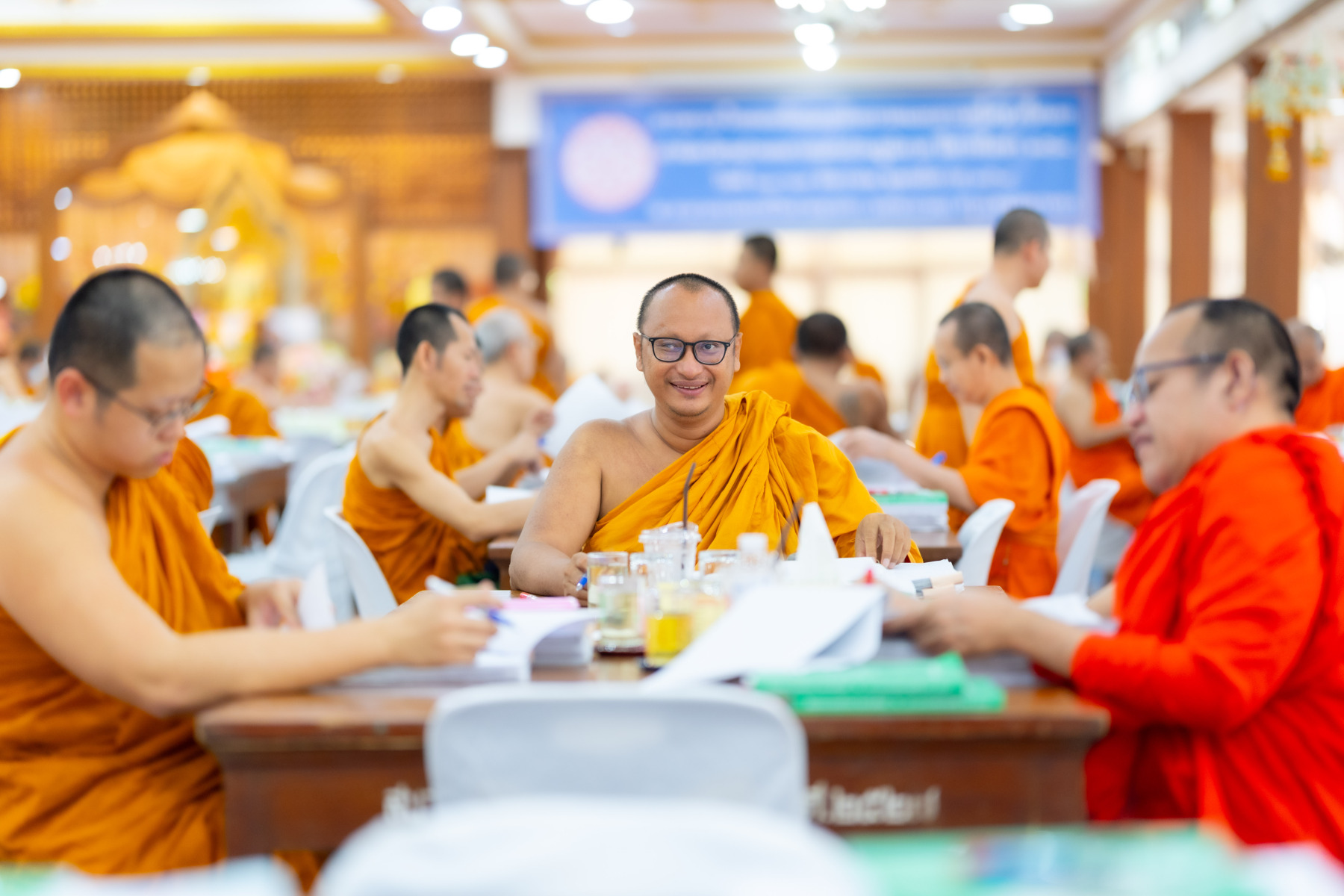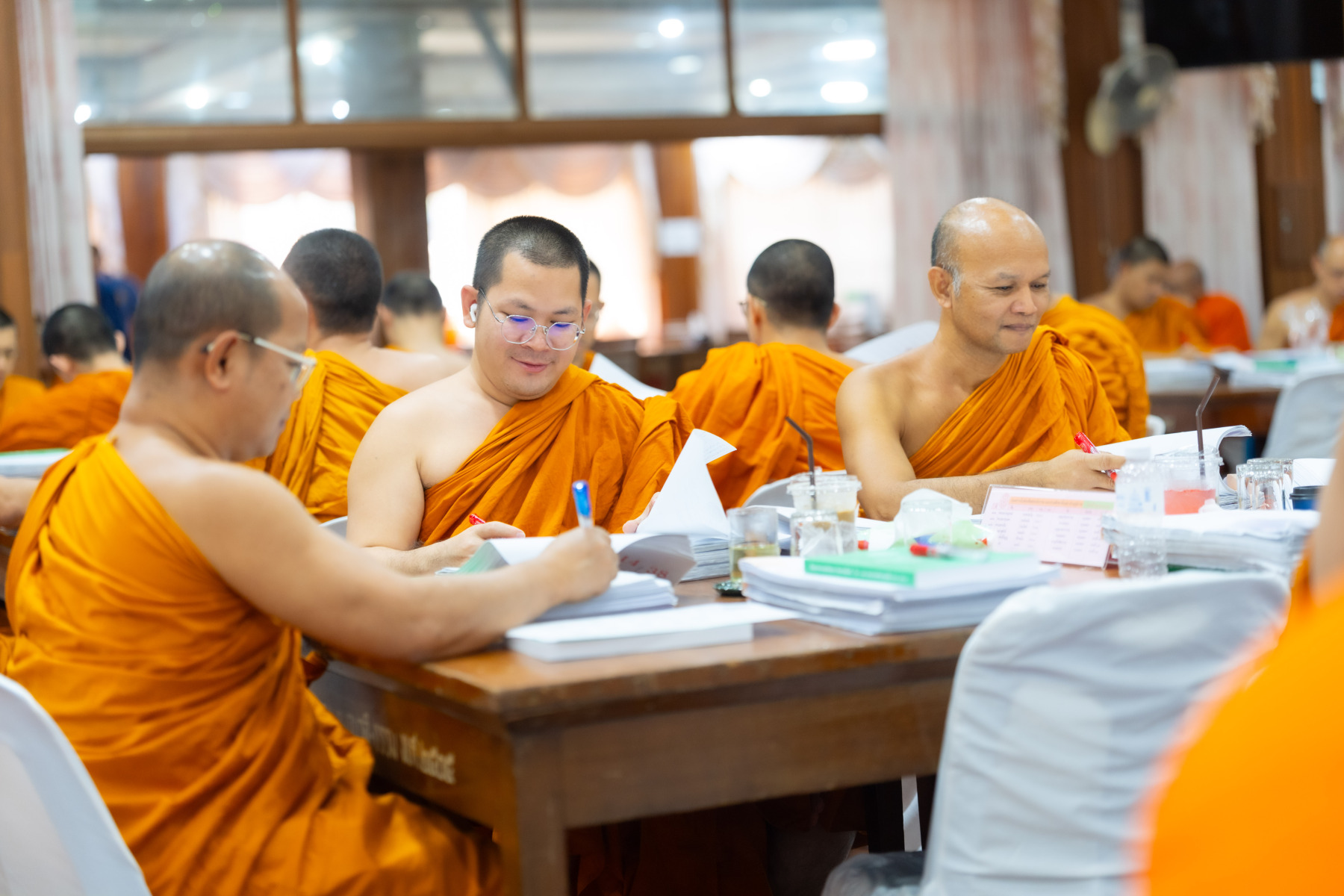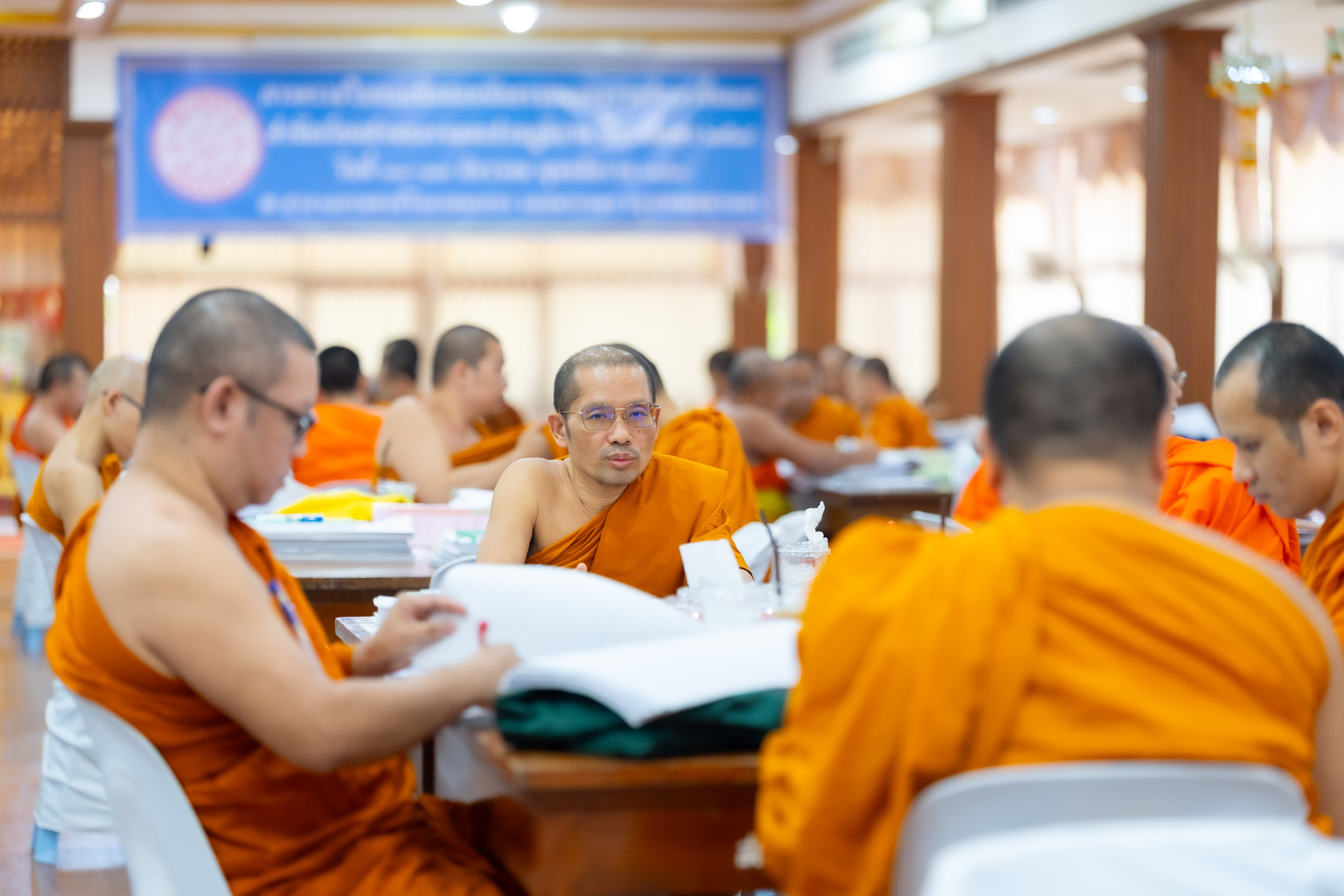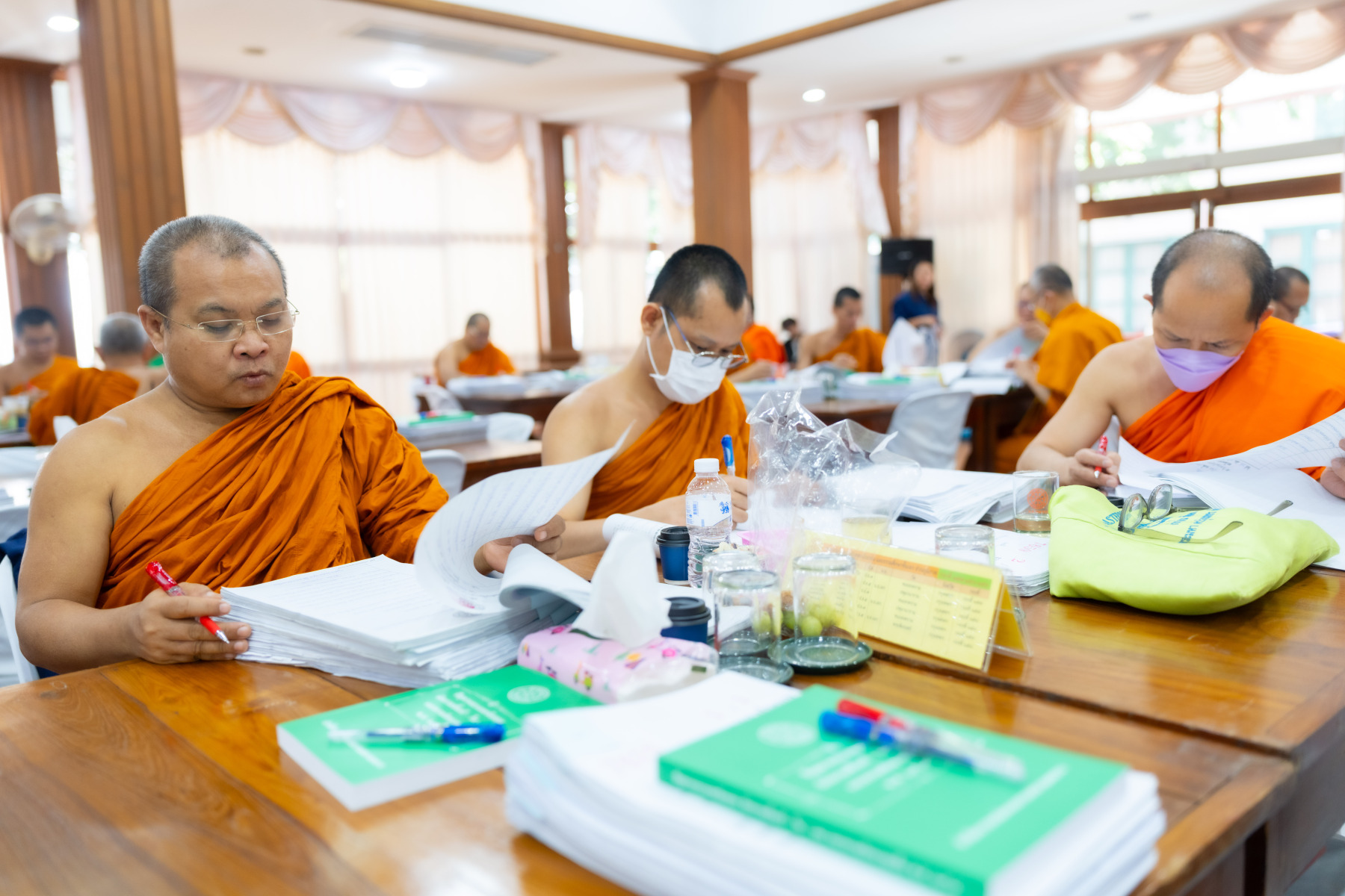 พระเถรานุเถระคณะผู้บริหารแม่กองธรรมสนามหลวง เมตตาตรวจเยี่ยมและให้กำลังใจคณะกรรมการตรวจใบตอบธรรมสนามหลวง ชั้นเอก (ส่วนภูมิภาค) ประจำปี ๒๕๖๘ ณ วัดสามพระยา วรวิหาร