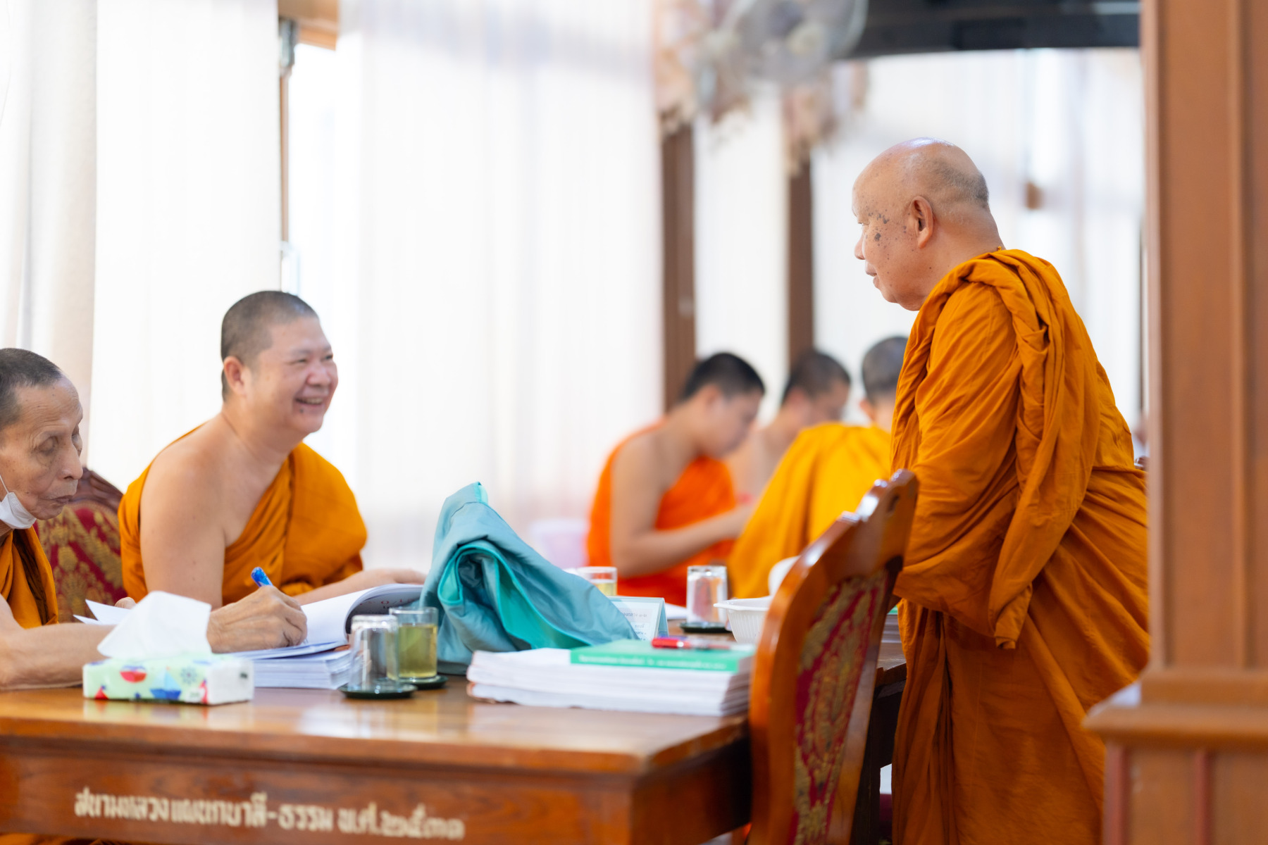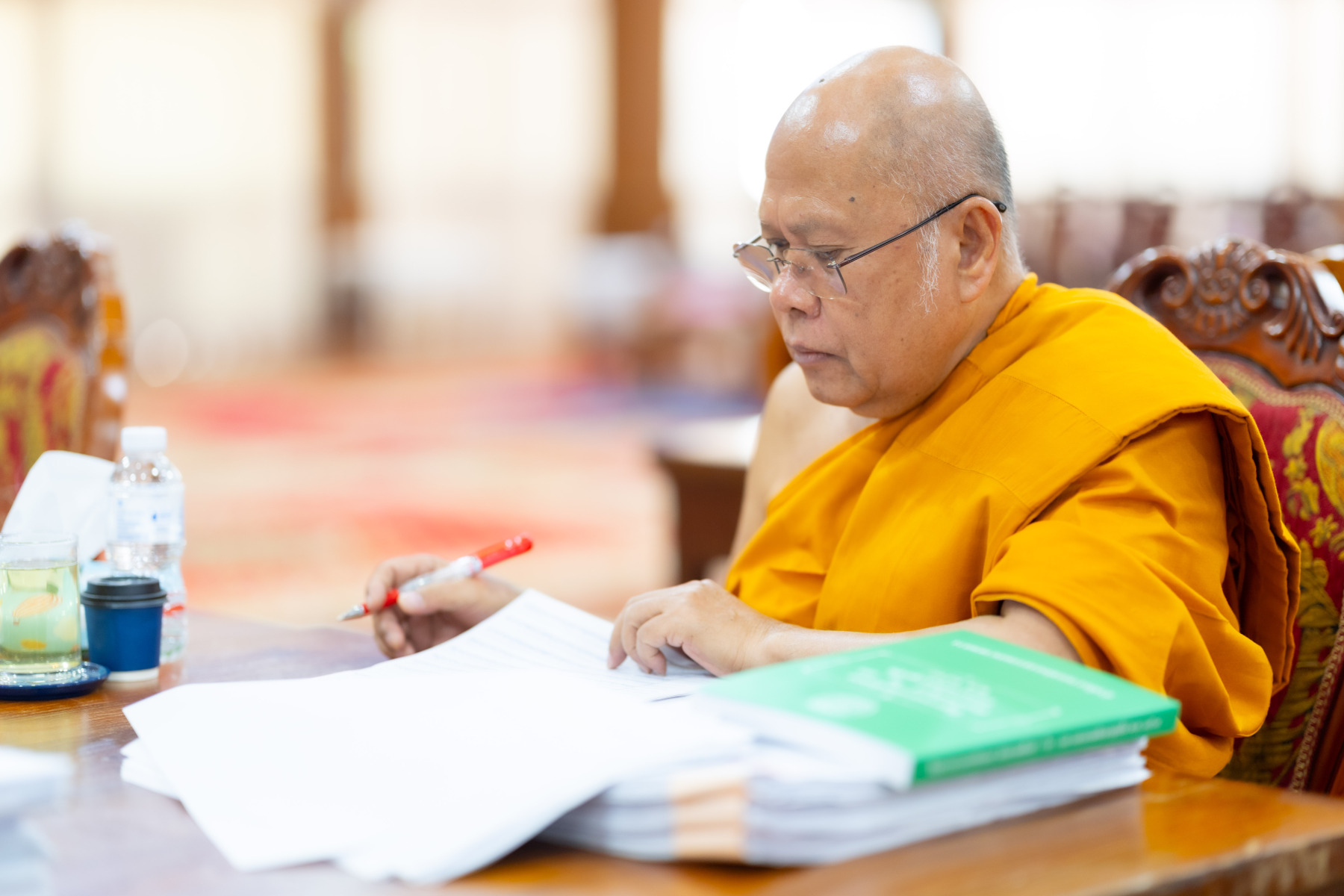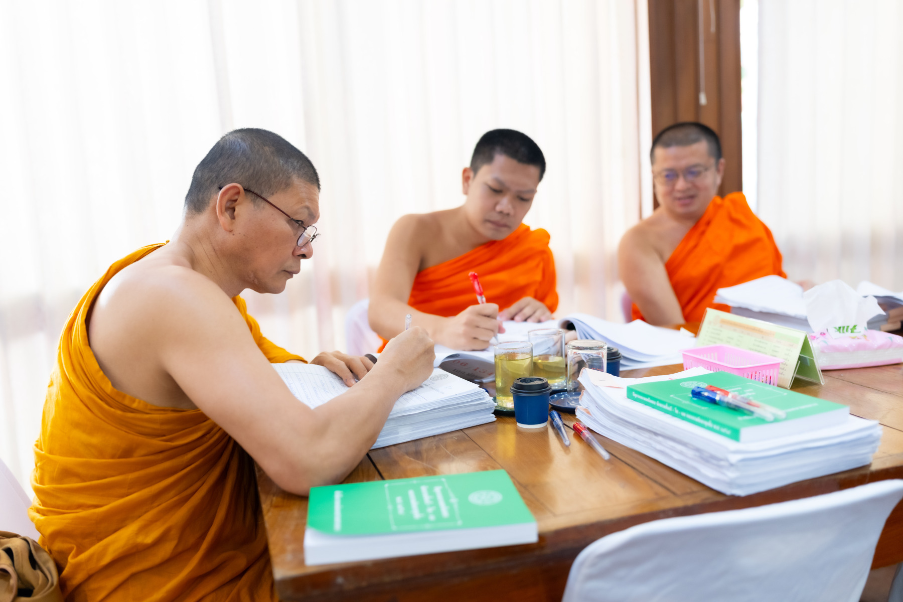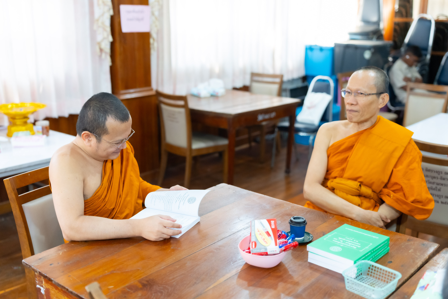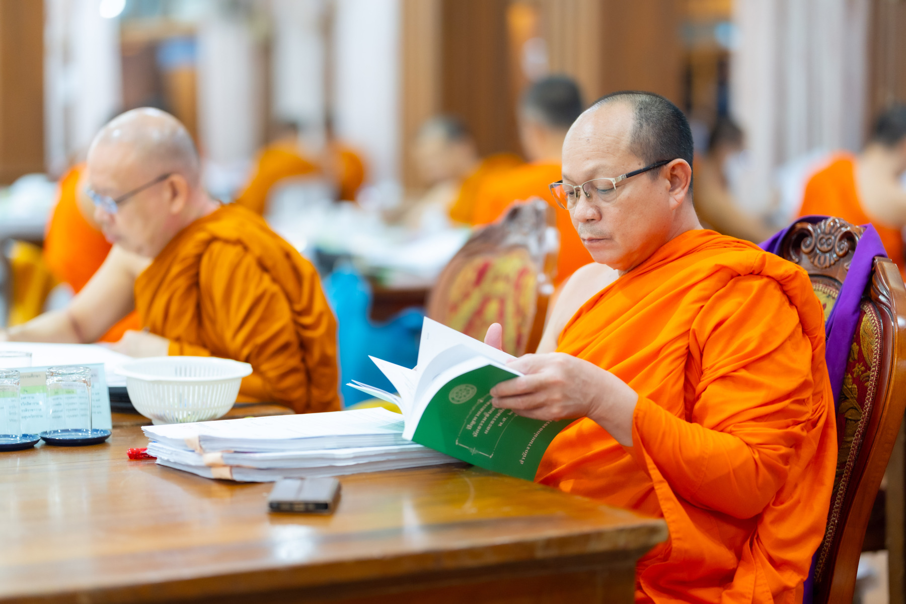 พระเถรานุเถระคณะผู้บริหารแม่กองธรรมสนามหลวง เมตตาตรวจเยี่ยมและให้กำลังใจคณะกรรมการตรวจใบตอบธรรมสนามหลวง ชั้นเอก (ส่วนภูมิภาค) ประจำปี ๒๕๖๘ ณ วัดสามพระยา วรวิหาร