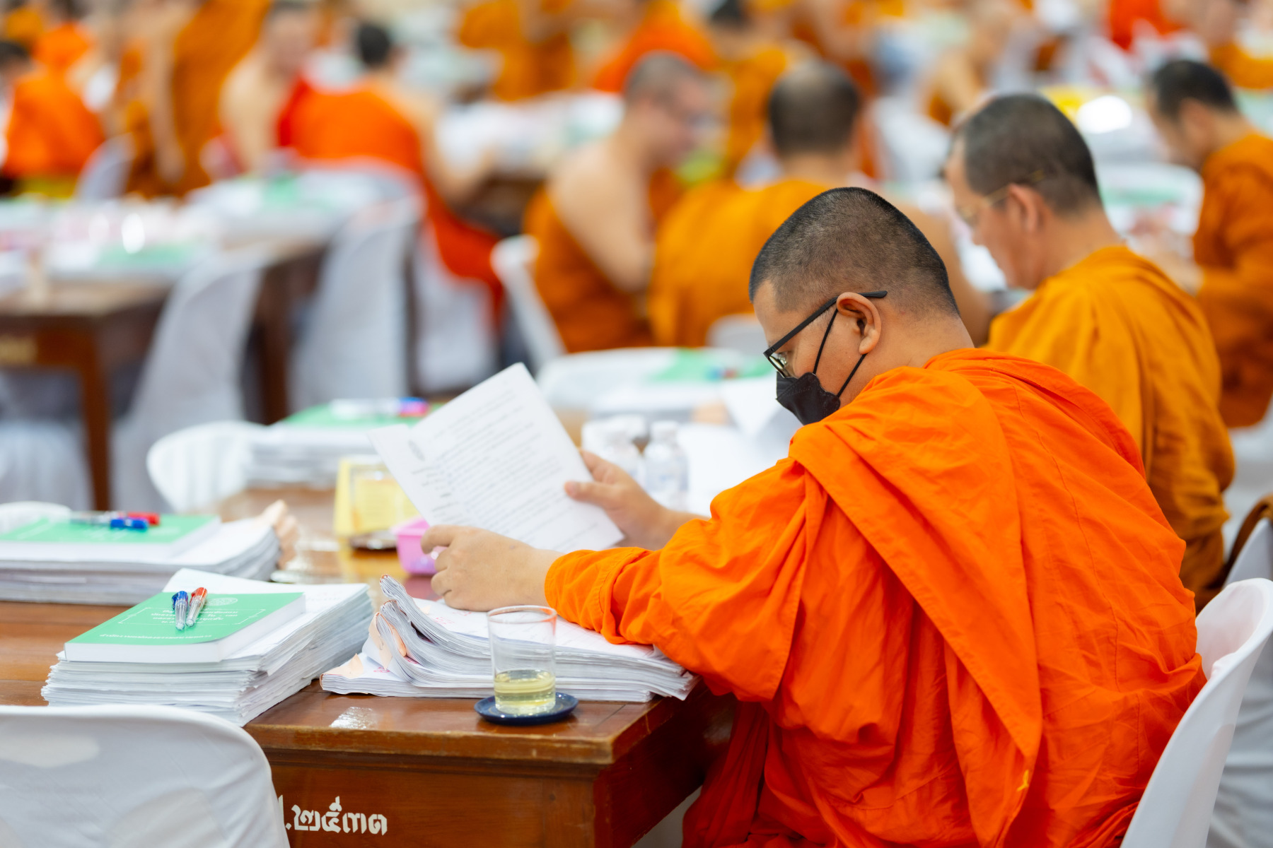กรุงเทพมหานคร (๒๖ ธันวาคม ๒๕๖๘) – บรรยากาศการตรวจใบตอบข้อสอบธรรมสนามหลวงดำเนินไปอย่างเข้มข้นและเป็นระเบียบเรียบร้อย โดยในวันนี้ถือเป็นวันที่ ๔ ของการตรวจผลสอบนักธรรมและธรรมศึกษาชั้นเอก ประจำปีการศึกษา ๒๕๖๘ สำหรับส่วนภูมิภาค ซึ่งได้รับเมตตาจากคณะพระเถรานุเถระผู้บริหารระดับสูงของสำนักงานแม่กองธรรมสนามหลวง เดินทางมาตรวจเยี่ยมสนามตรวจเพื่อติดตามความเรียบร้อยและประทานกำลังใจแก่คณะกรรมการผู้ปฏิบัติหน้าที่