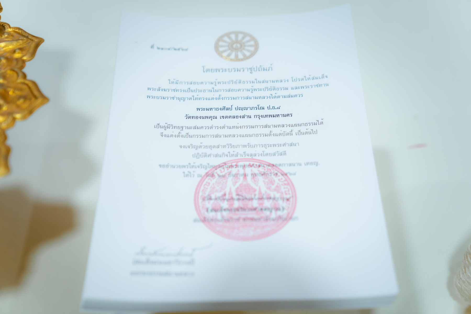 ในโอกาสนี้ ประธานในพิธีได้เมตตามอบใบตราตั้งกรรมการตรวจธรรมสนามหลวงแก่พระสังฆาธิการและพระเถรานุเถระผู้ทรงคุณวุฒิที่ได้รับแต่งตั้งใหม่ในปีการศึกษา ๒๕๖๘ จำนวน ๔๕ รูป เพื่อเป็นการประกาศเกียรติคุณและแต่งตั้งผู้ทำหน้าที่คัดกรองความรู้ทางพุทธศาสน์ระดับชาติ