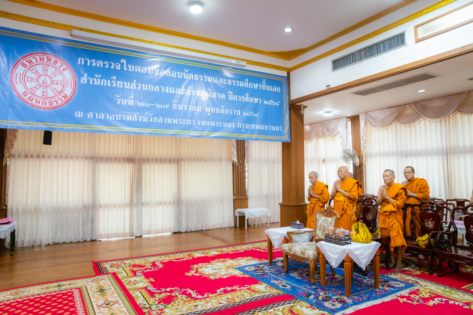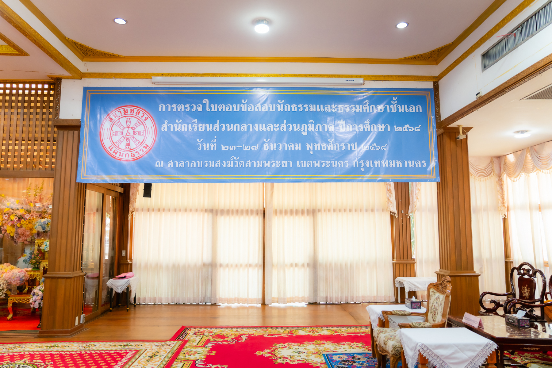 กรุงเทพมหานคร (๒๗ ธันวาคม ๒๕๖๘) – สำนักงานแม่กองธรรมสนามหลวง จัดพิธีปิดโครงการตรวจใบตอบข้อสอบธรรมสนามหลวง นักธรรมและธรรมศึกษาชั้นเอก ส่วนภูมิภาค ประจำปีการศึกษา ๒๕๖๘ อย่างเป็นทางการ โดยได้รับเมตตาจากพระเถรานุเถระคณะผู้บริหาร และคณะกรรมการตรวจข้อสอบร่วมพิธีอย่างพร้อมเพรียง ณ วัดสามพระยา วรวิหาร เขตพระนคร กรุงเทพมหานคร