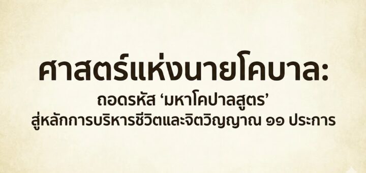 บทนำ: พุทธวิธีว่าด้วยการบริหารจัดการชีวิต ในทางพุทธปรัชญา ความสำเร็จและความล้มเหลวมิใช่เรื่องของโชคชะตา หากแต่เป็นผลลัพธ์ของ “ทักษะ” และ “ความรู้แจ้ง” ในสิ่งที่ทำ พระไตรปิฎกได้บันทึกหลักธรรมสำคัญบทหนึ่งชื่อว่า “มหาโคปาลสูตร” (Mahagopala Sutta) ซึ่งพระพุทธองค์ทรงใช้วิธีการเปรียบเทียบเชิงอุปมา (Metaphor) ระหว่าง “นายโคบาล” หรือคนเลี้ยงวัว ผู้มีความชำนาญการ กับ “ภิกษุ” หรือผู้ปฏิบัติธรรมที่มุ่งหวังความเจริญงอกงามในชีวิต