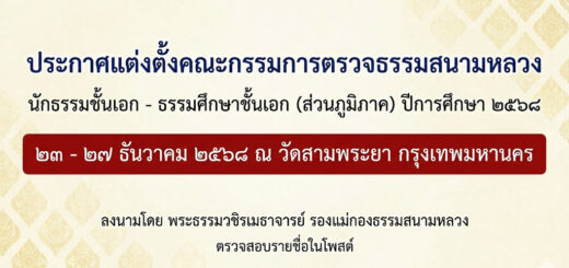 ตรวจสอบกำหนดการสำคัญ: เพื่อความสะดวกในการวางแผนการติดต่อ ท่านสามารถตรวจสอบกำหนดการสอบ วันประกาศผล และกิจกรรมสำคัญต่างๆ ตลอดทั้งปีได้ที่: 👉 ปฏิทินปฏิบัติงาน สำนักงานแม่กองธรรมสนามหลวง ประจำปี ๒๕๖๙