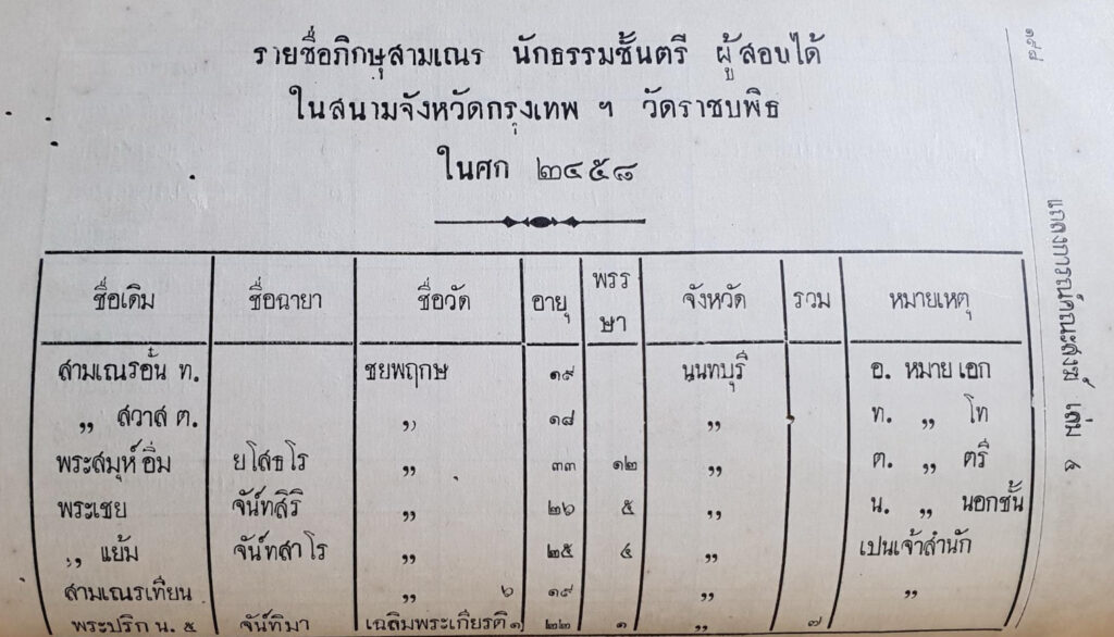 เปิดบันทึกประวัติศาสตร์: รายนามภิกษุสามเณรผู้สอบไล่ได้นักธรรมชั้นตรี สนามหลวงจังหวัดกรุงเทพฯ (วัดราชบพิธ) ศก ๒๔๕๘