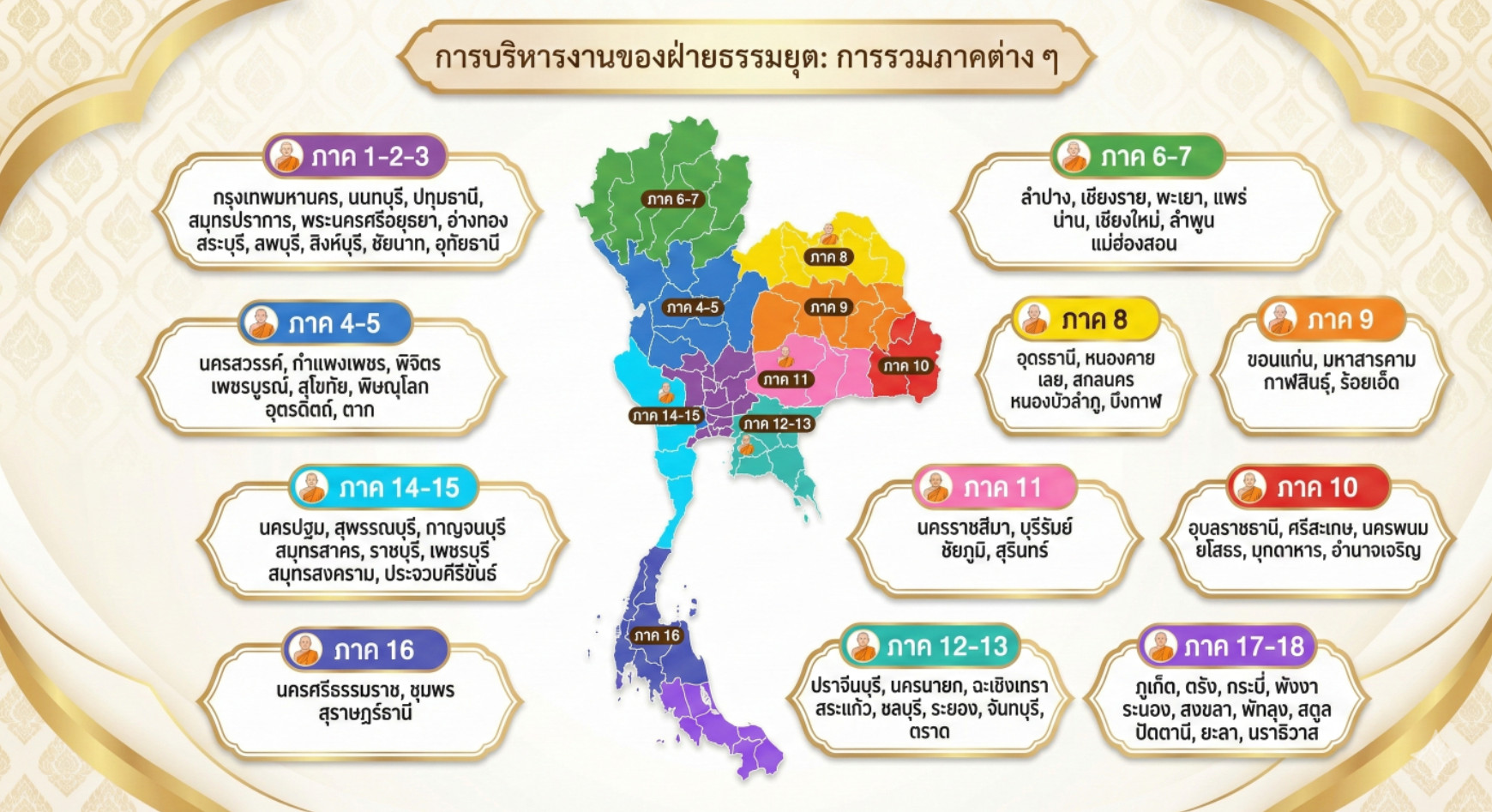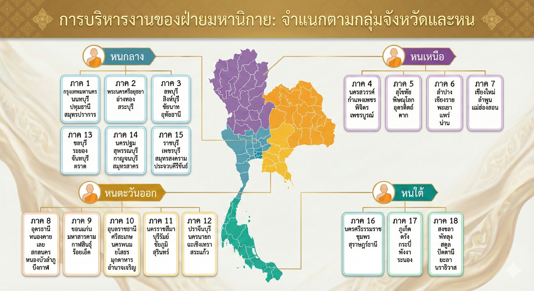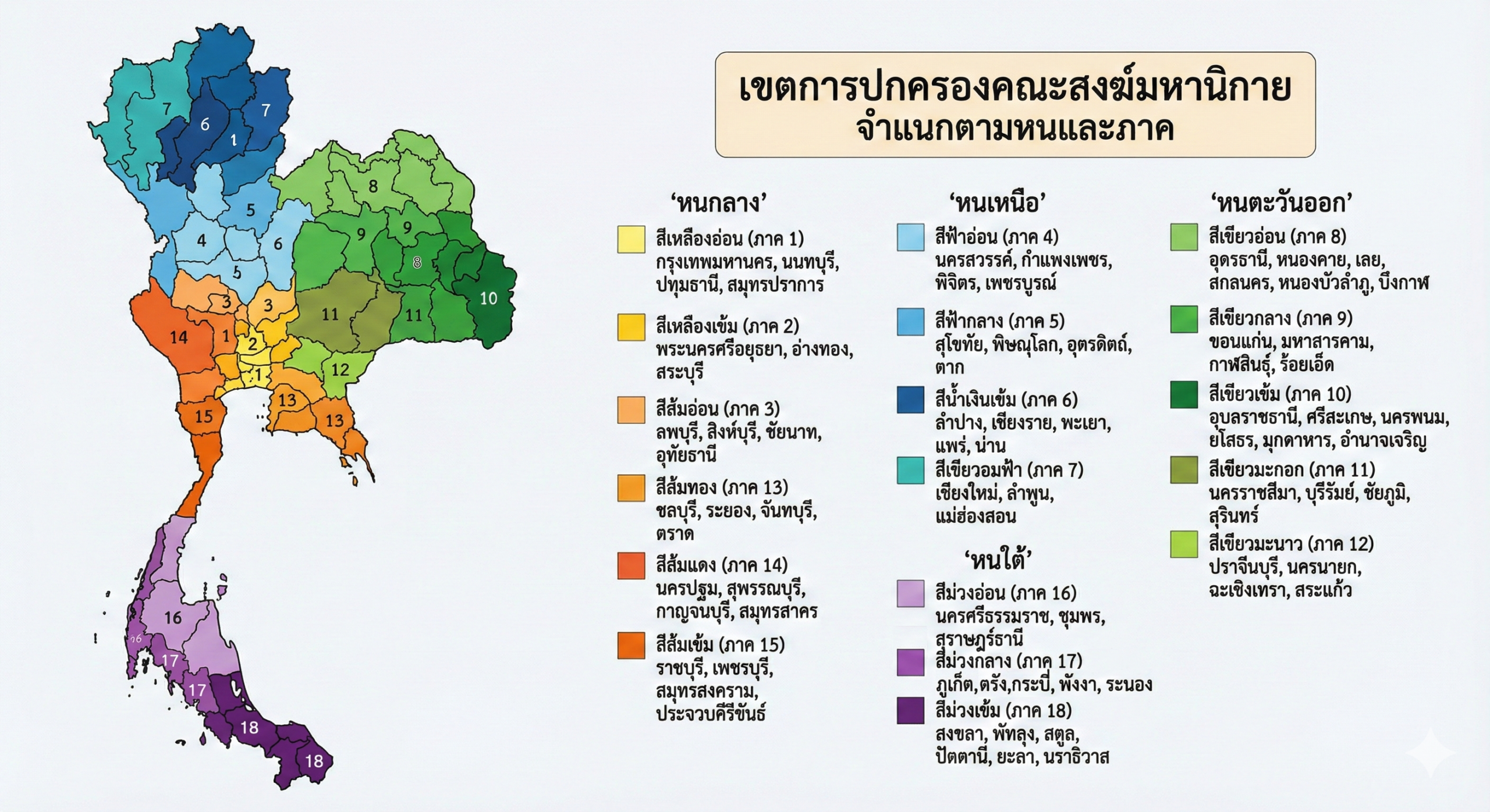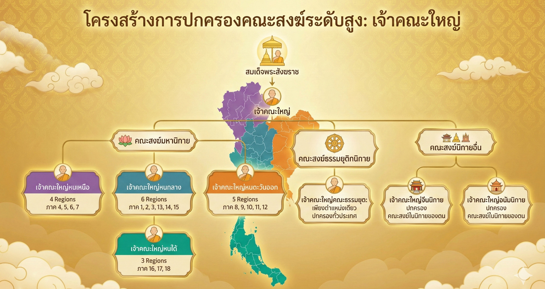 โครงสร้างการปกครองคณะสงฆ์ไทย: บทบาท หน้าที่ และเขตปกครองของเจ้าคณะใหญ่และเจ้าคณะภาค